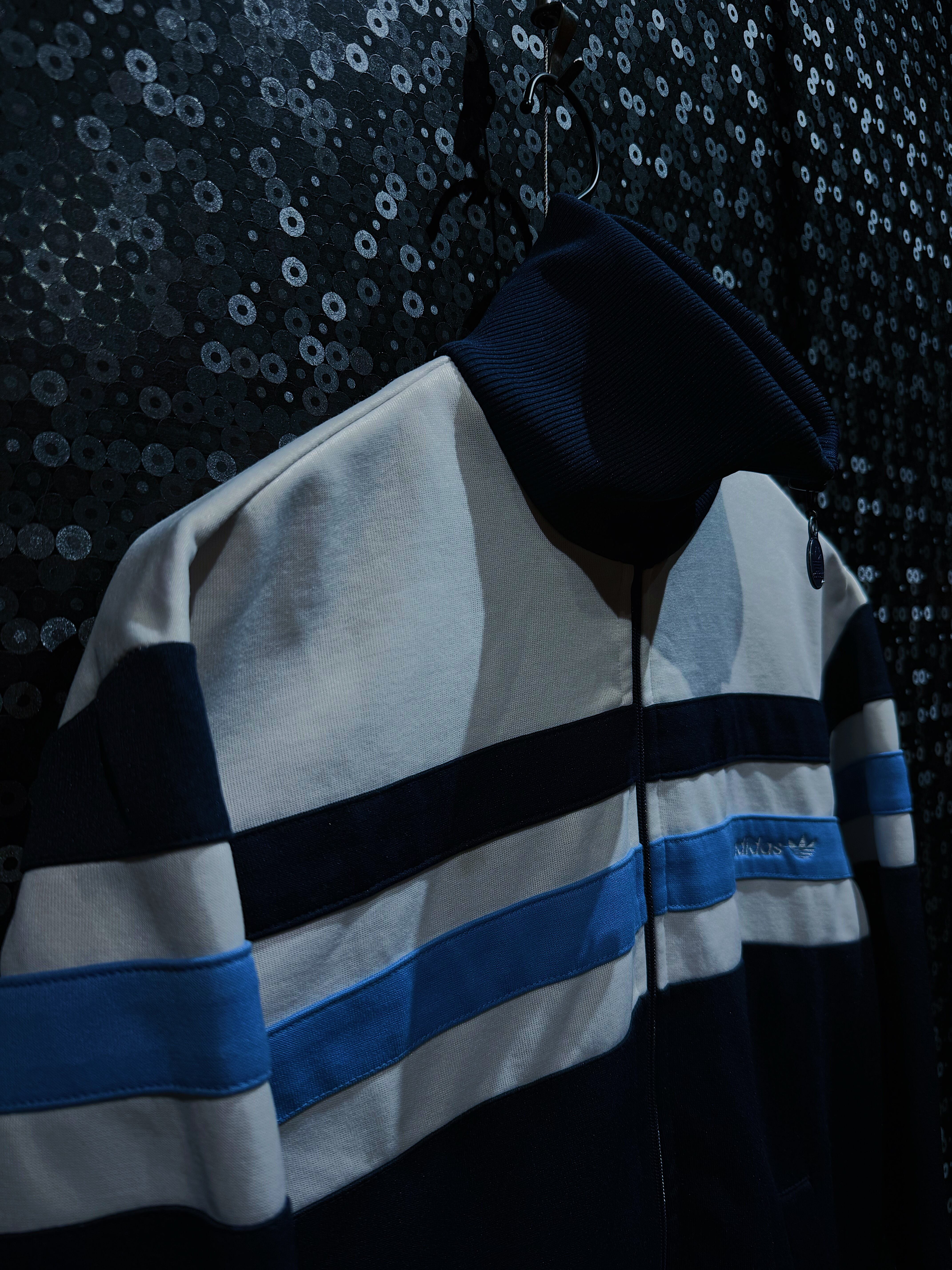 "80's vintage"adidas original White and Blue line design navy track jacket