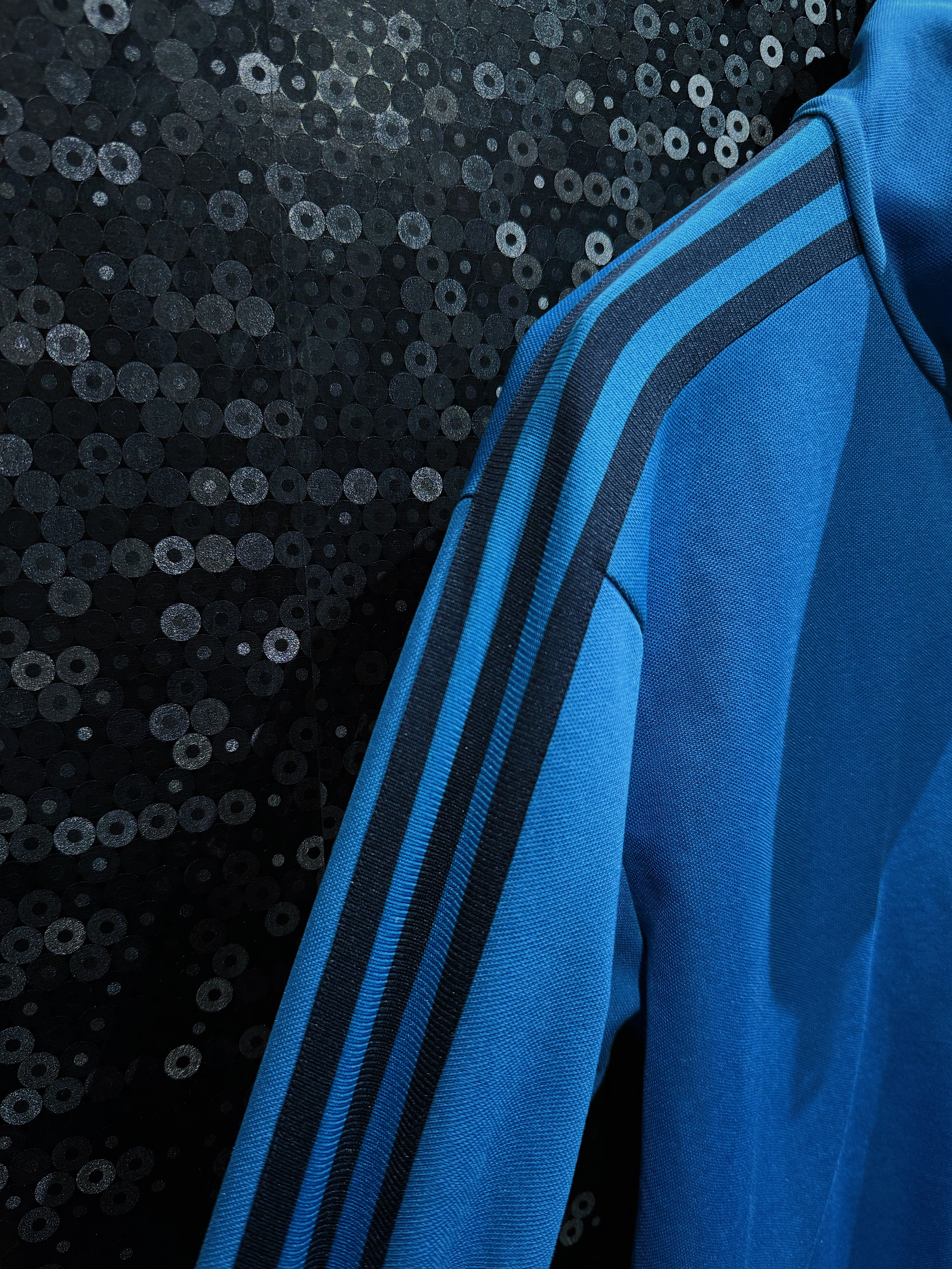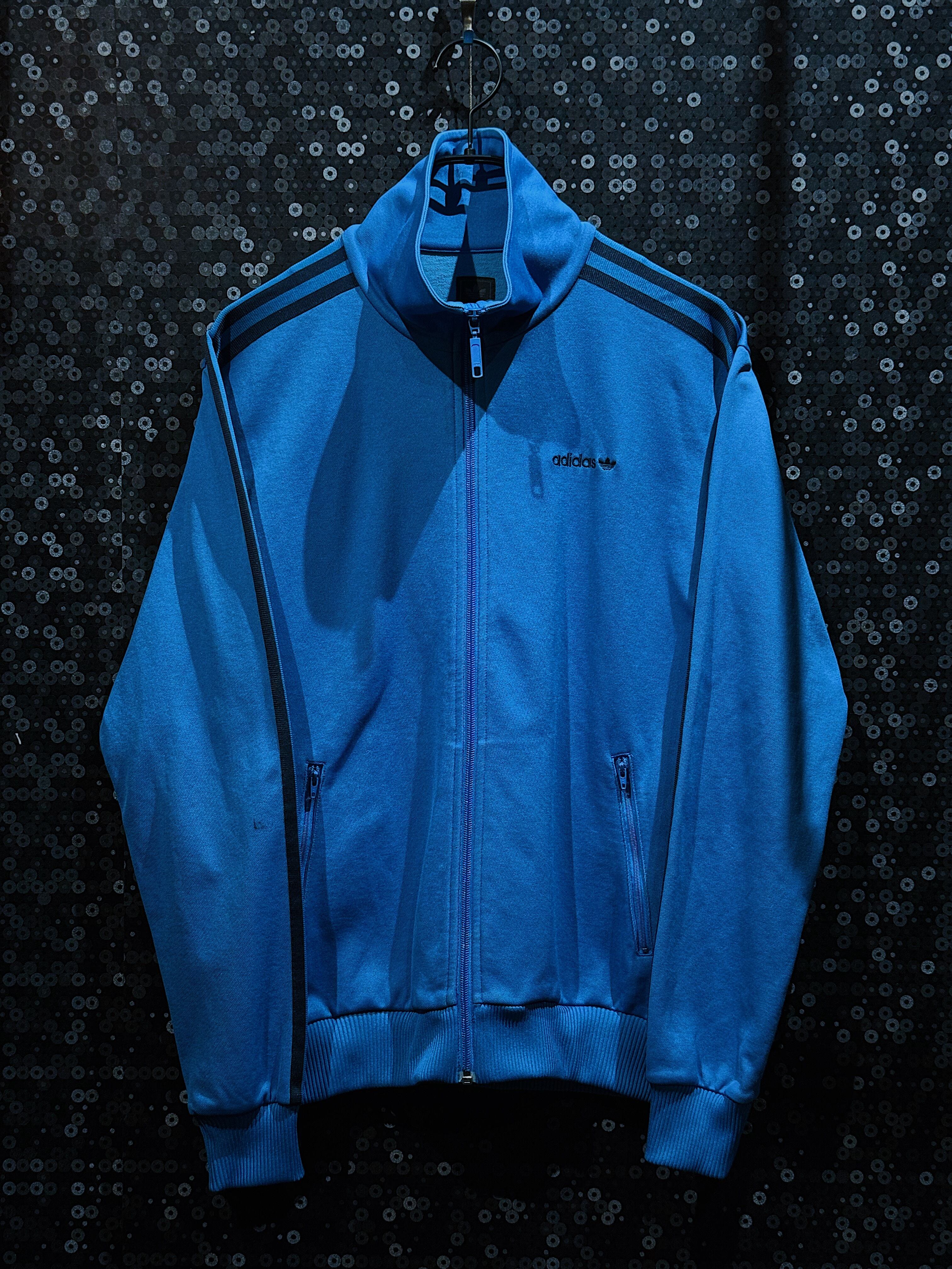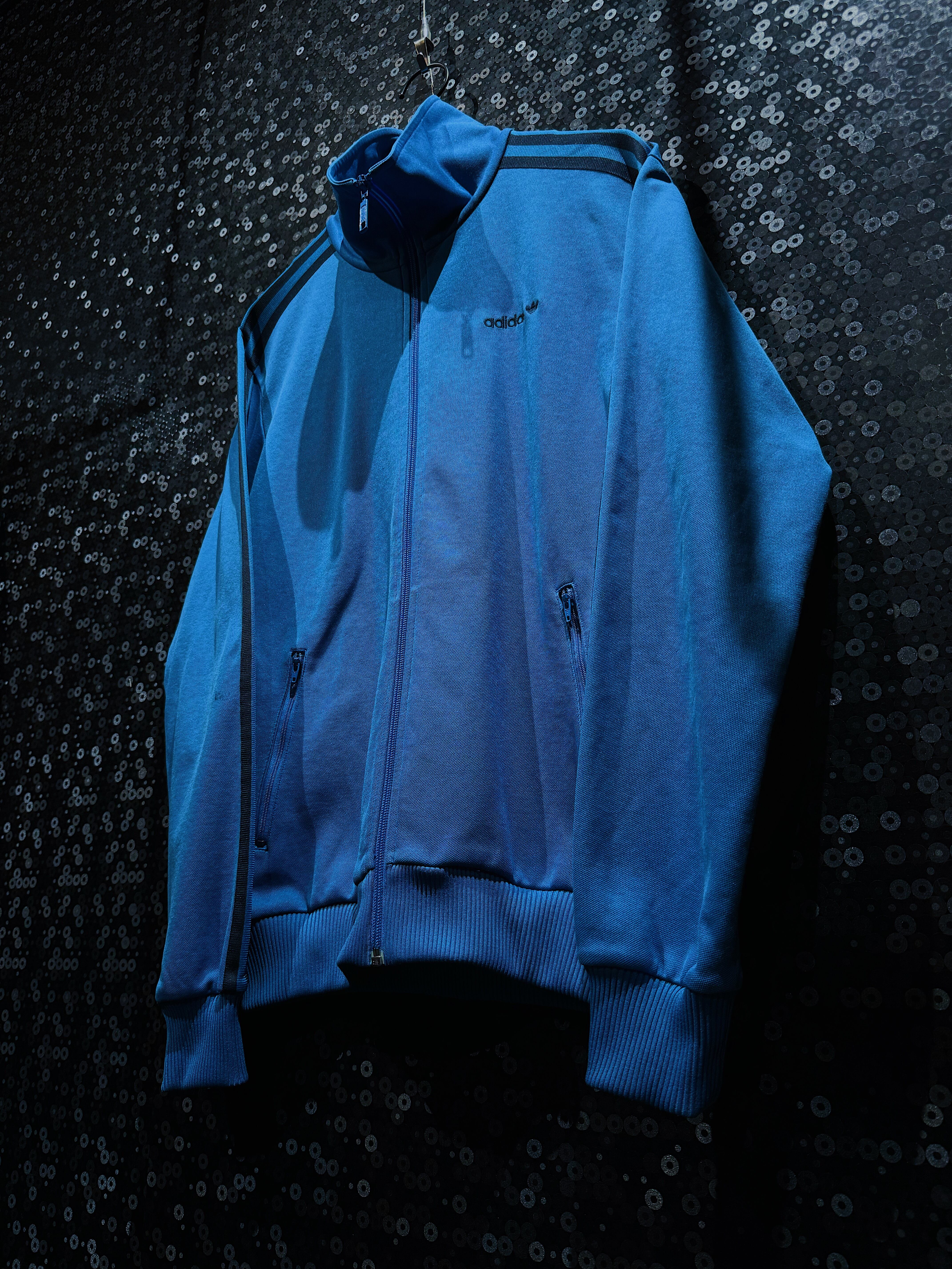 このadidasトラックジャケットは、ヴィンテージの風合いを感じさせるクラシックなデザインが魅力的な一着です。