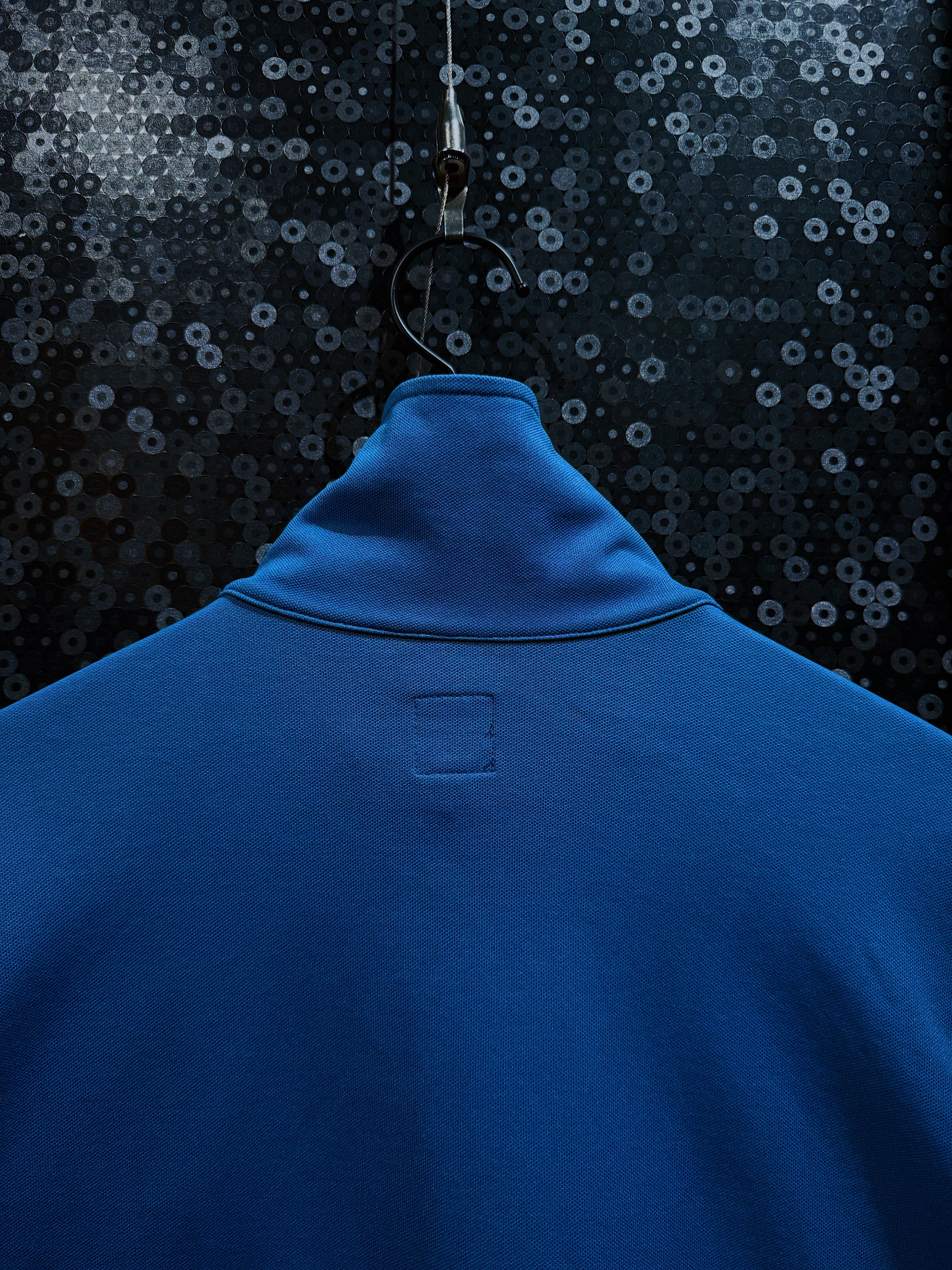 生地にはしっかりとした厚みがありながらも柔らかく、適度なストレッチ性を兼ね備えているため、快適な着心地を提供します。フロントのフルジップ仕様により、気温やスタイリングに応じたアレンジが可能。襟の高さも程よく、スポーツシーンだけでなくストリートファッションにも取り入れやすいデザインとなっています。