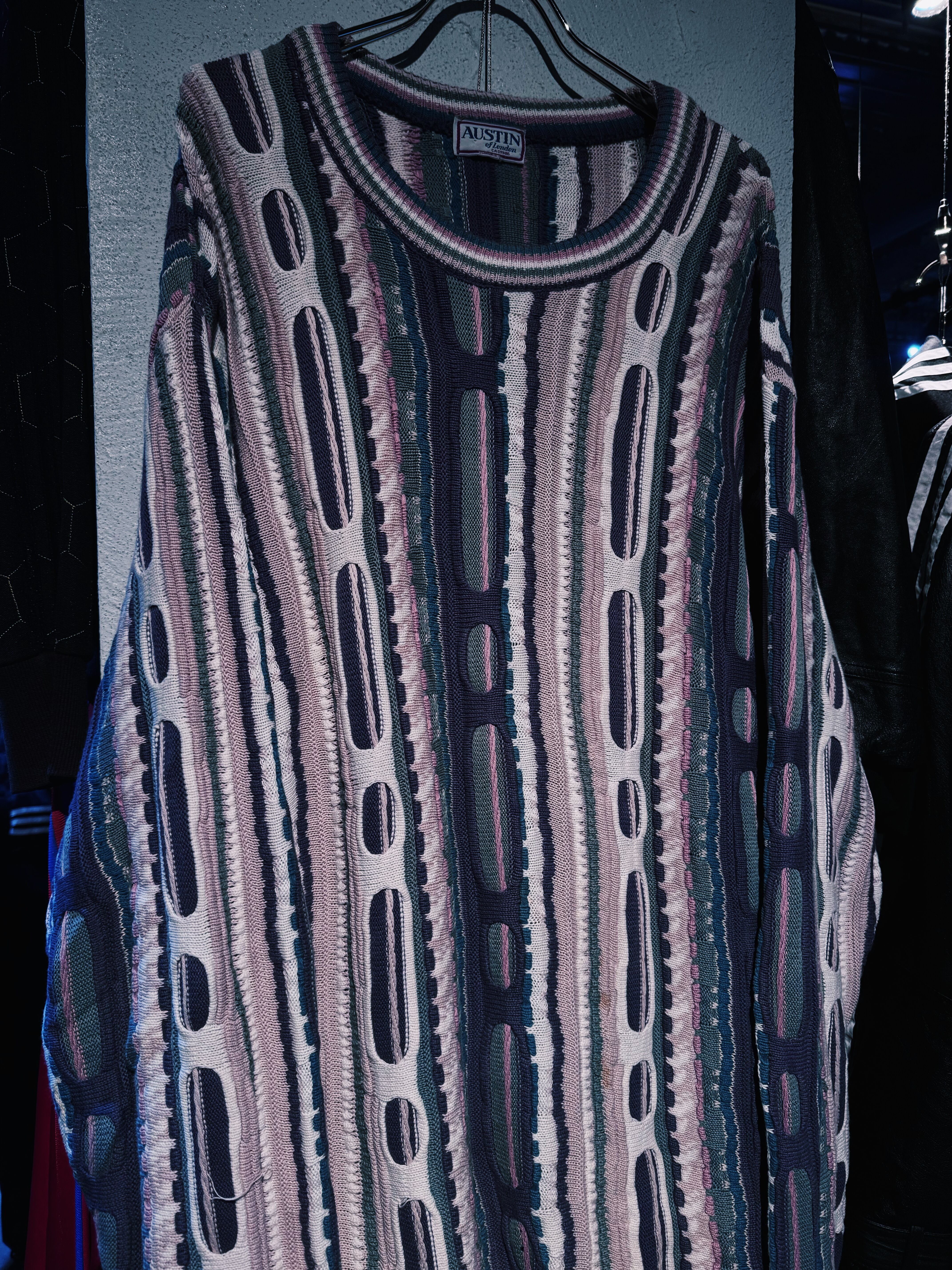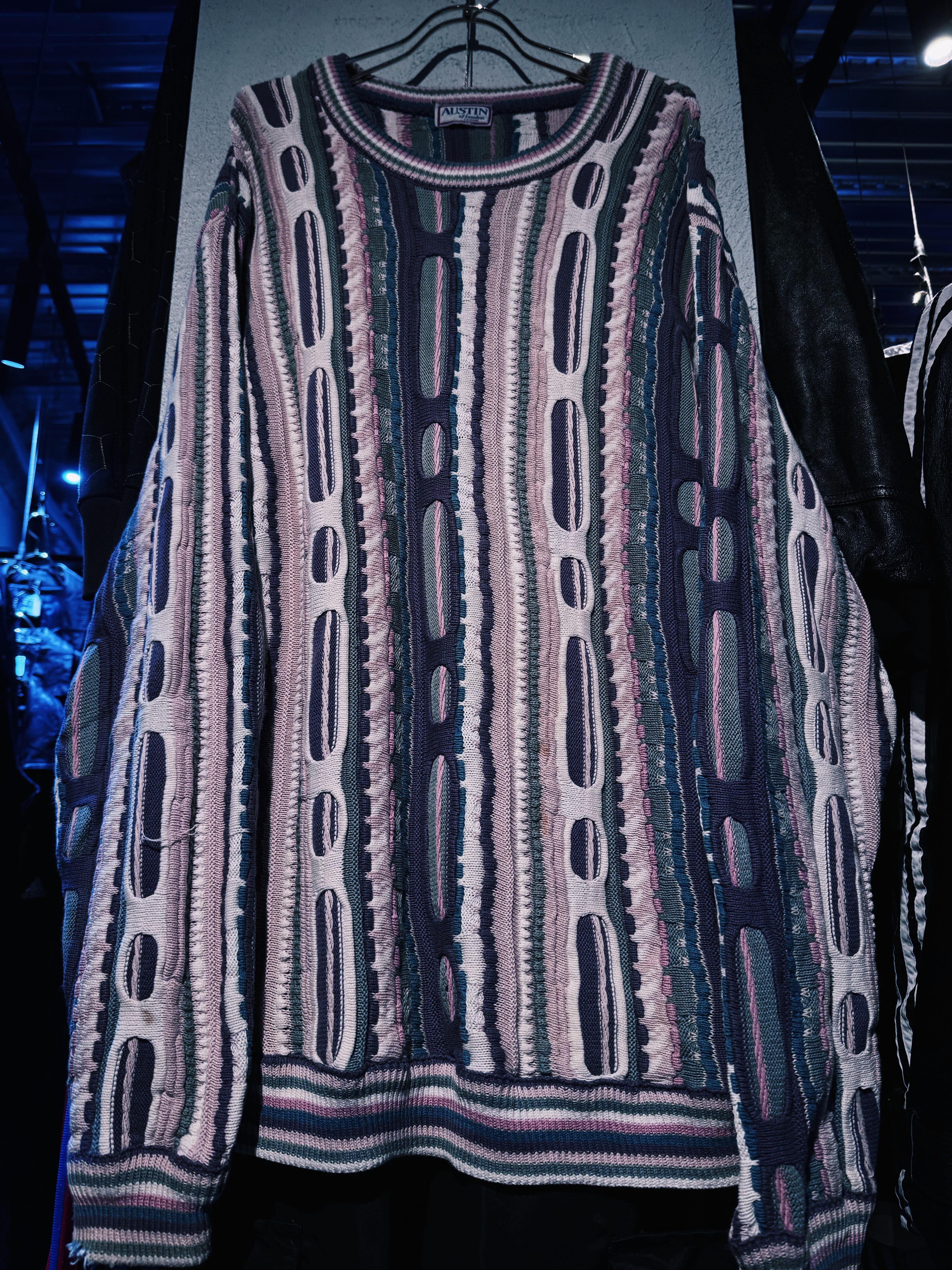 90年代頃、世界的に大流行したカラフルな立体編みが特徴的な3Dニット。個性的な発色の良さが目を惹き、その人気は衰えることを知らず現在でも人気の高い、定番ヴィンテージアイテムです。