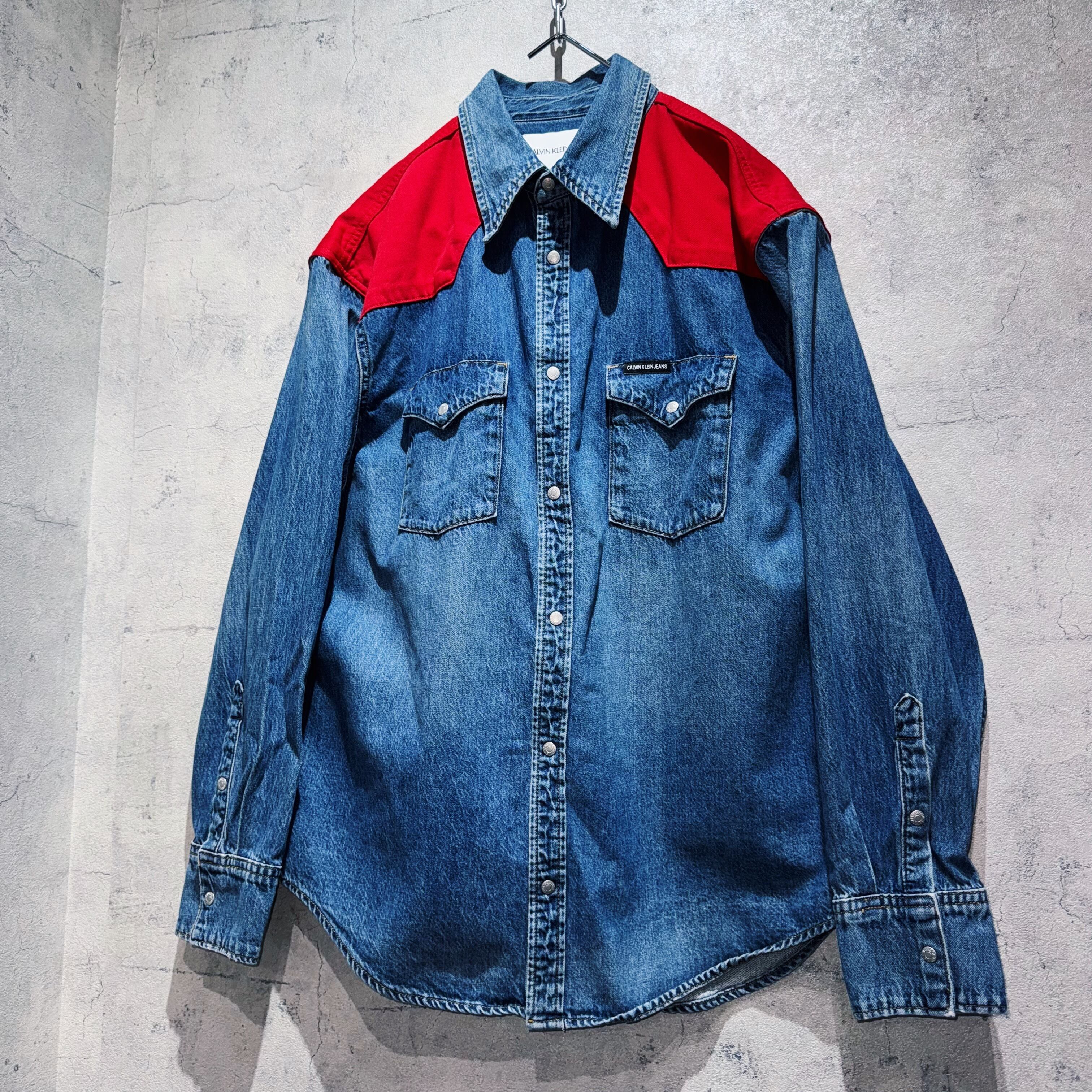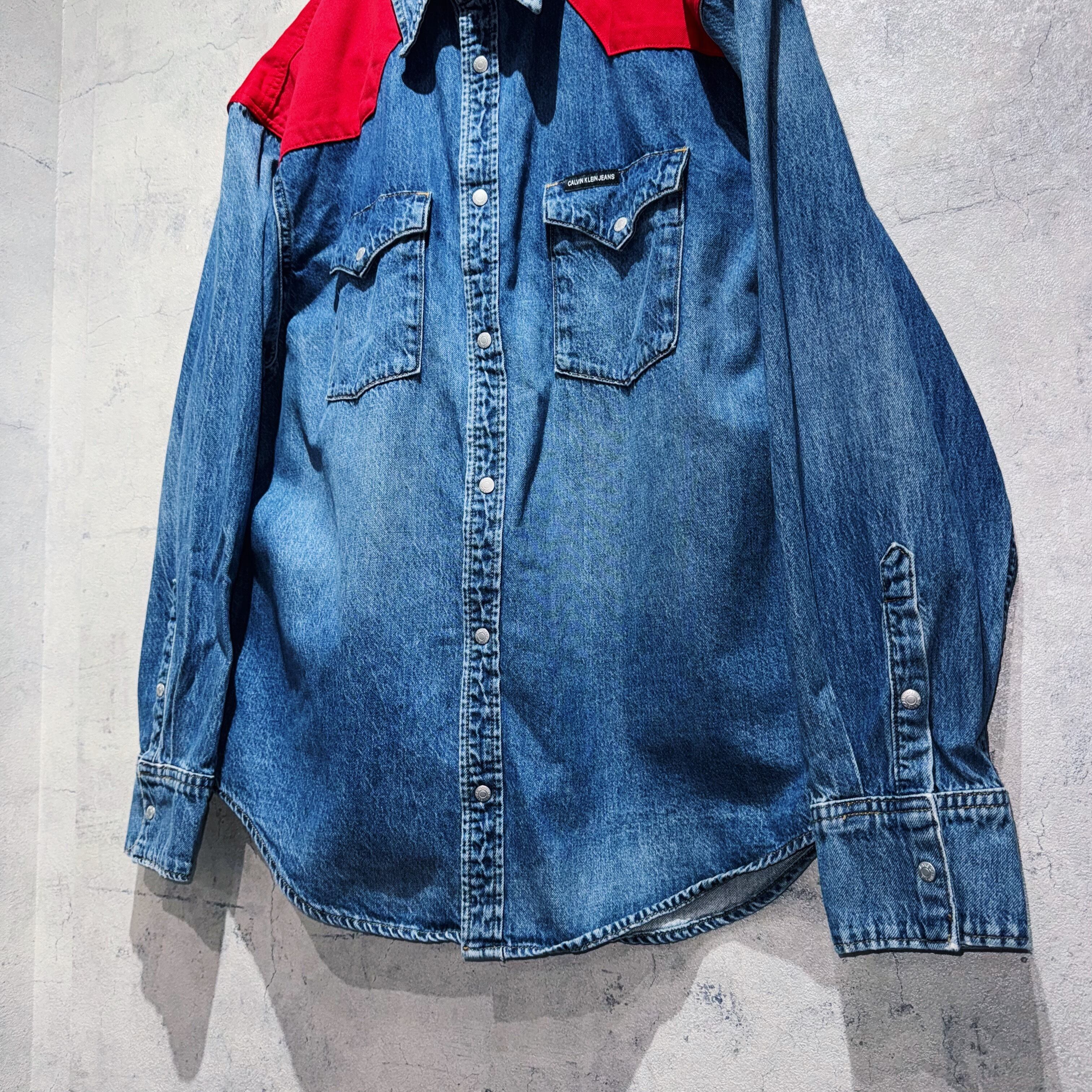 "カルバンクラインジーンズ"スイッチングデニムウエスタンシャツ