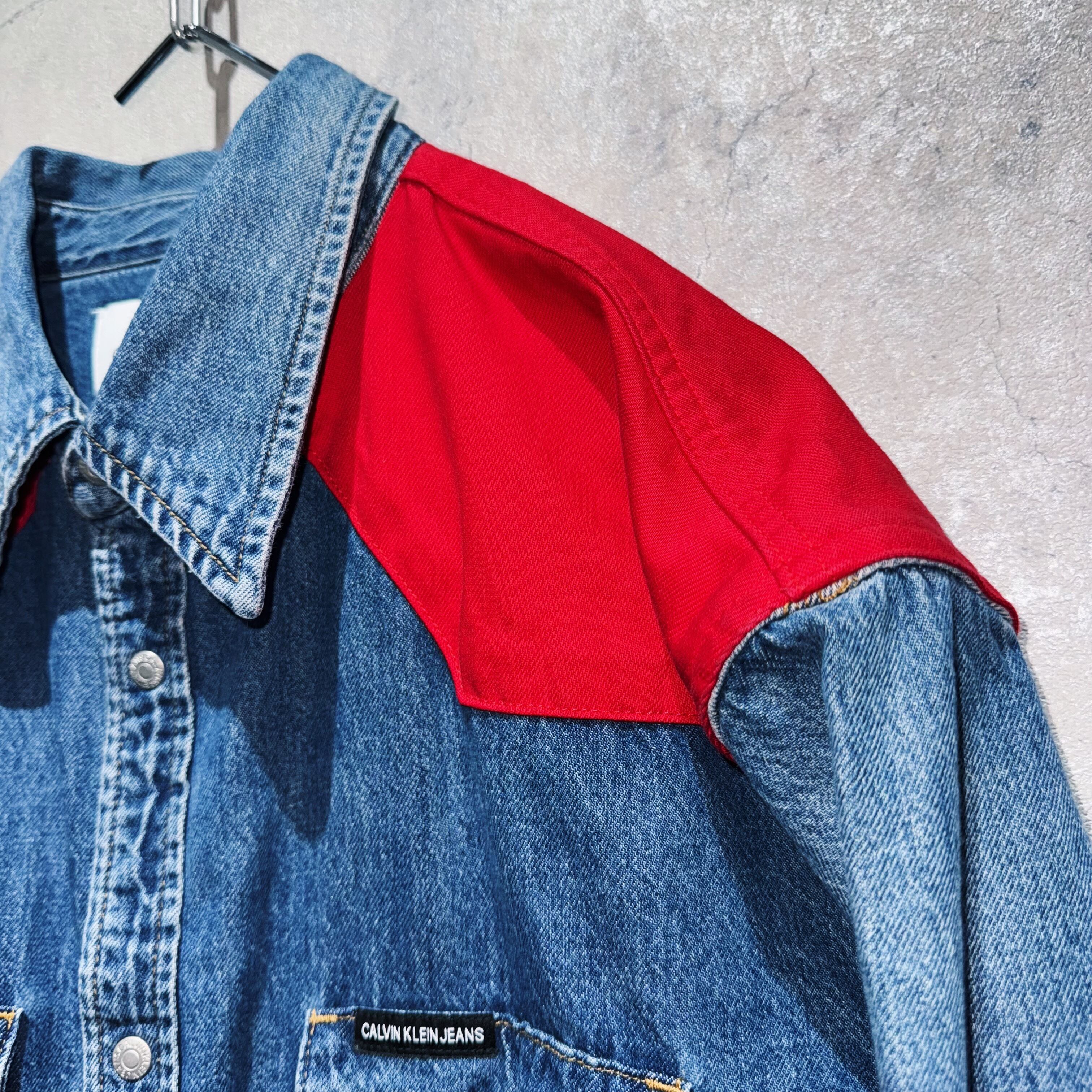 "CALVIN KLEIN JEANS"switching denim western shirt