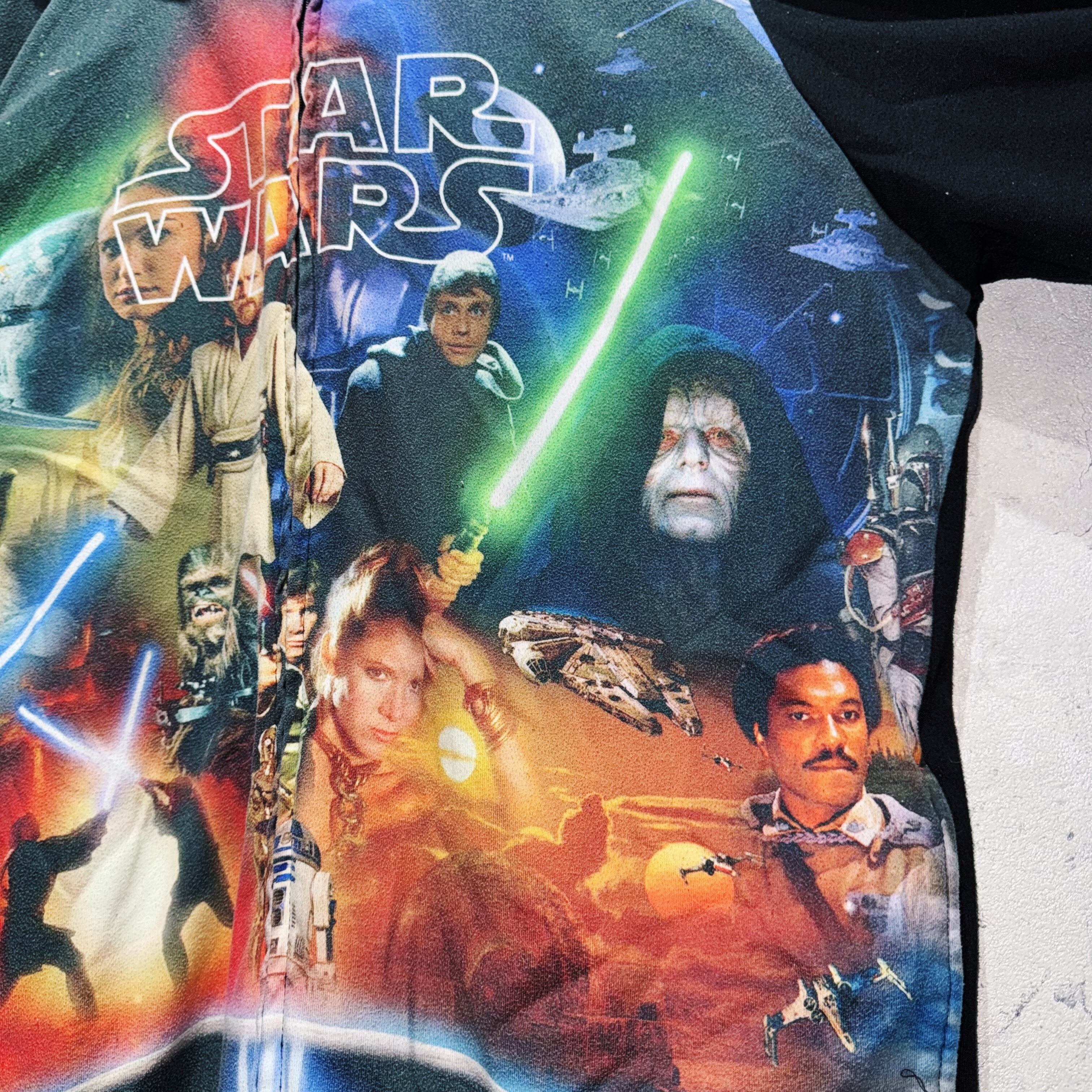 日本国内で流通している大人しいデザインではスターウォーズファンの気持ちが満たされないと思います。今回はスターウォーズファンが満足できるフロント総柄デザインを入荷しました。