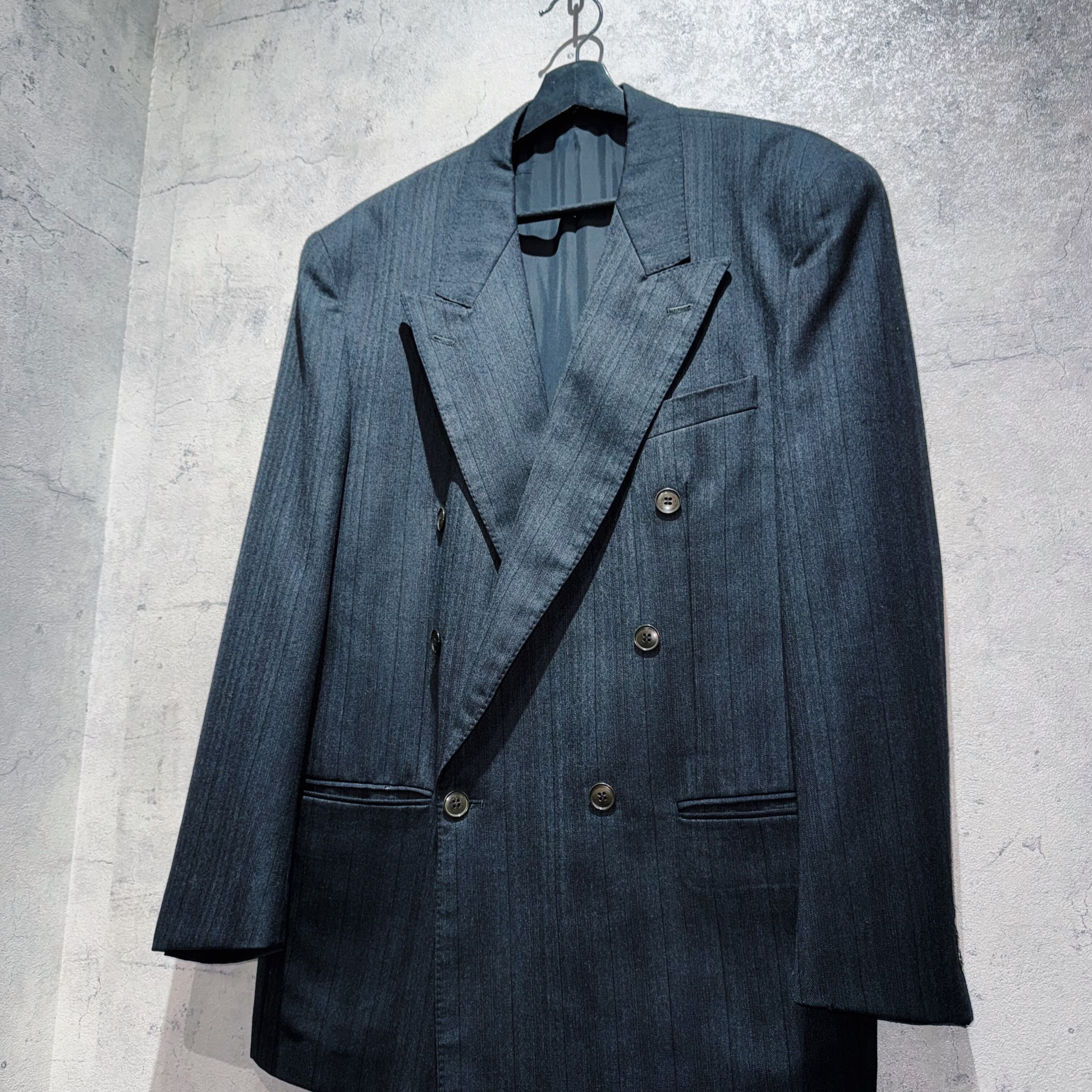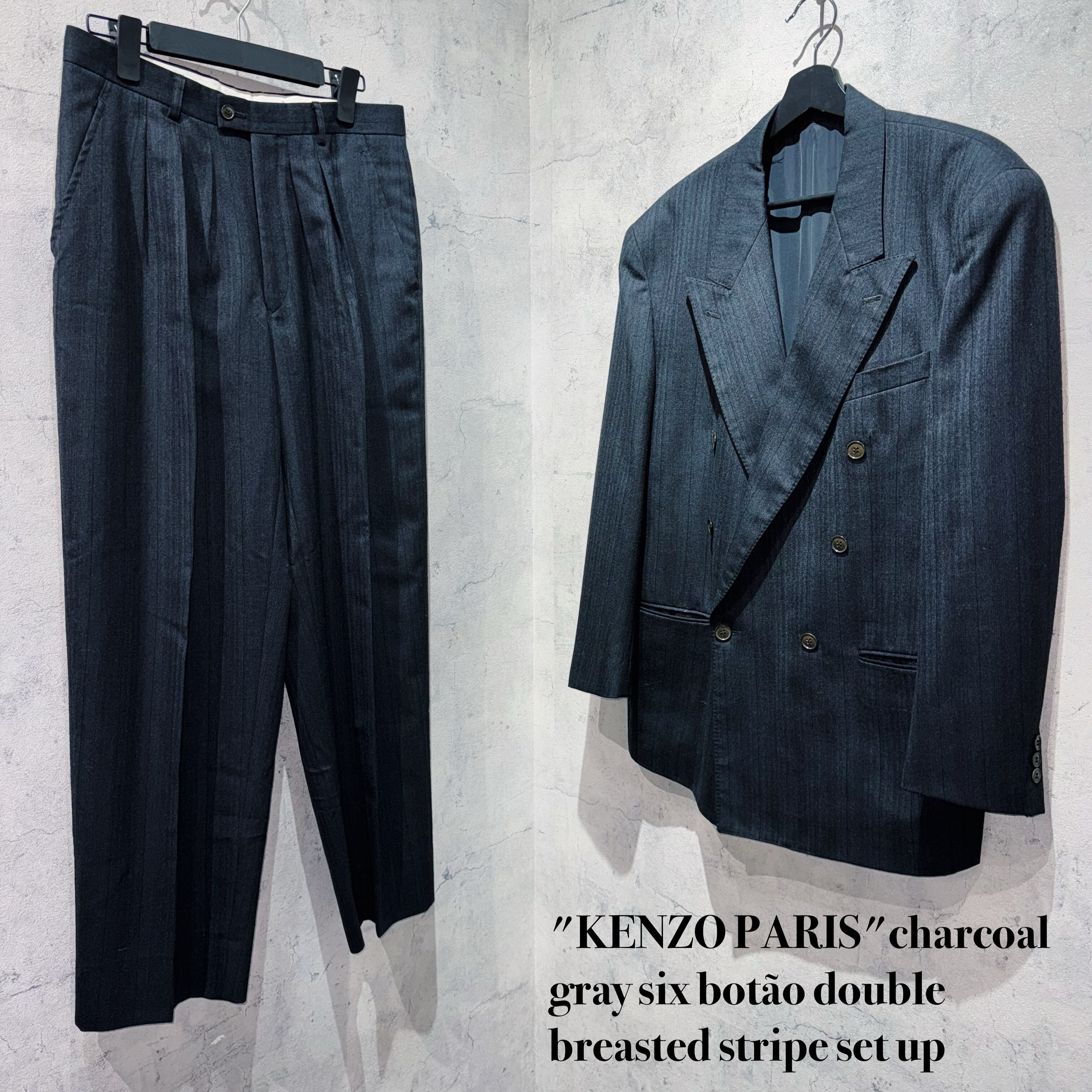 "ケンゾーパリス"チャコールグレーシックスボタンダブルブレストストライプセットアップ