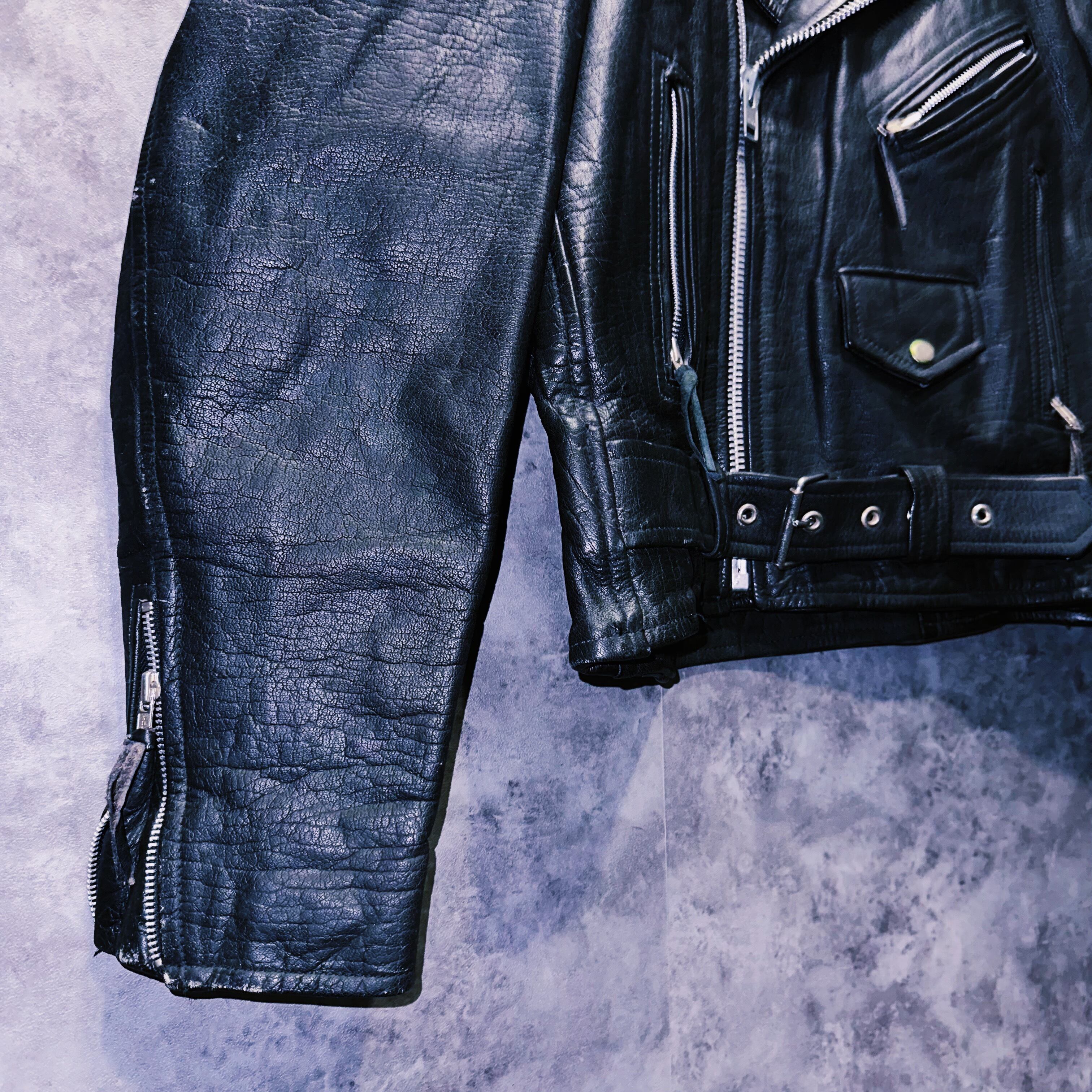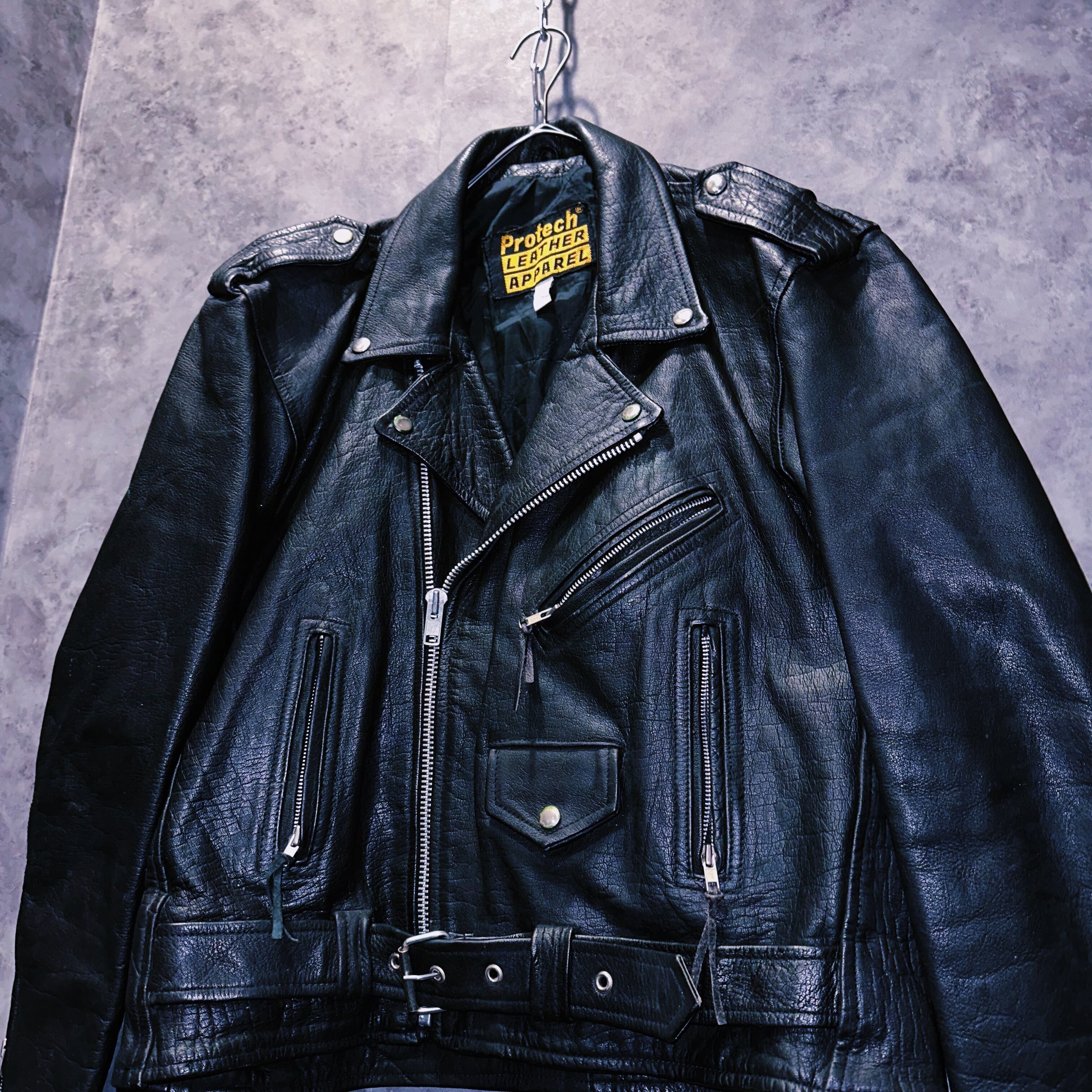 90'sヴィンテージブラックレザーダブルブレストライダースジャケット