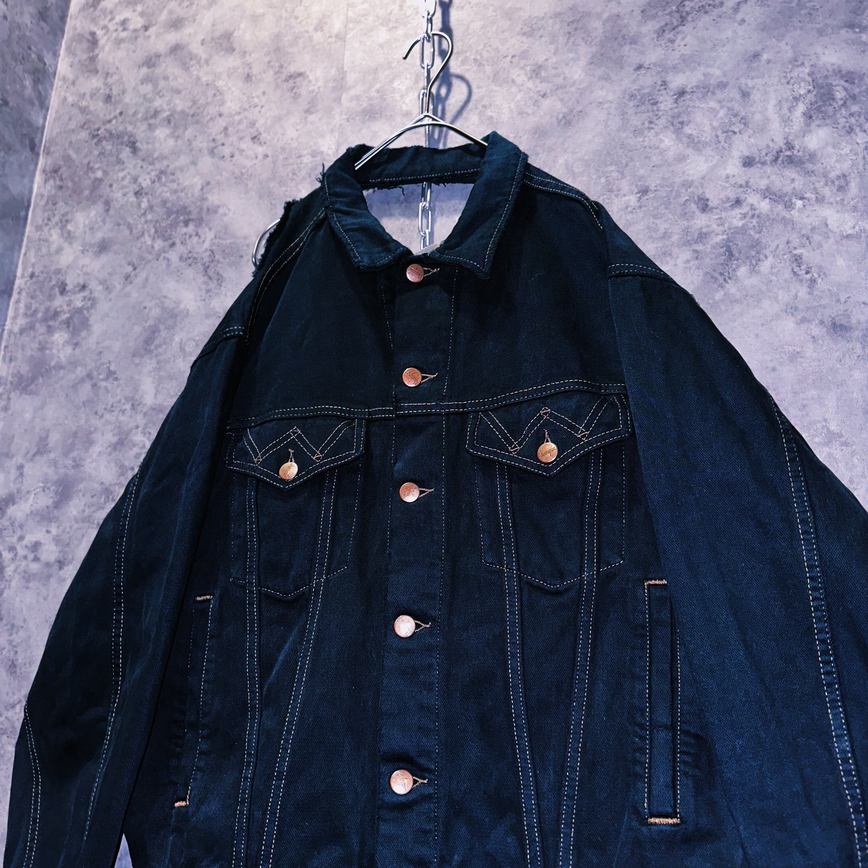 【doppio】special vintage "Wrangler" destroy clash Black denim jacket