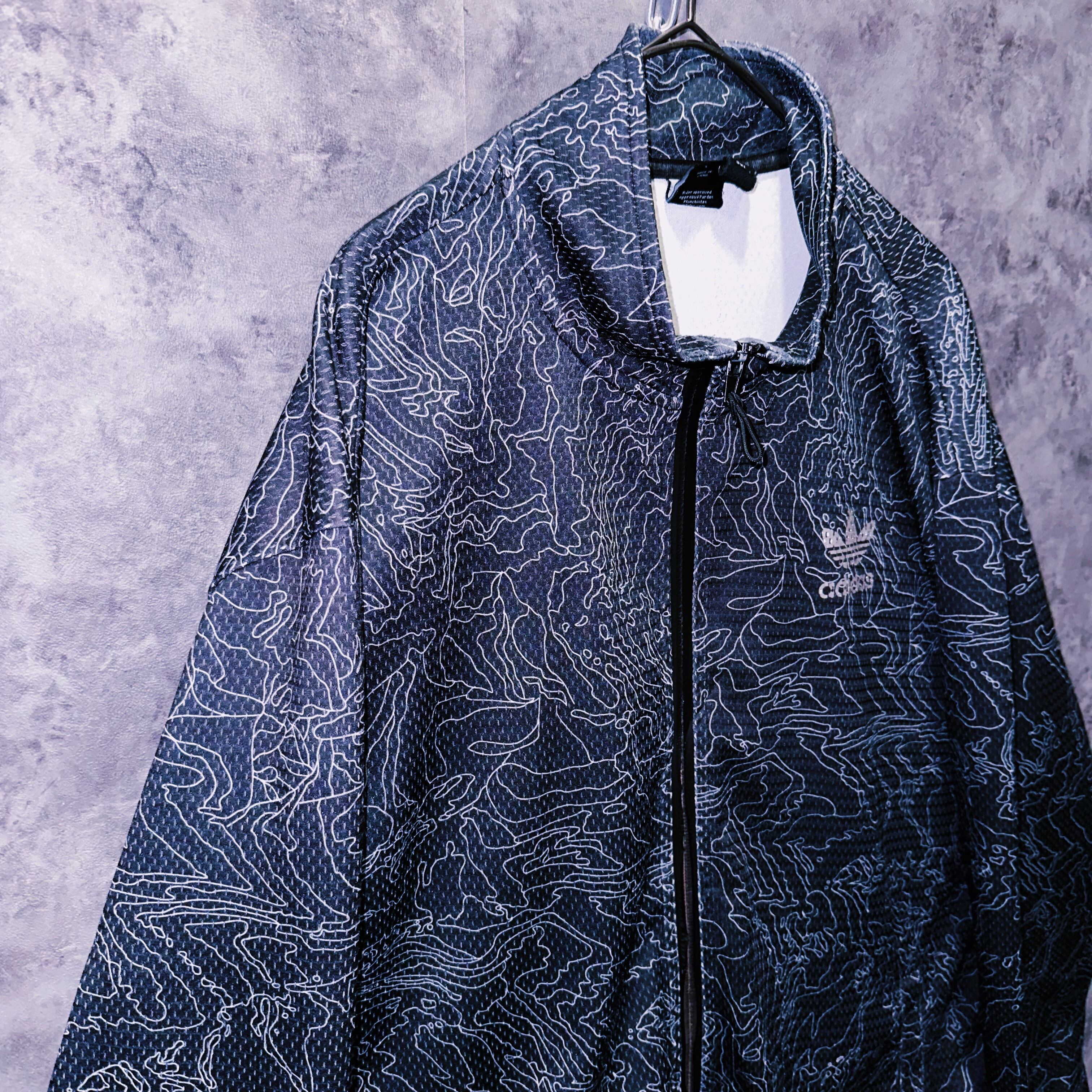 なかなかお目にかかれないカモフラージュのような柄を全面にのせたトラックジャケット。胸元、右袖、背面にはシグネチャーであるトレフォイルを刻んだ抜かりのないデザイン。