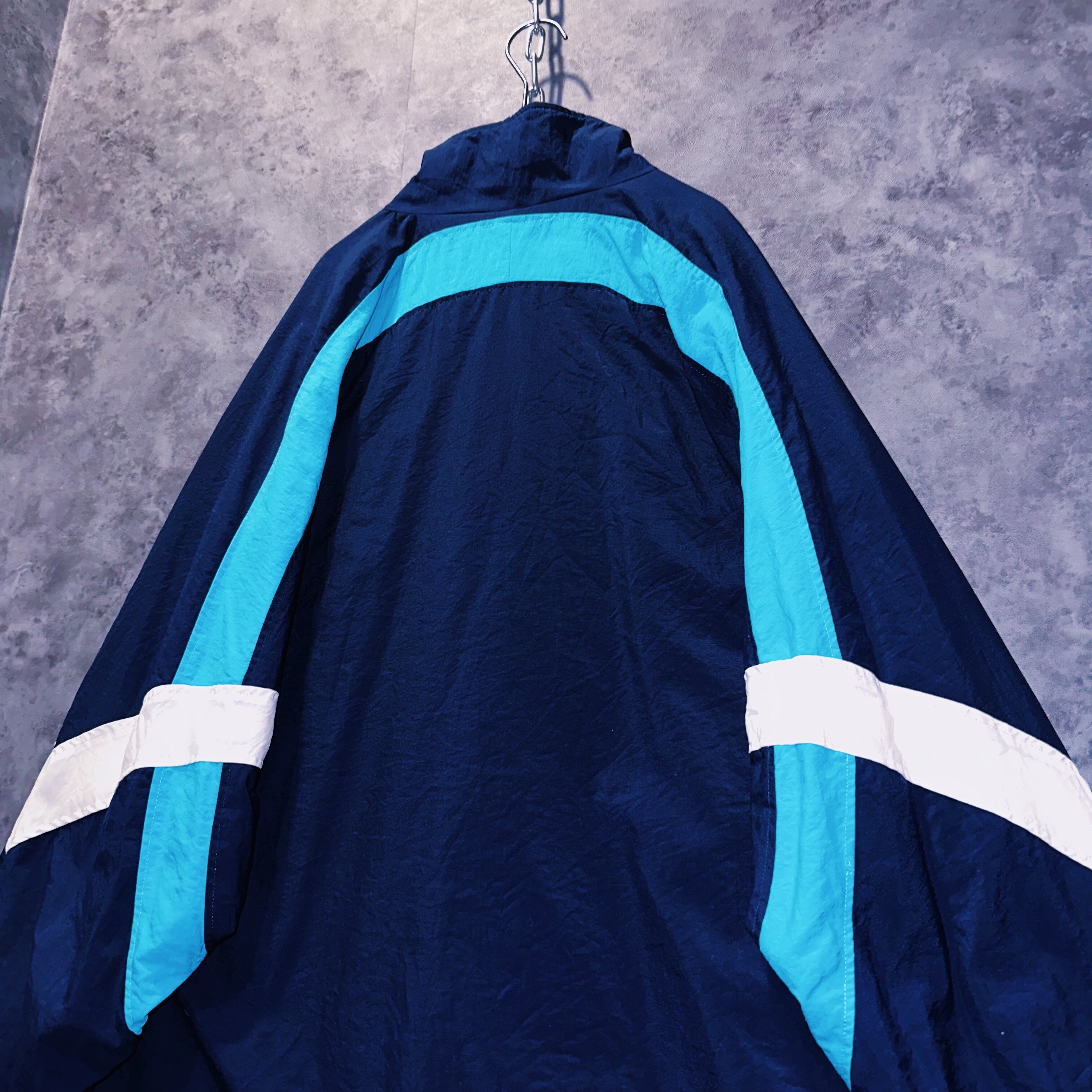 ターコイズブルーベースで品格のあるネイビーの切り替えがアクセントになったカラーリングが素晴らしいトラックジャケット。