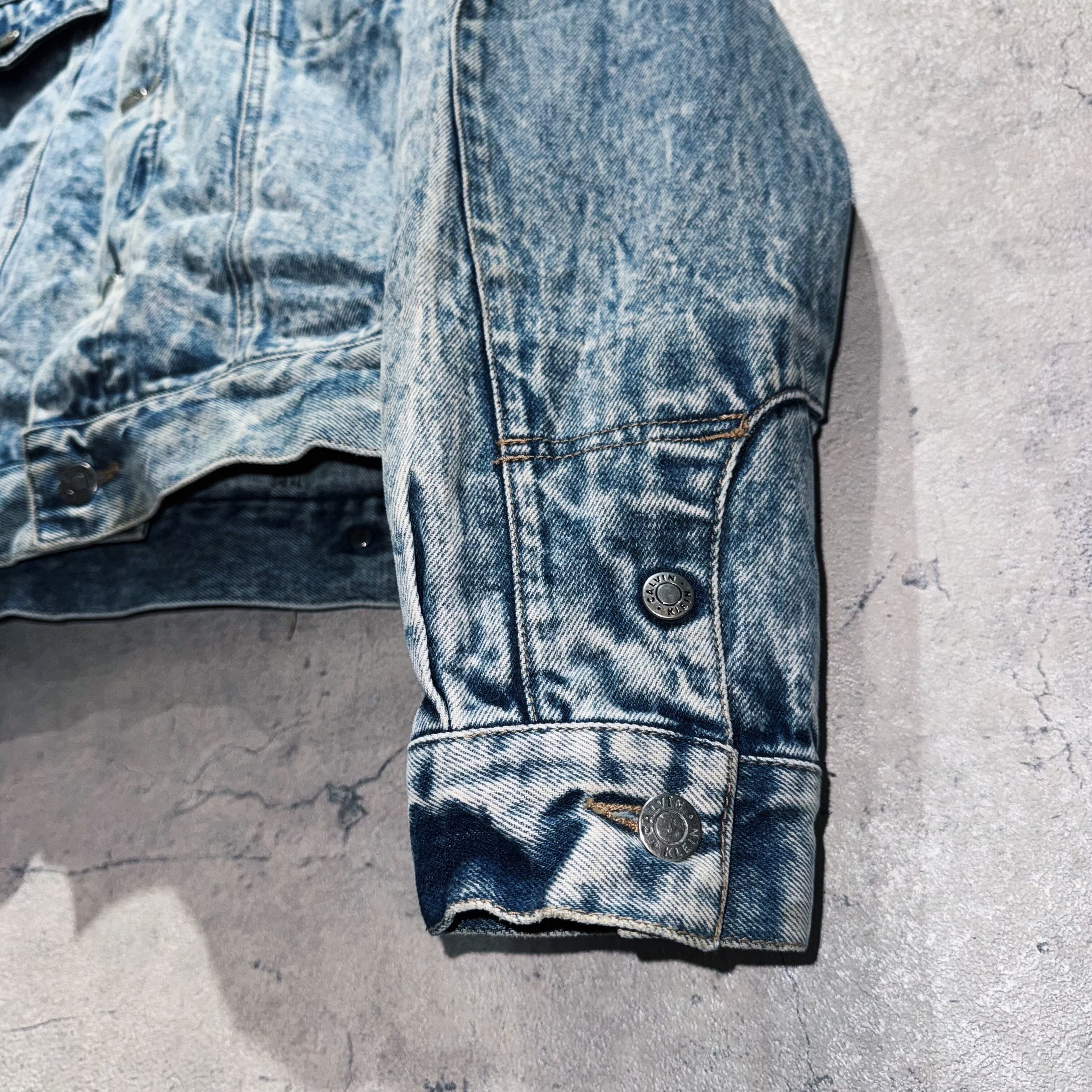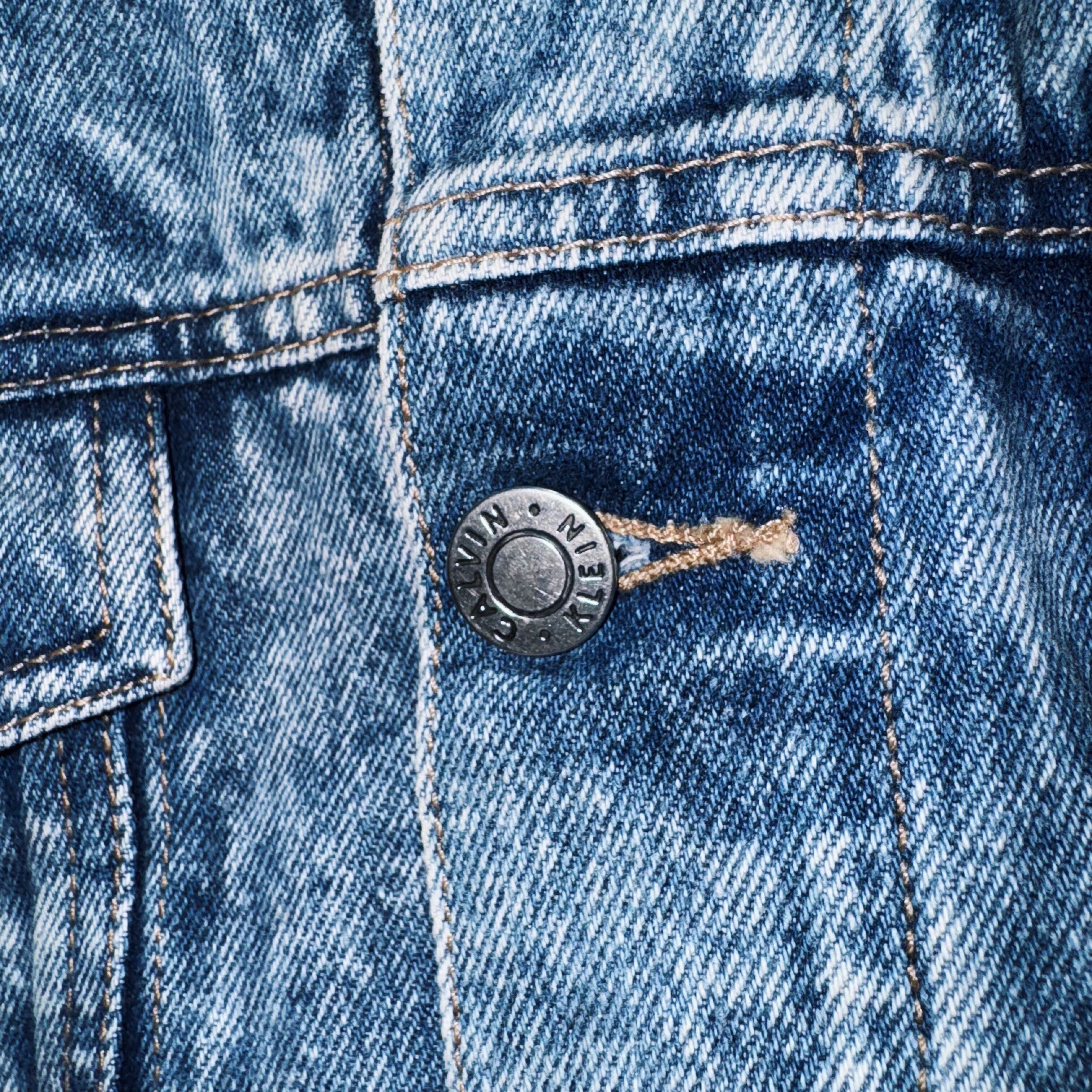 ”カルバンクライン”ロゴボタンデザインウォッシュデニムトラッカージャケット