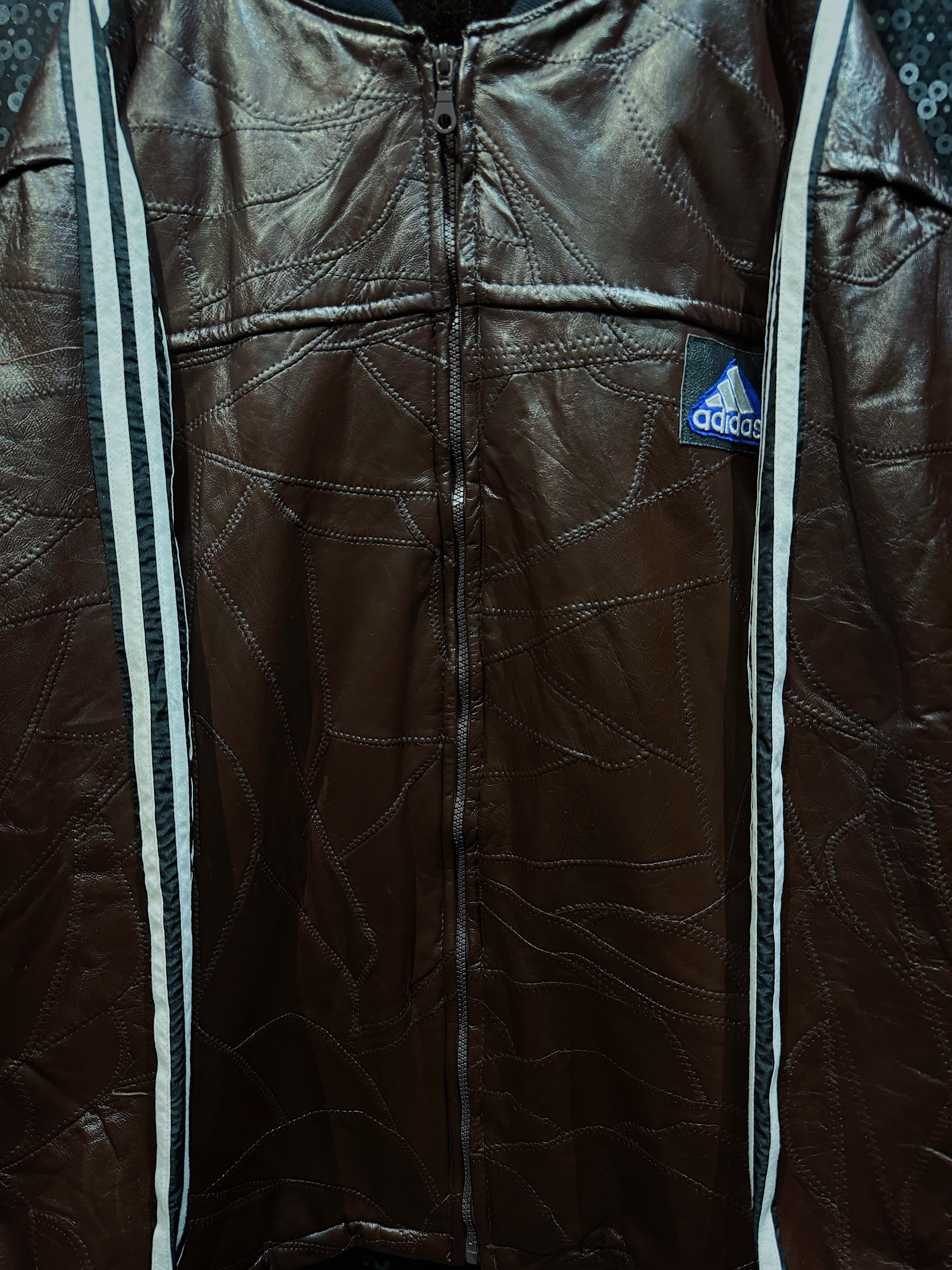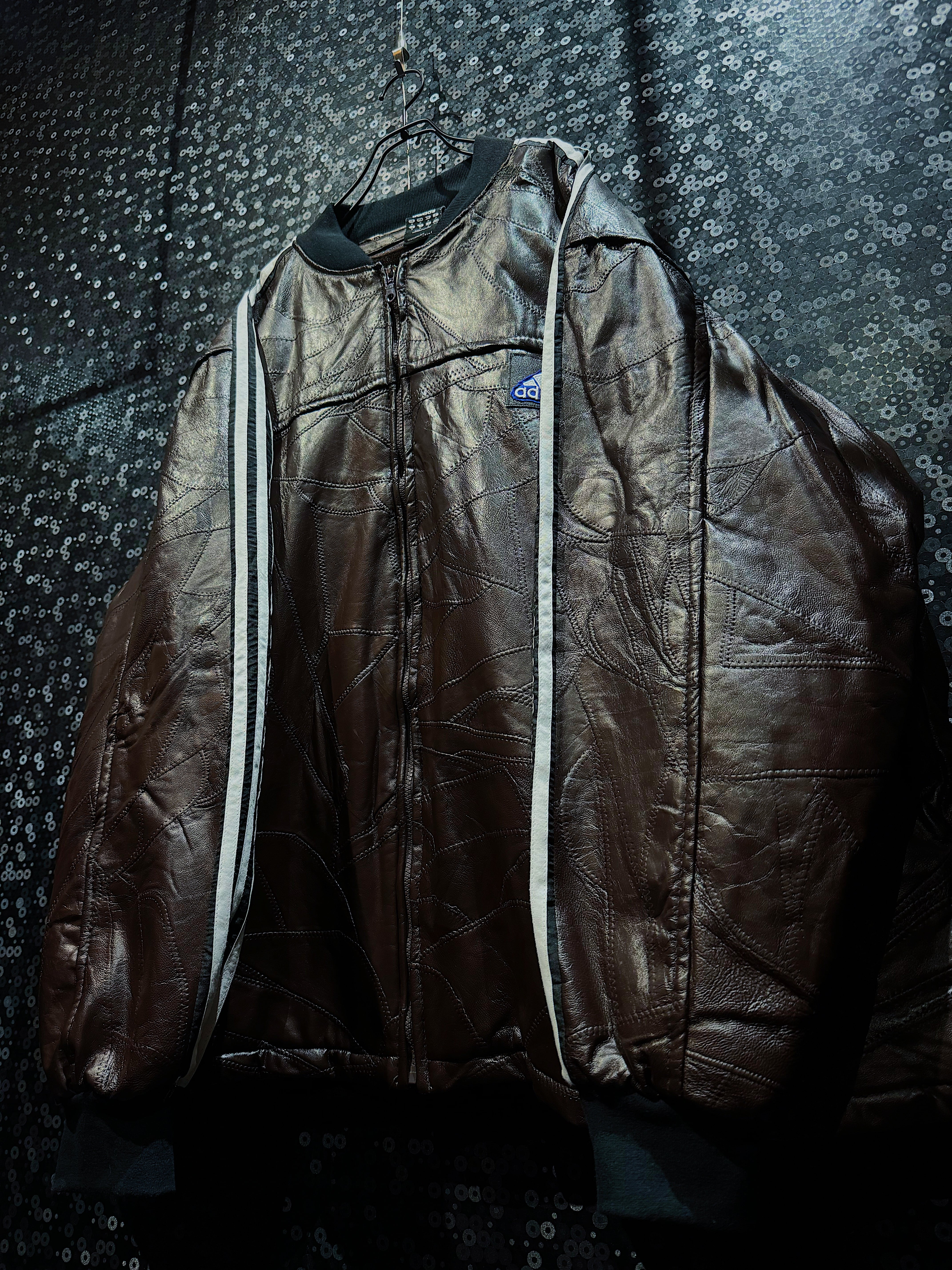 “Original Remake” Vintage adidas dark brown aging White Three Stripe Leather Jacket