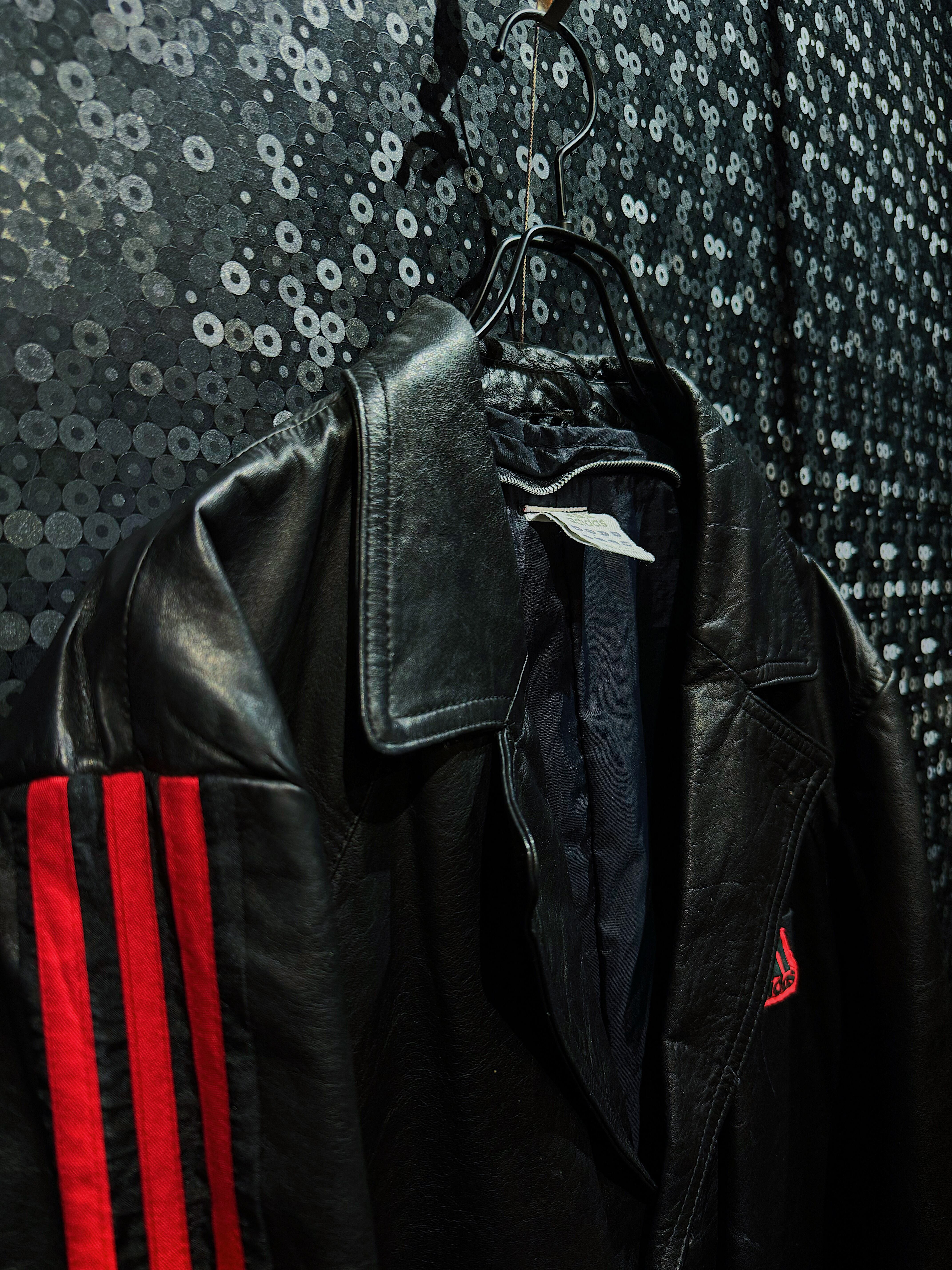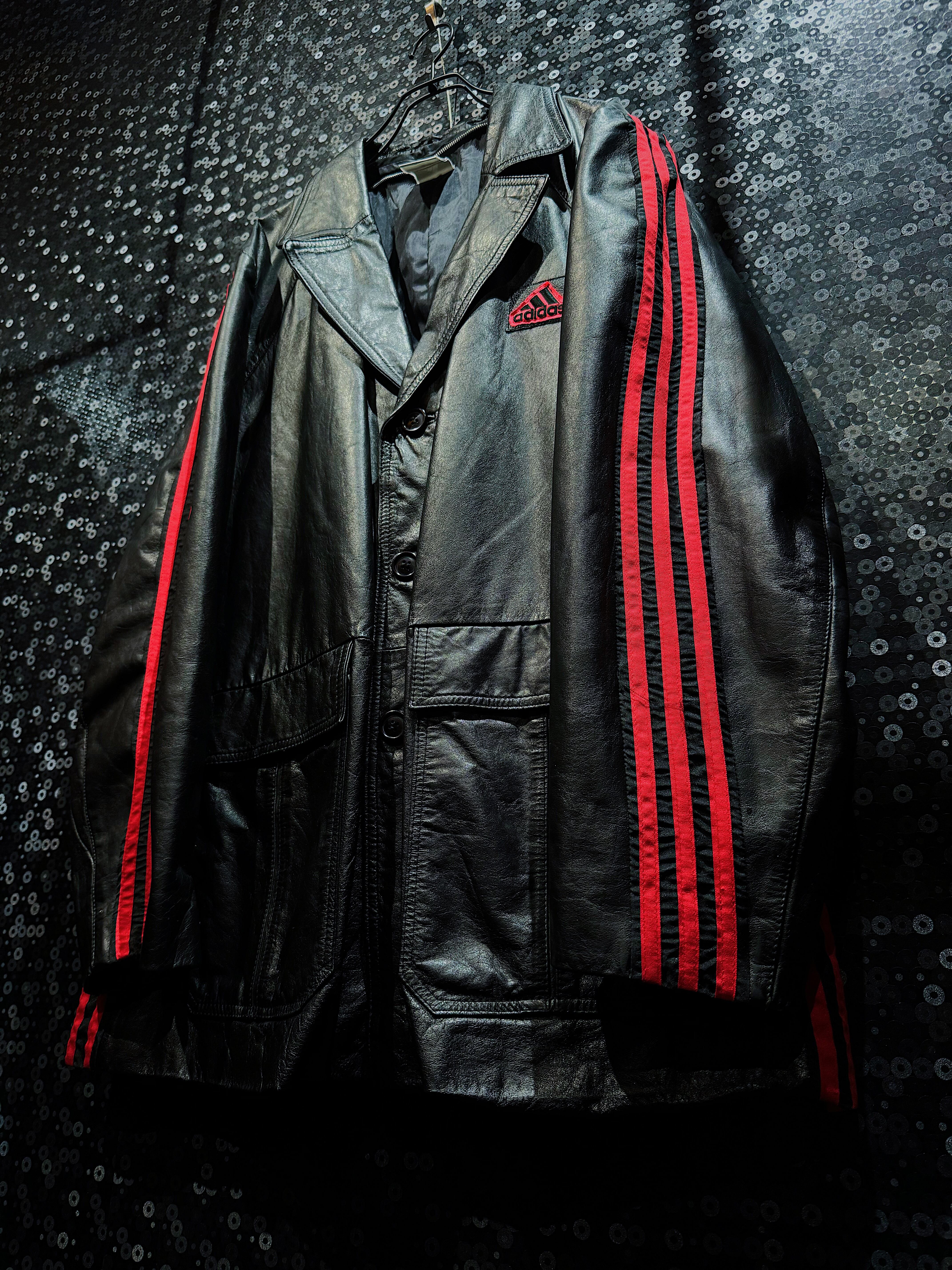 【ÆIEM】"original remake"vintage adidas red three stripe tailored leather jacket