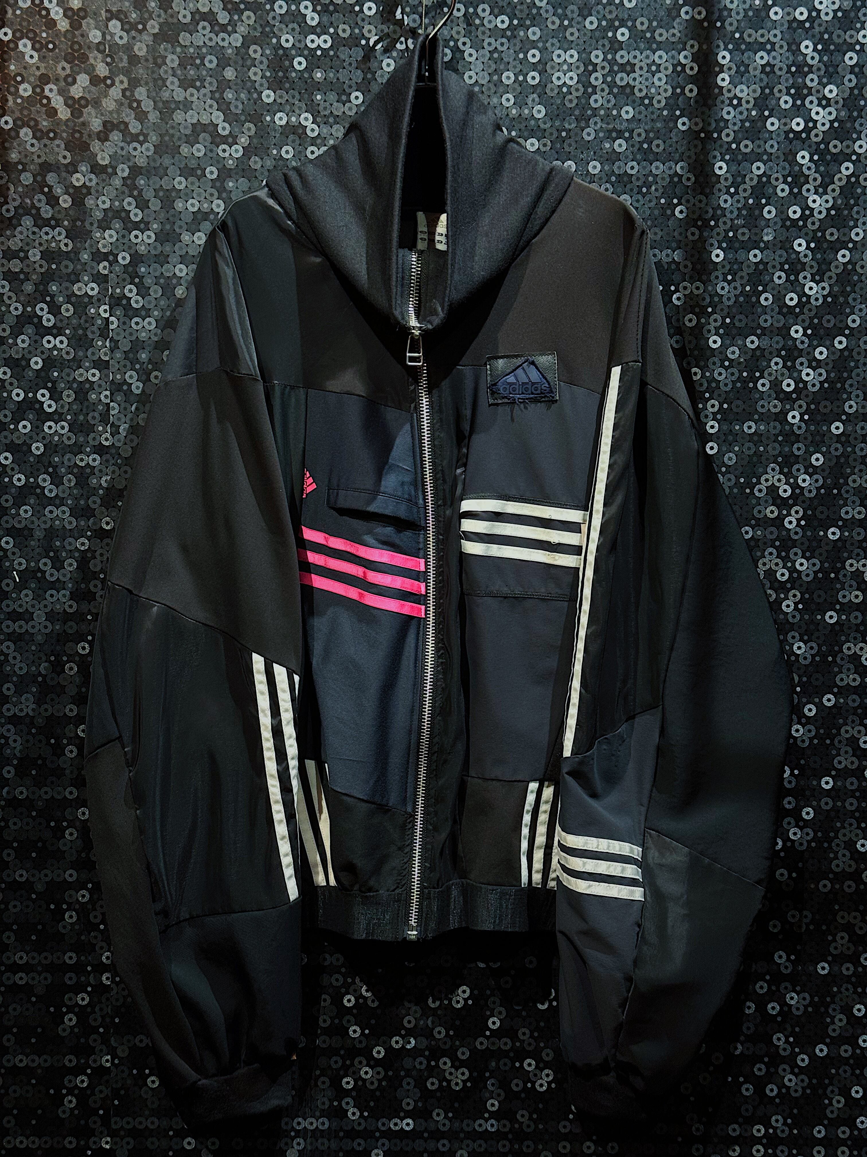 スペシャル"original re:make"ヴィンテージパッチワークデザインハイネックブラックトラックジャケット