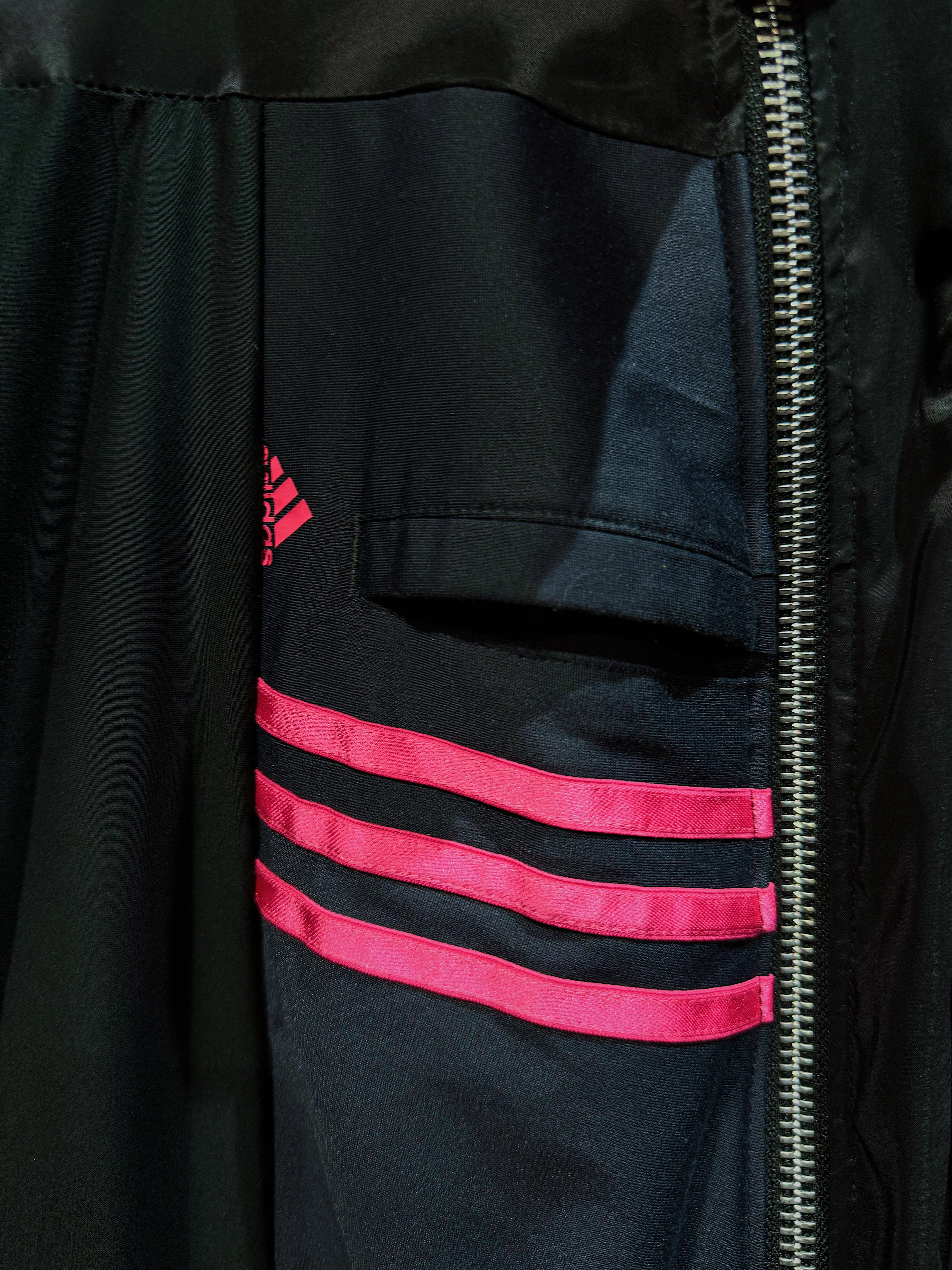 他数のトラックジャケットをパッチワークでデザインを施しており、全てバラバラで圧巻の存在感。無数のトラックジャケットで中には名チームや企業などのチームウェアも存在している個体もあります。