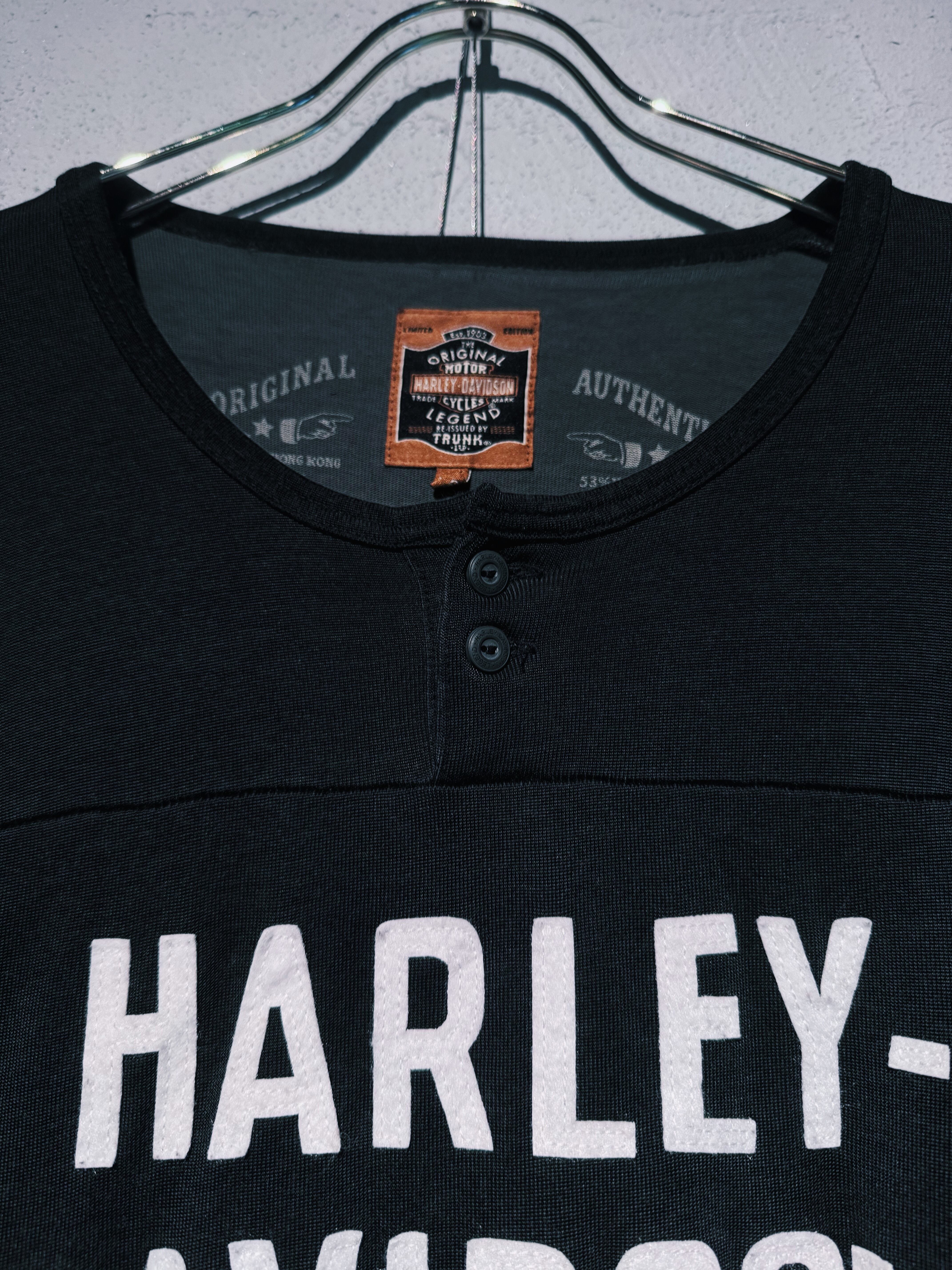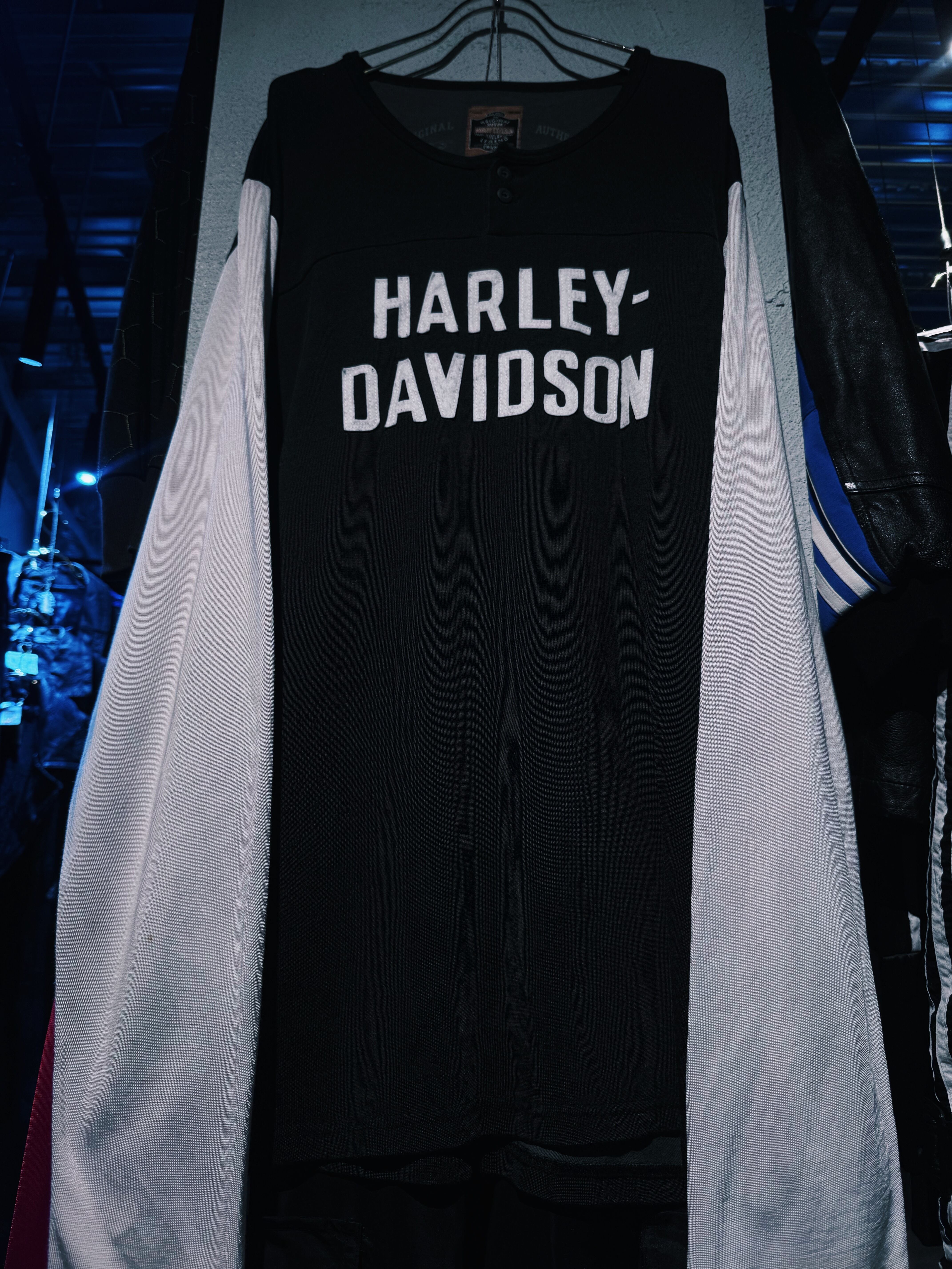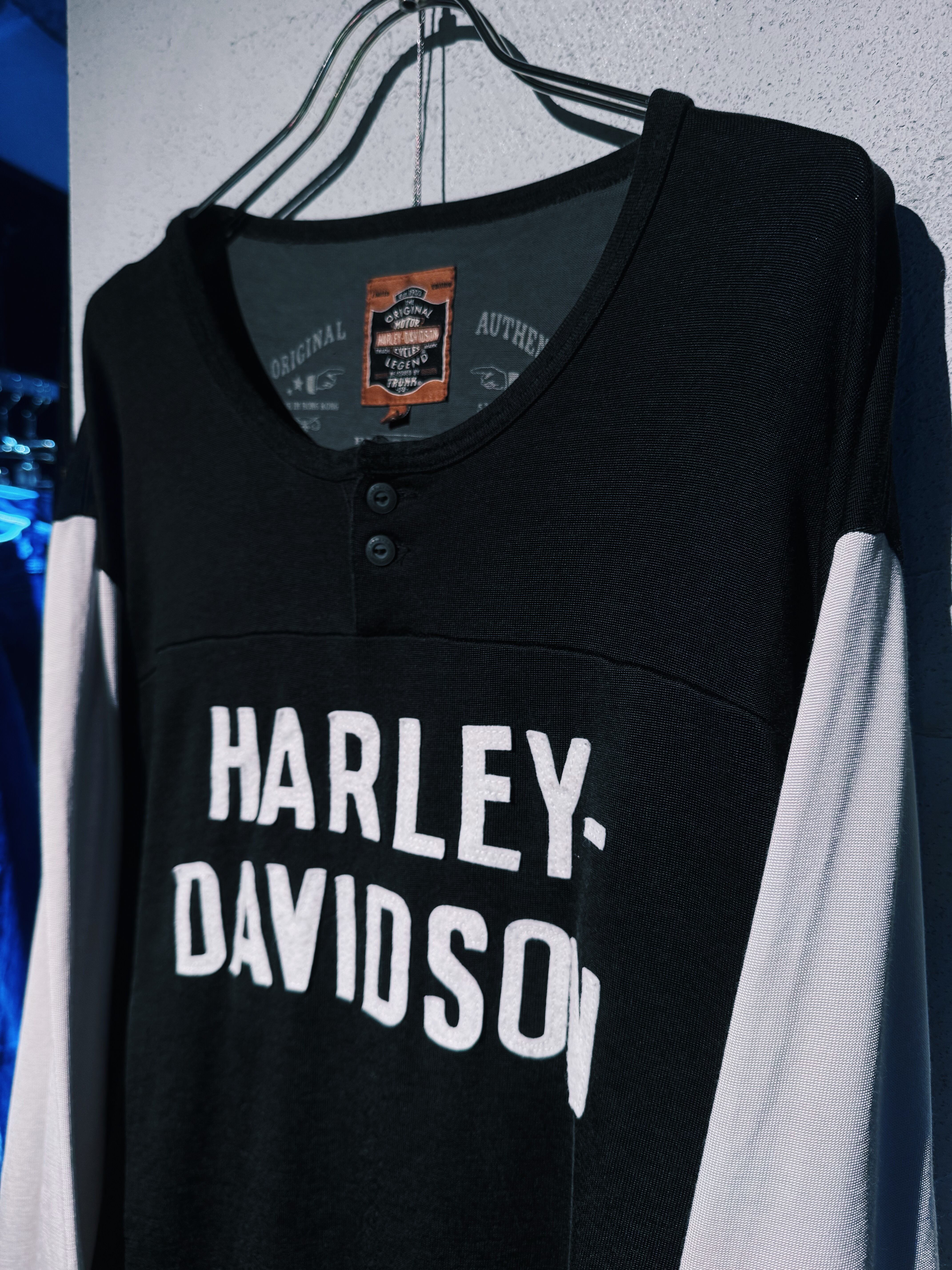 ヴィンテージ"ハーレーダビッドソン"2ボタンロゴプリントデザインロングスリーブTシャツ