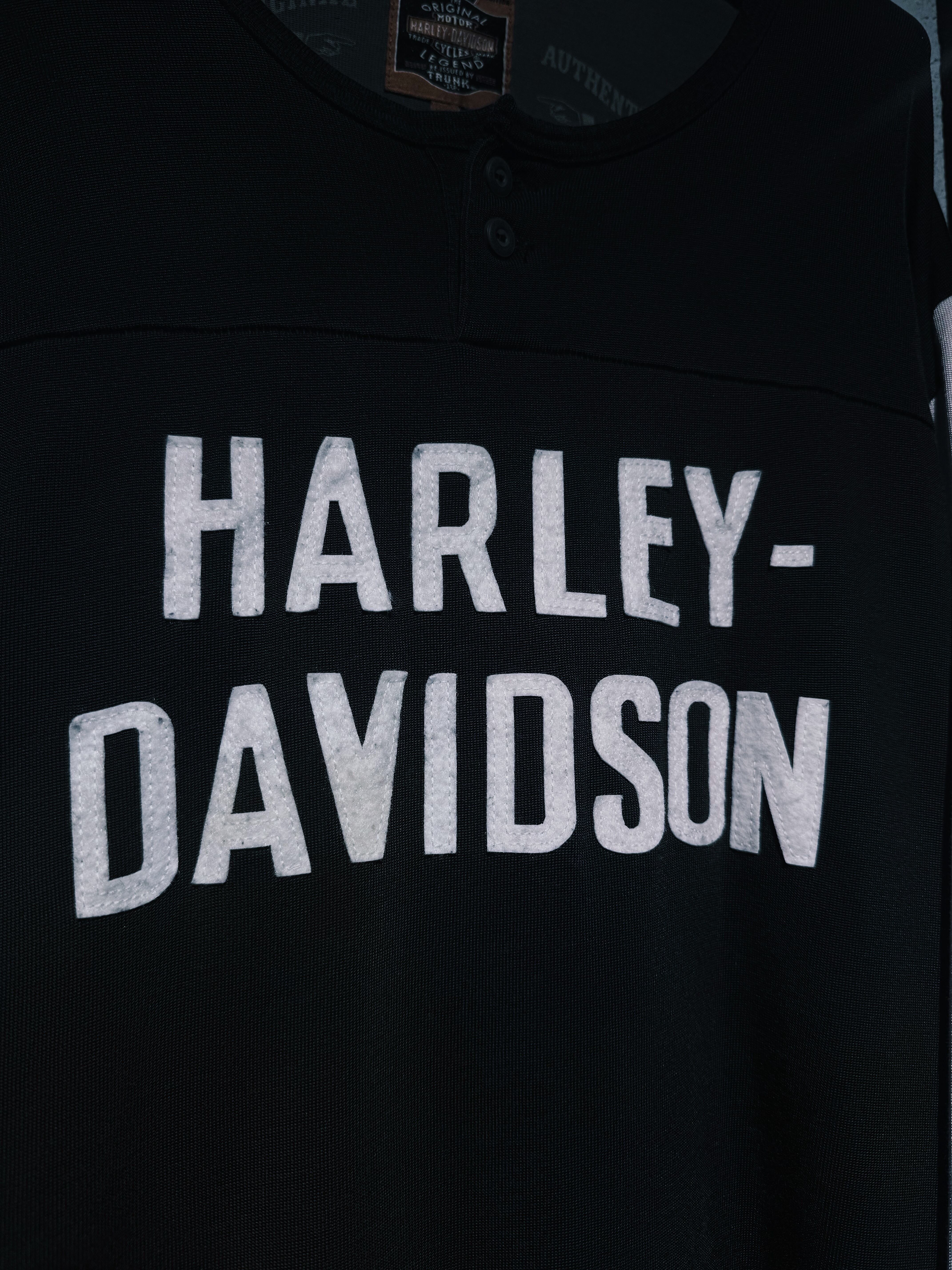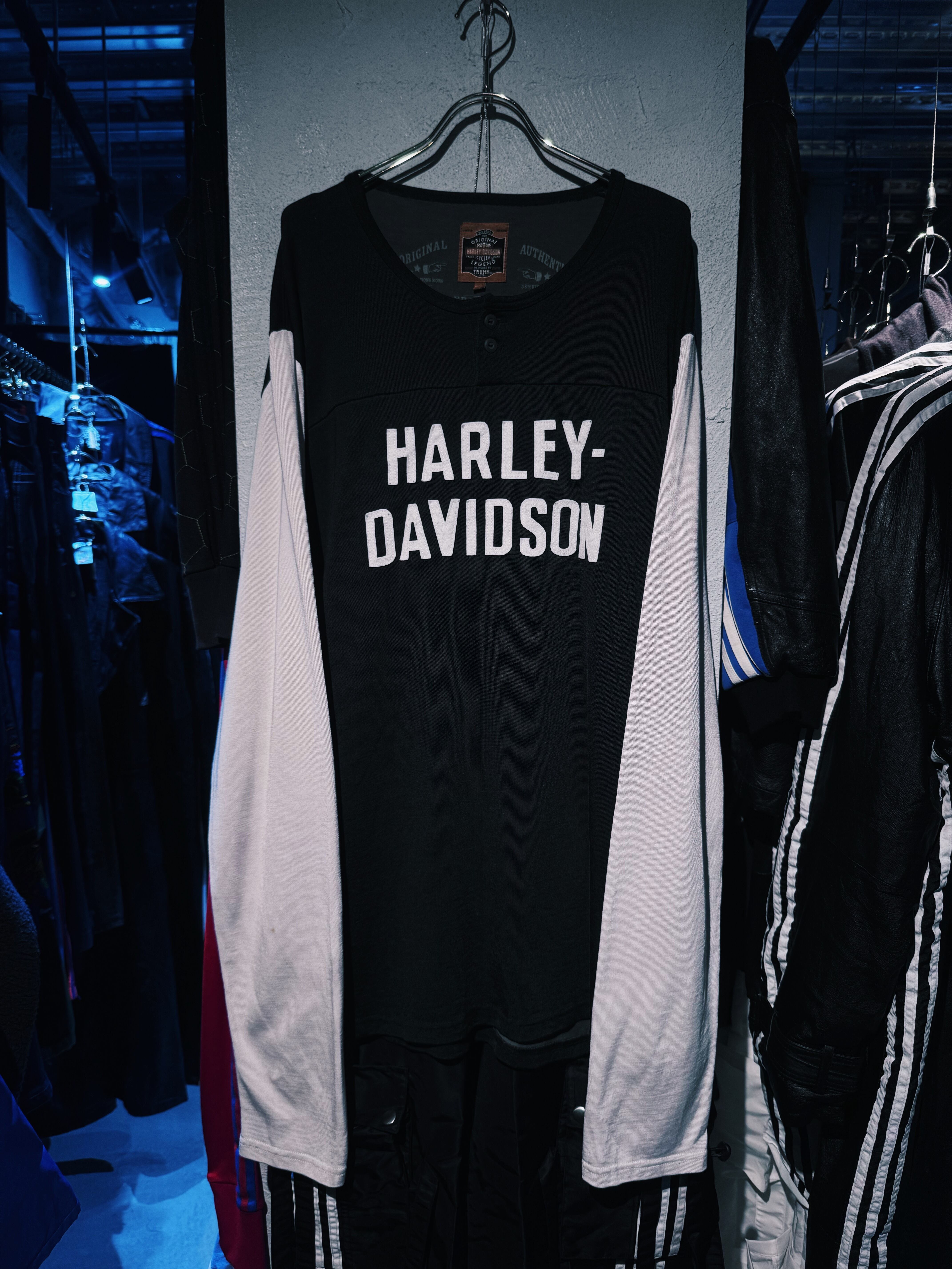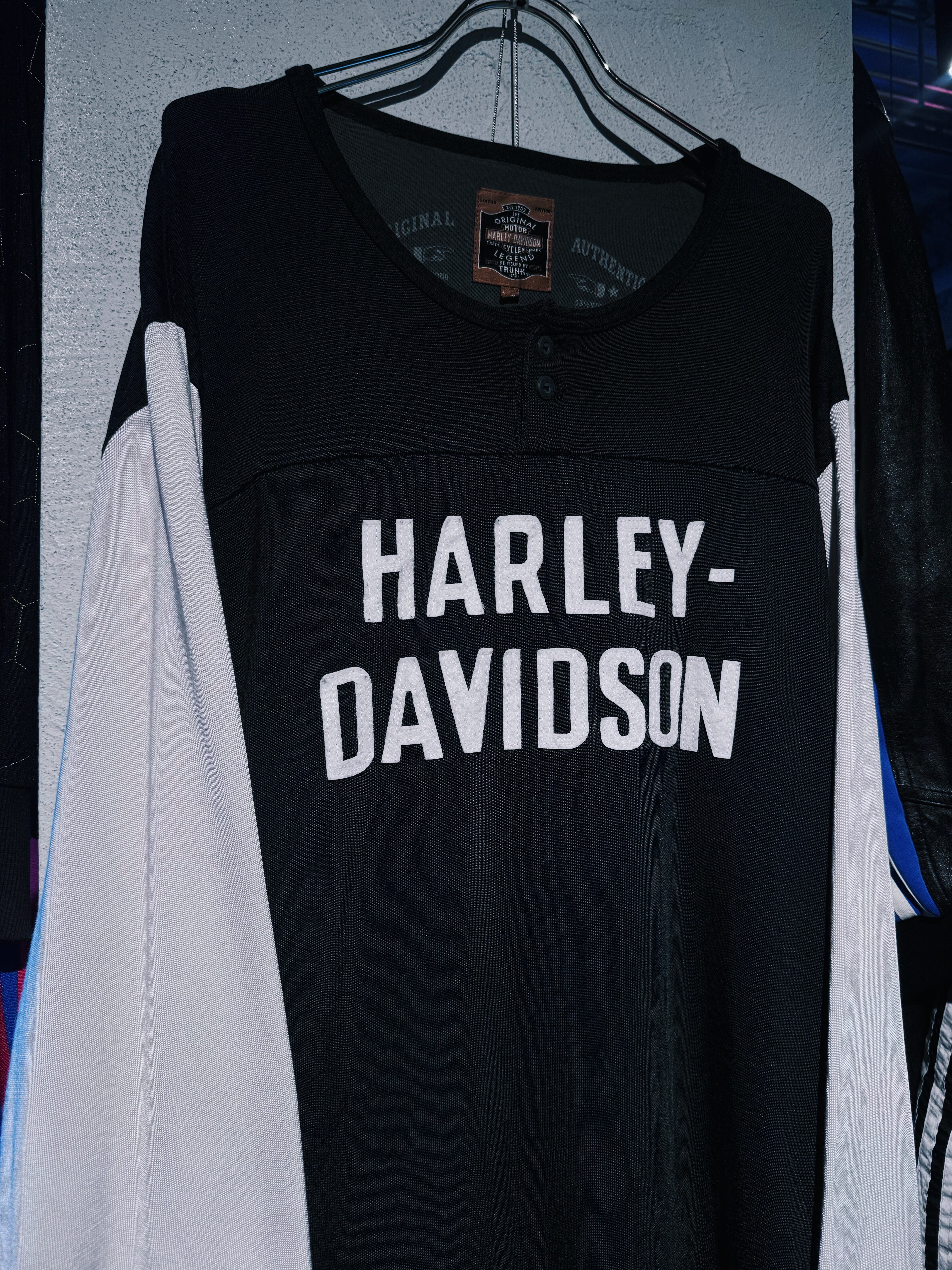 ヴィンテージ"ハーレーダビッドソン"2ボタンロゴプリントデザインロングスリーブTシャツ