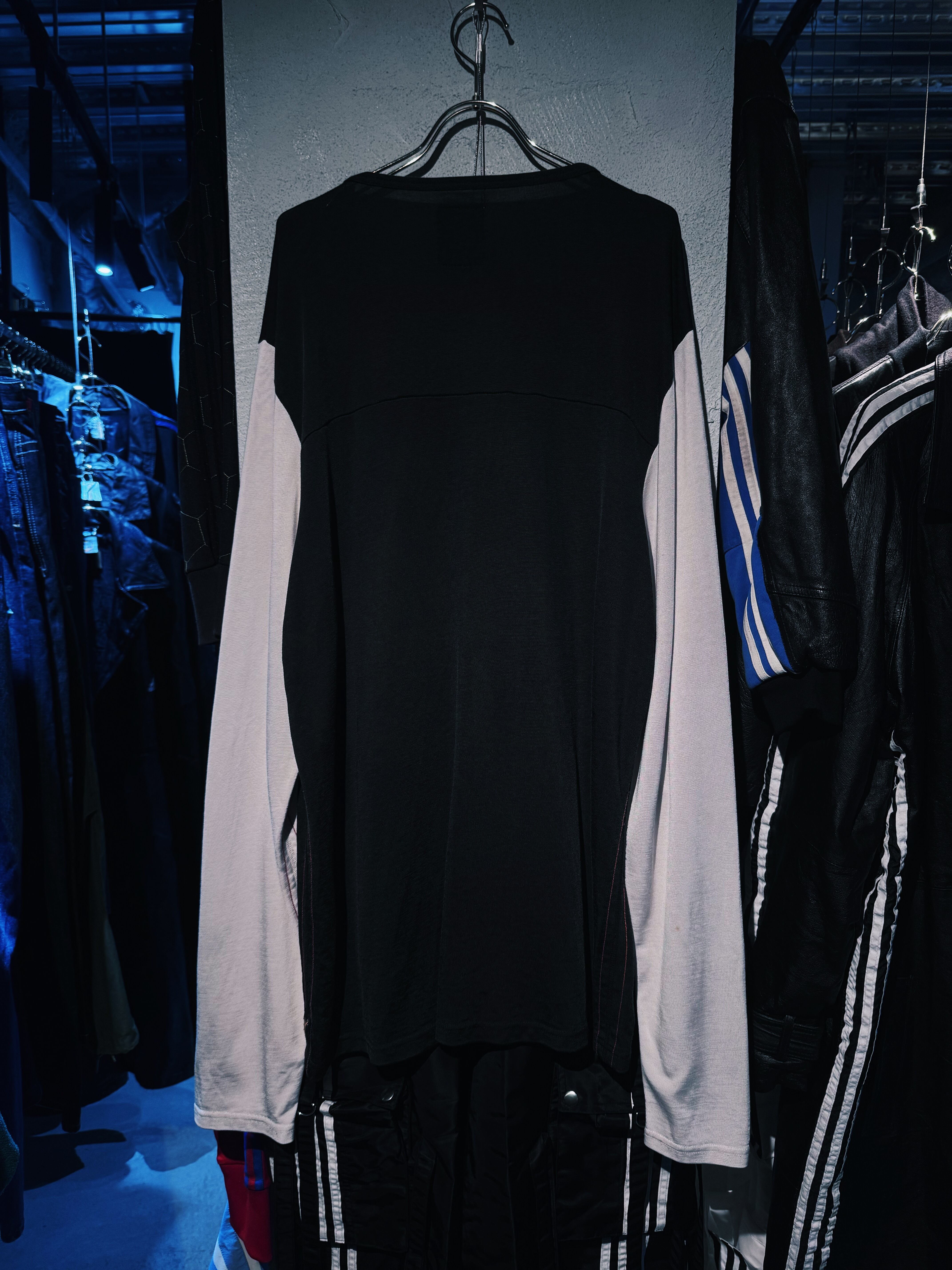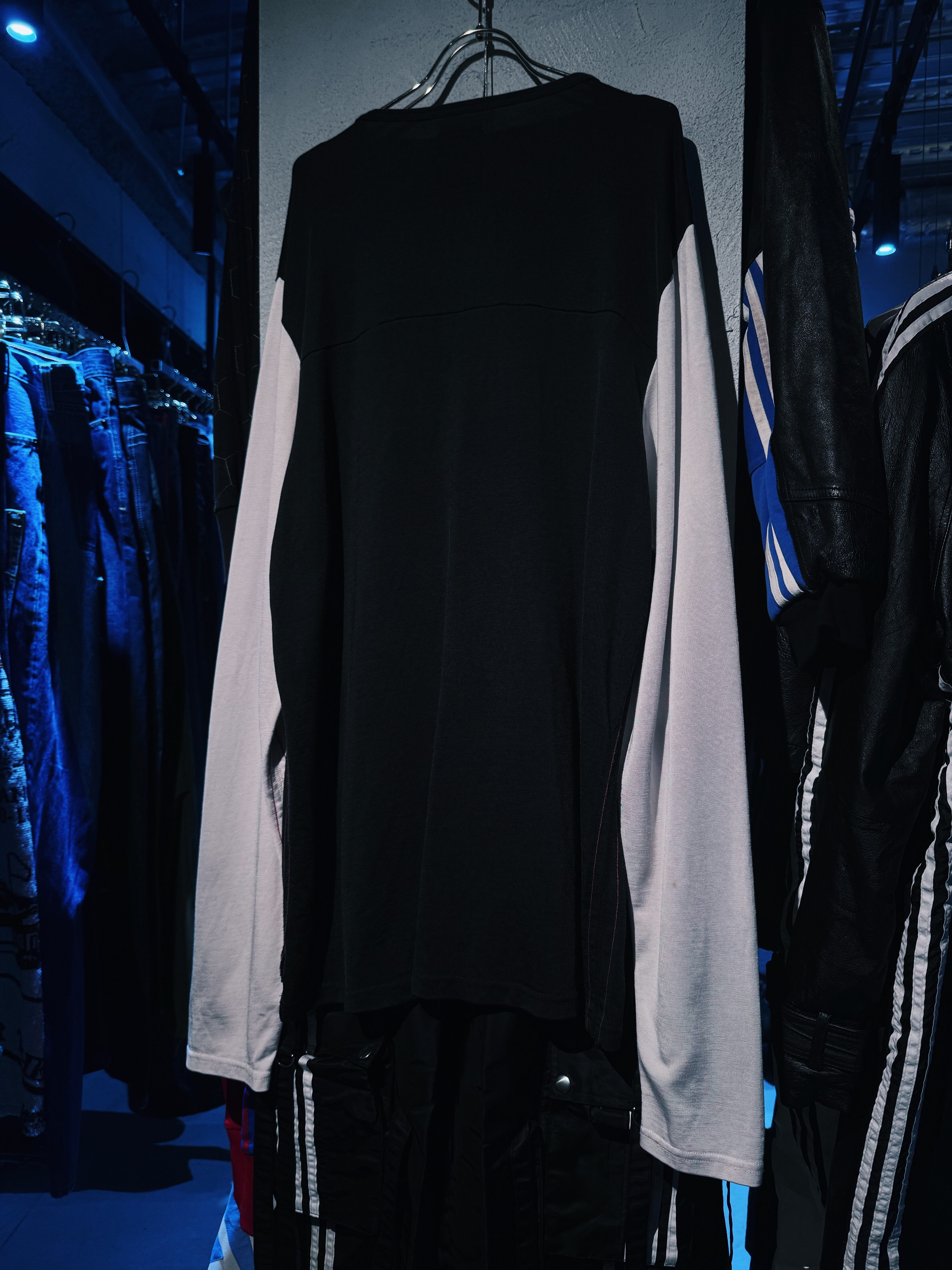ブラックのボディにホワイトカラーであしらわれた袖のスイッチングがたまらない1着。
