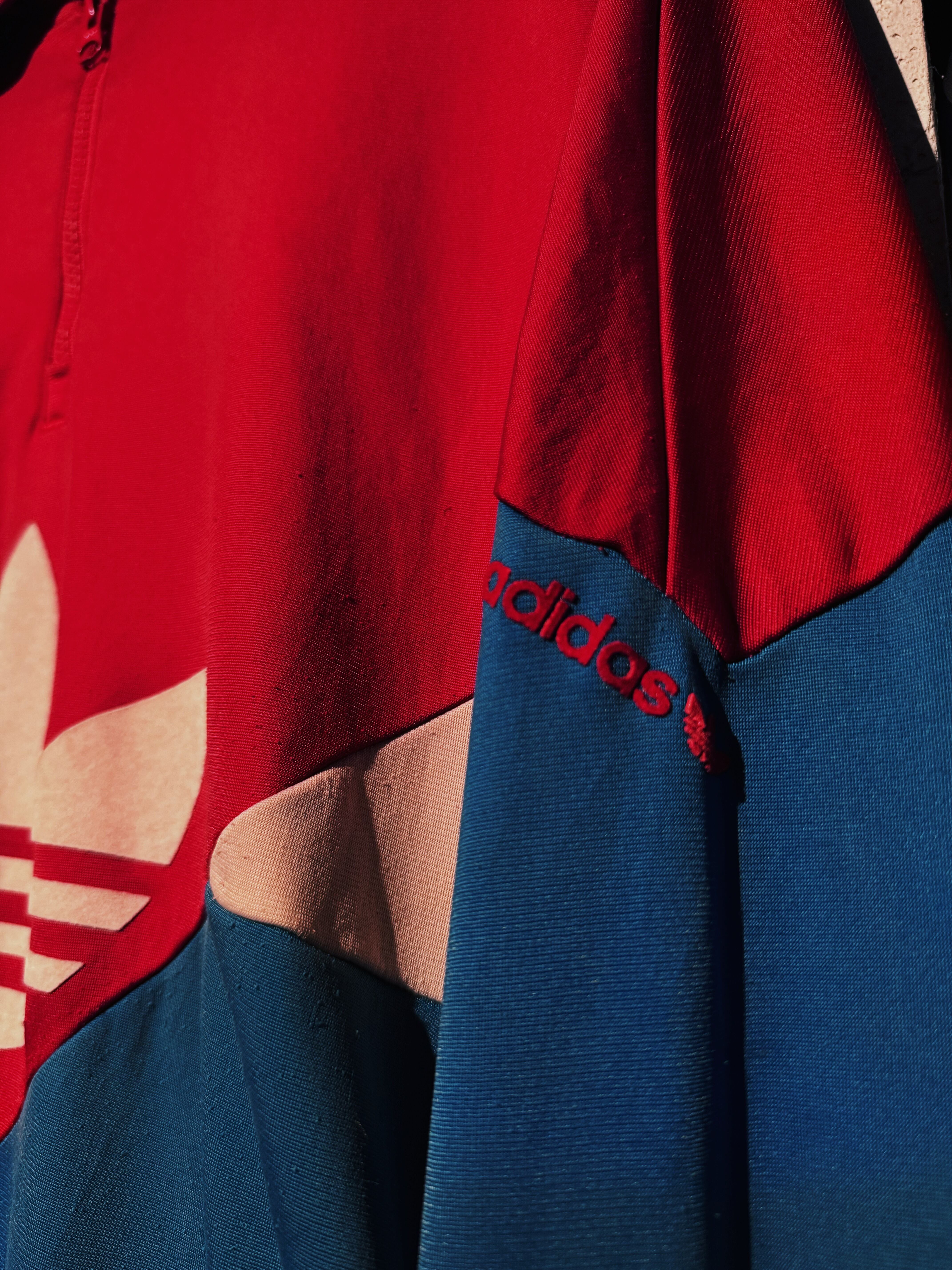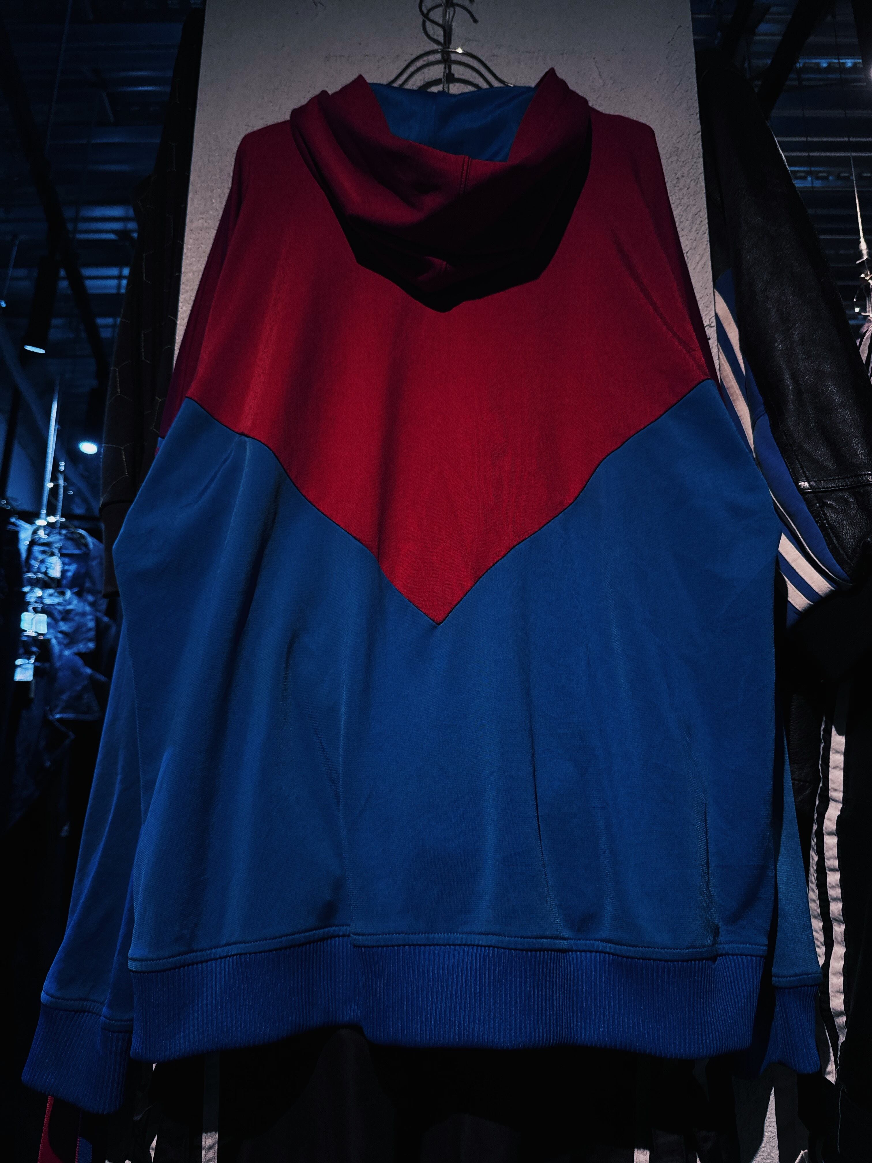 ジップ付きでフーディー部にはレッド、ブルーというマルチカラーでフロントにはトレフォイルロゴが施されており高級感と希少性が高い珍しいスペシャルトラックフーディー。