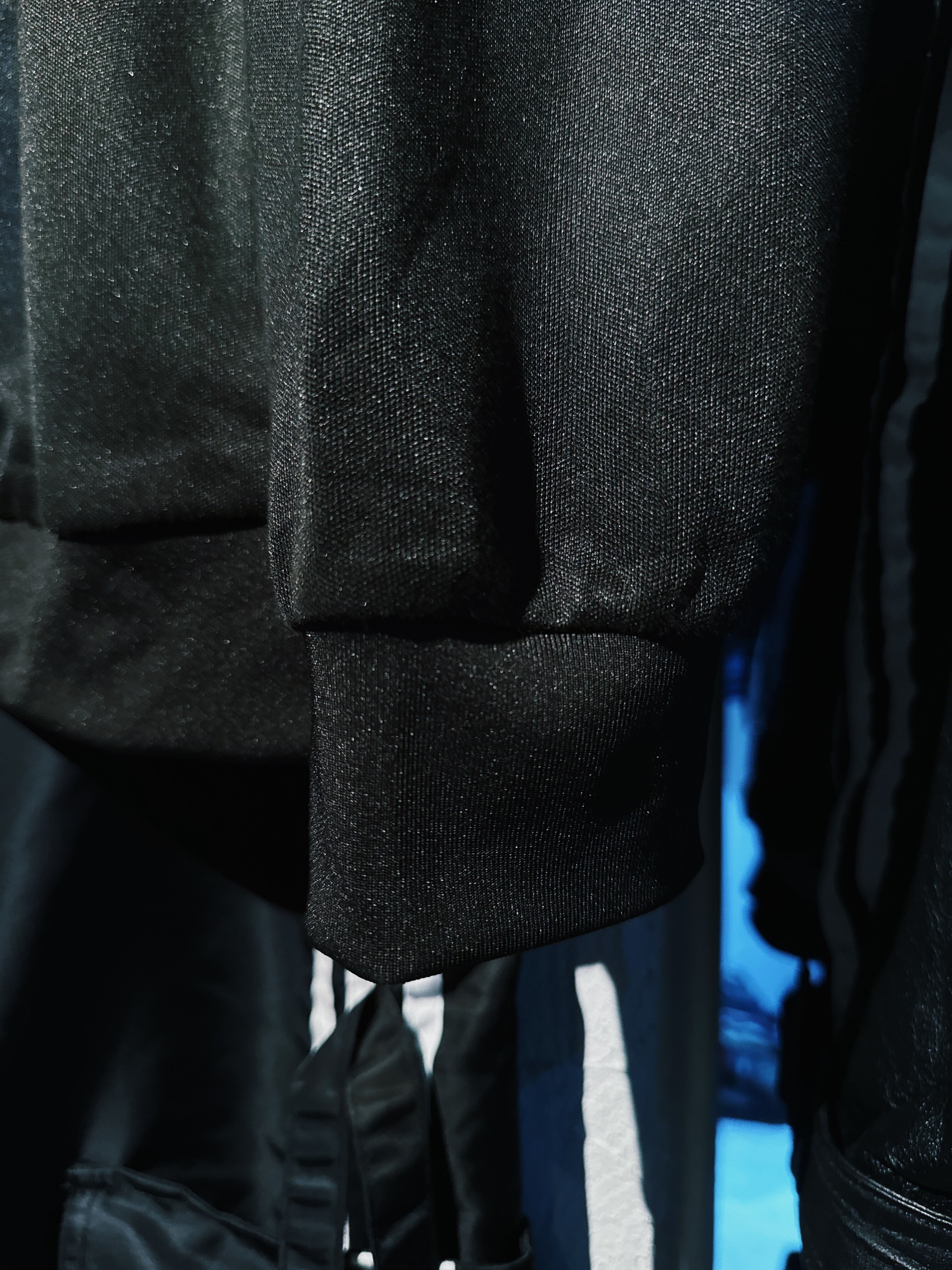肩からadidasの代名詞である3ストライプが施されているが途中で腕章のようなデザインに切り替わっており、他に類を見ないデザインへと。