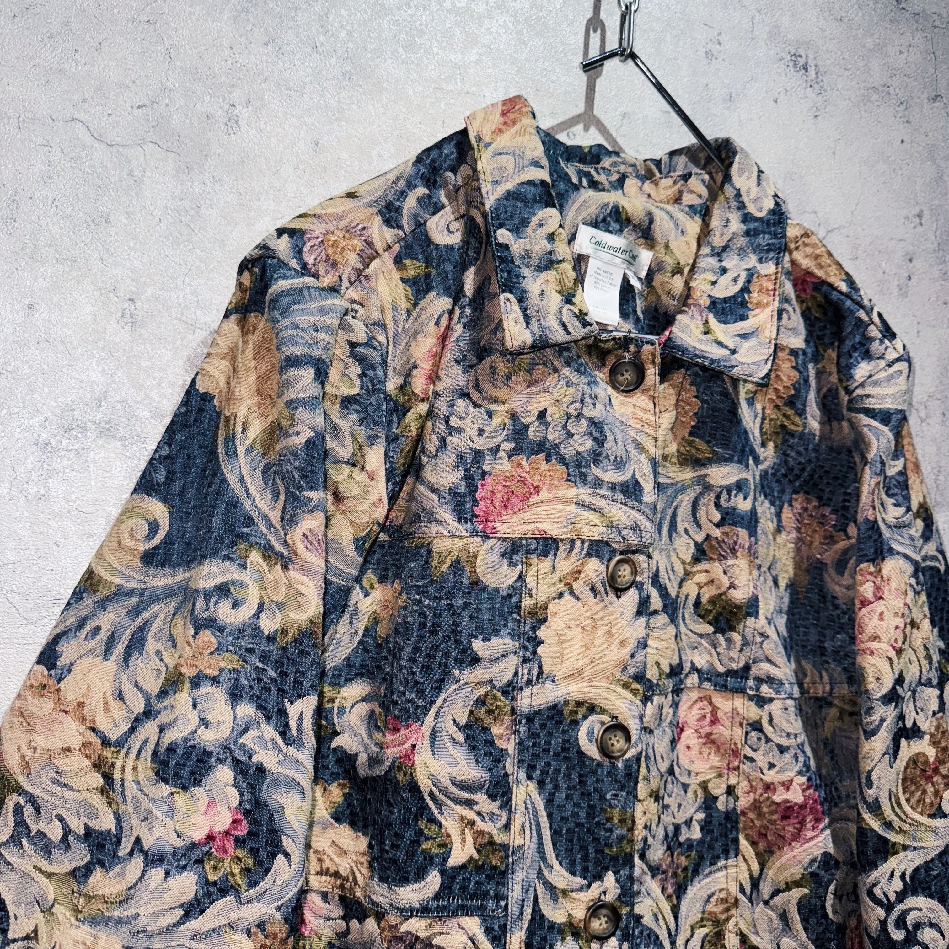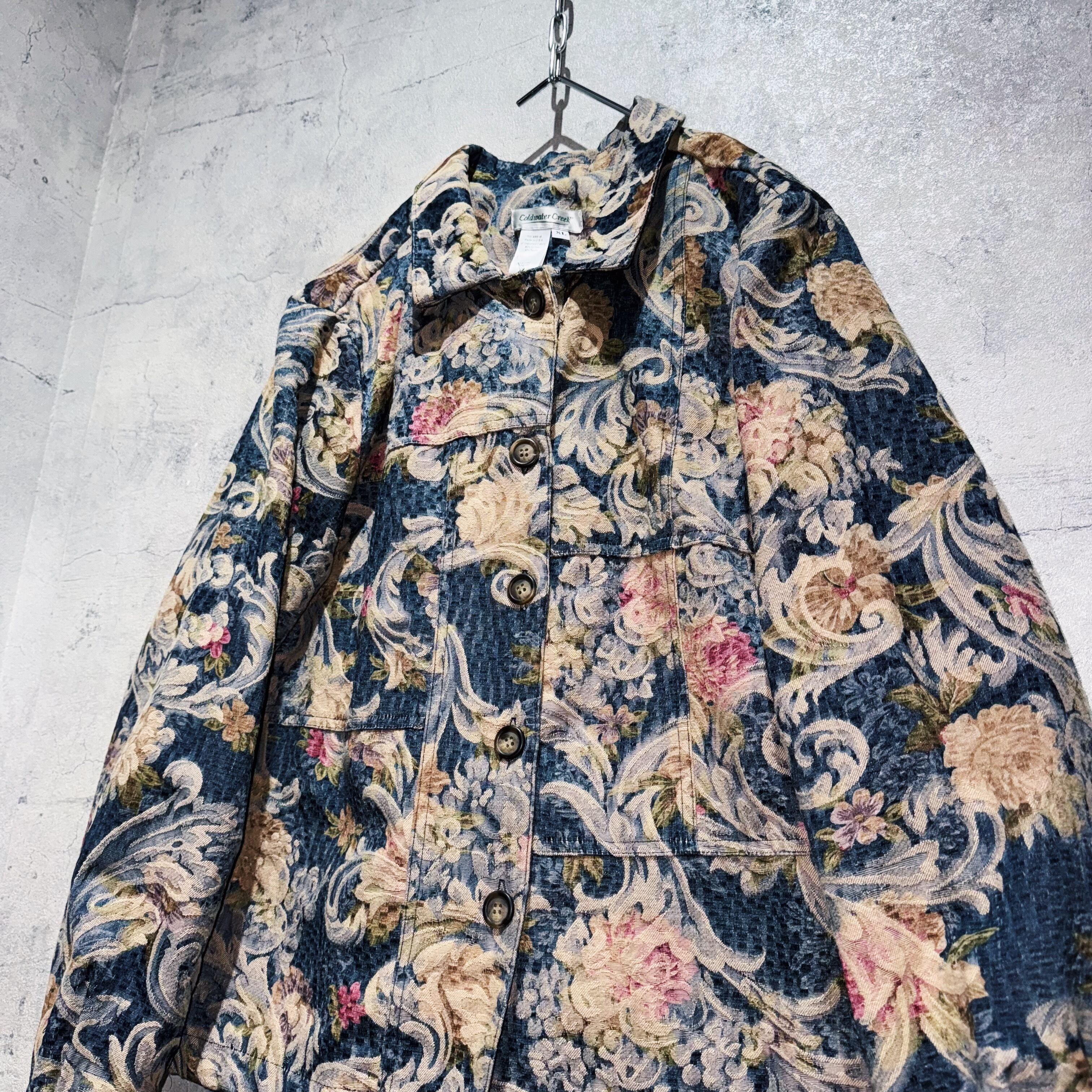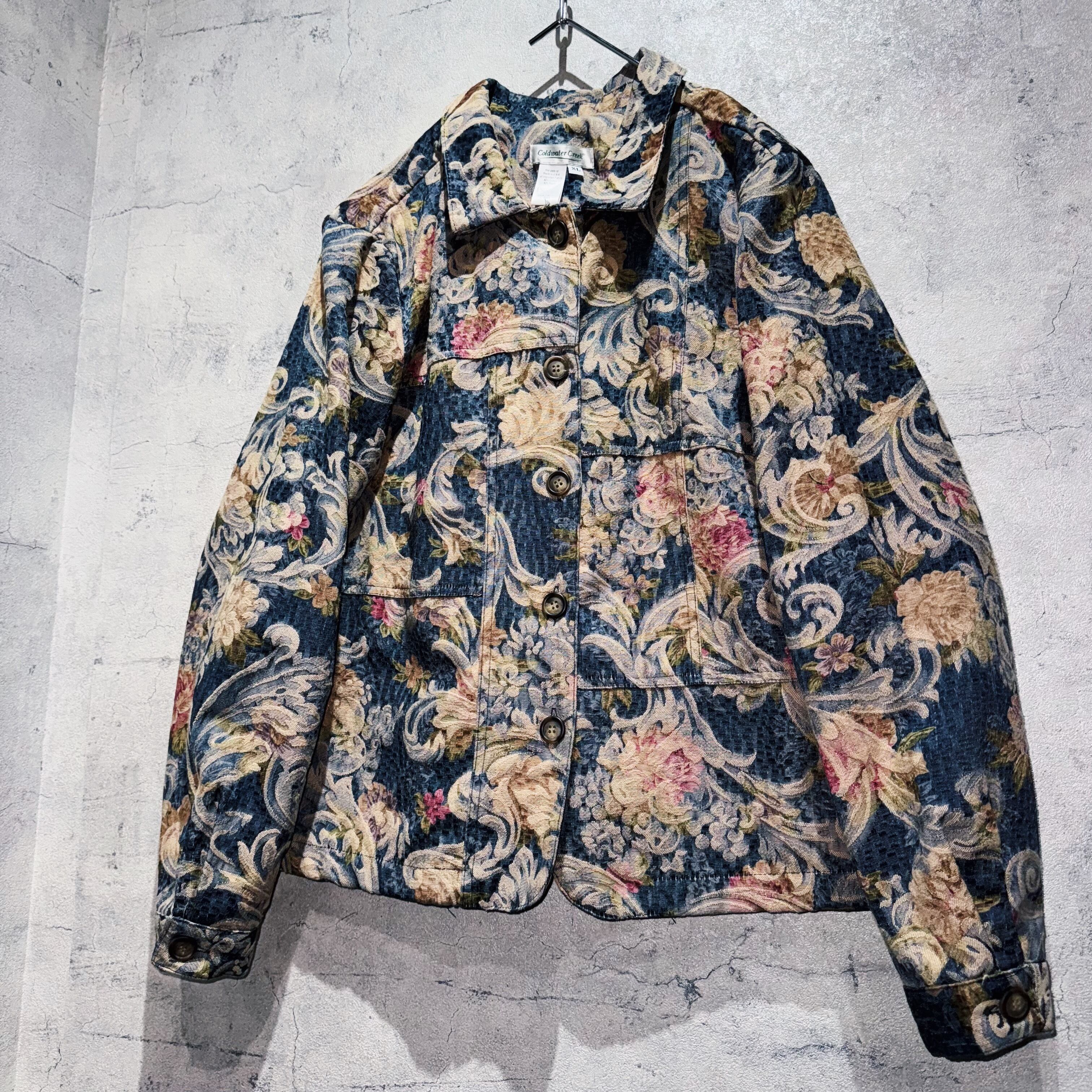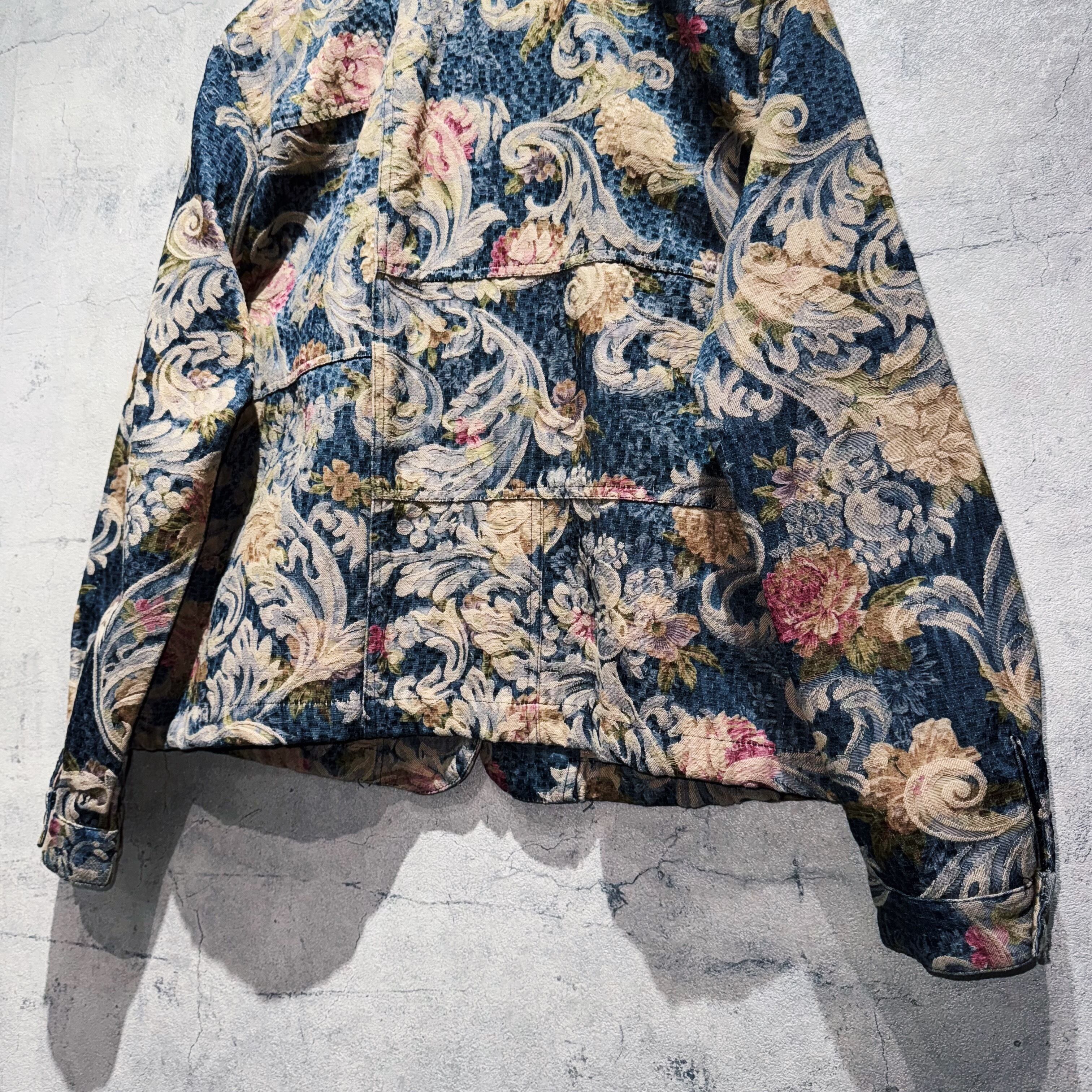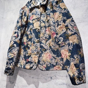 ラグジュアリーサもありつつレトロな風合いに包まれたボタニカル柄のゴブランジャケット。多彩な糸で紡がられた立体感のある総柄はまさに圧巻…