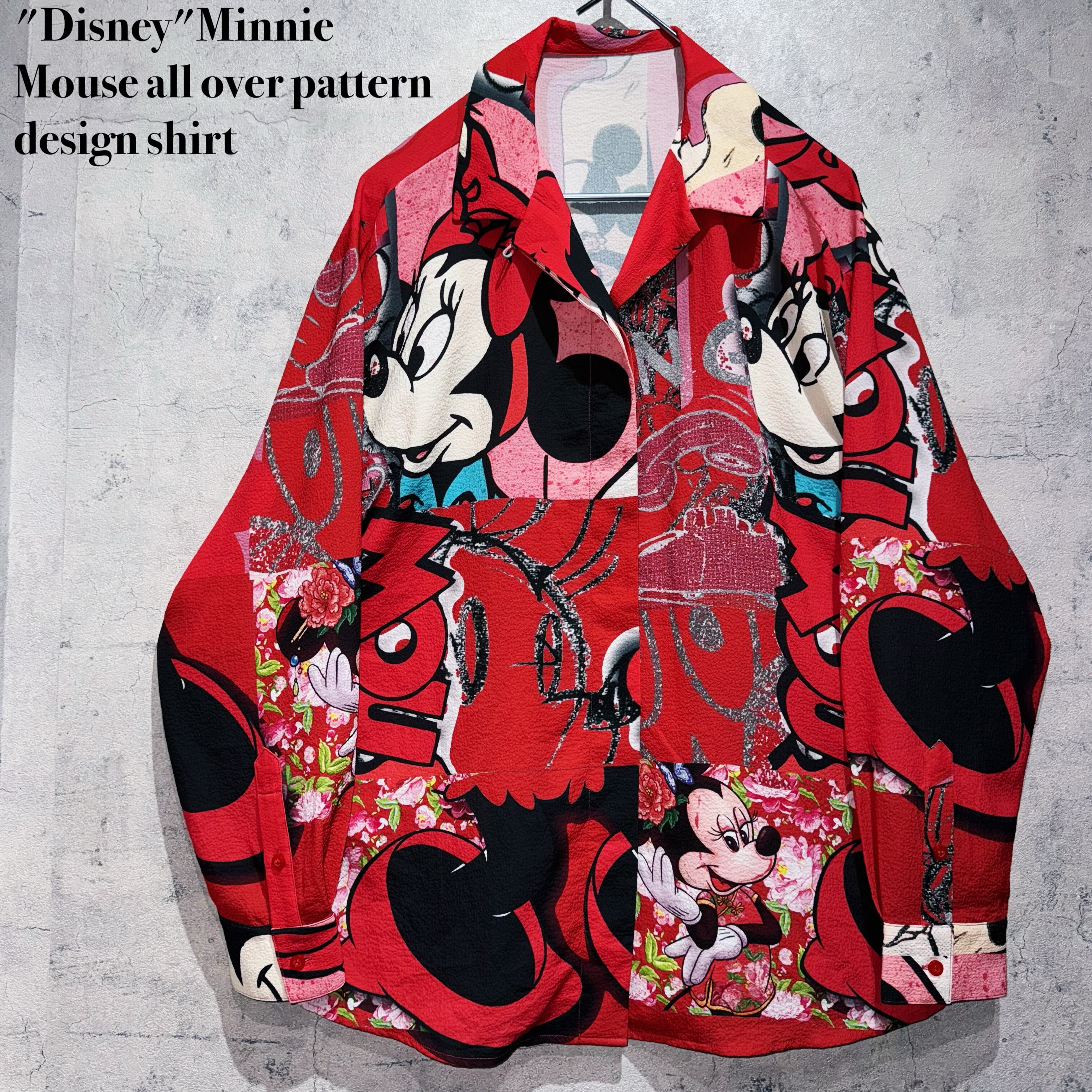 "ディズニー"ミニーマウスオールオーバーパターンデザインシャツ