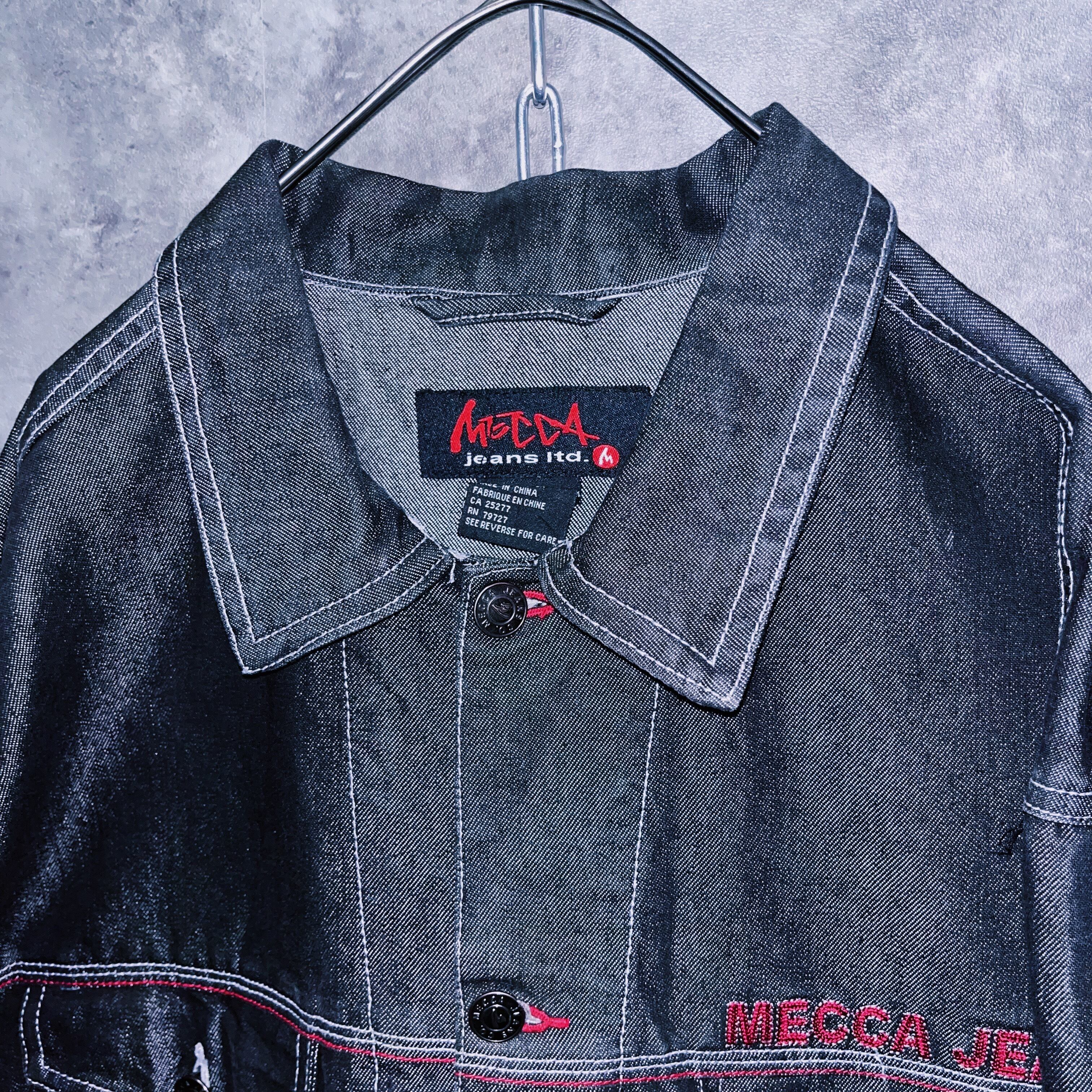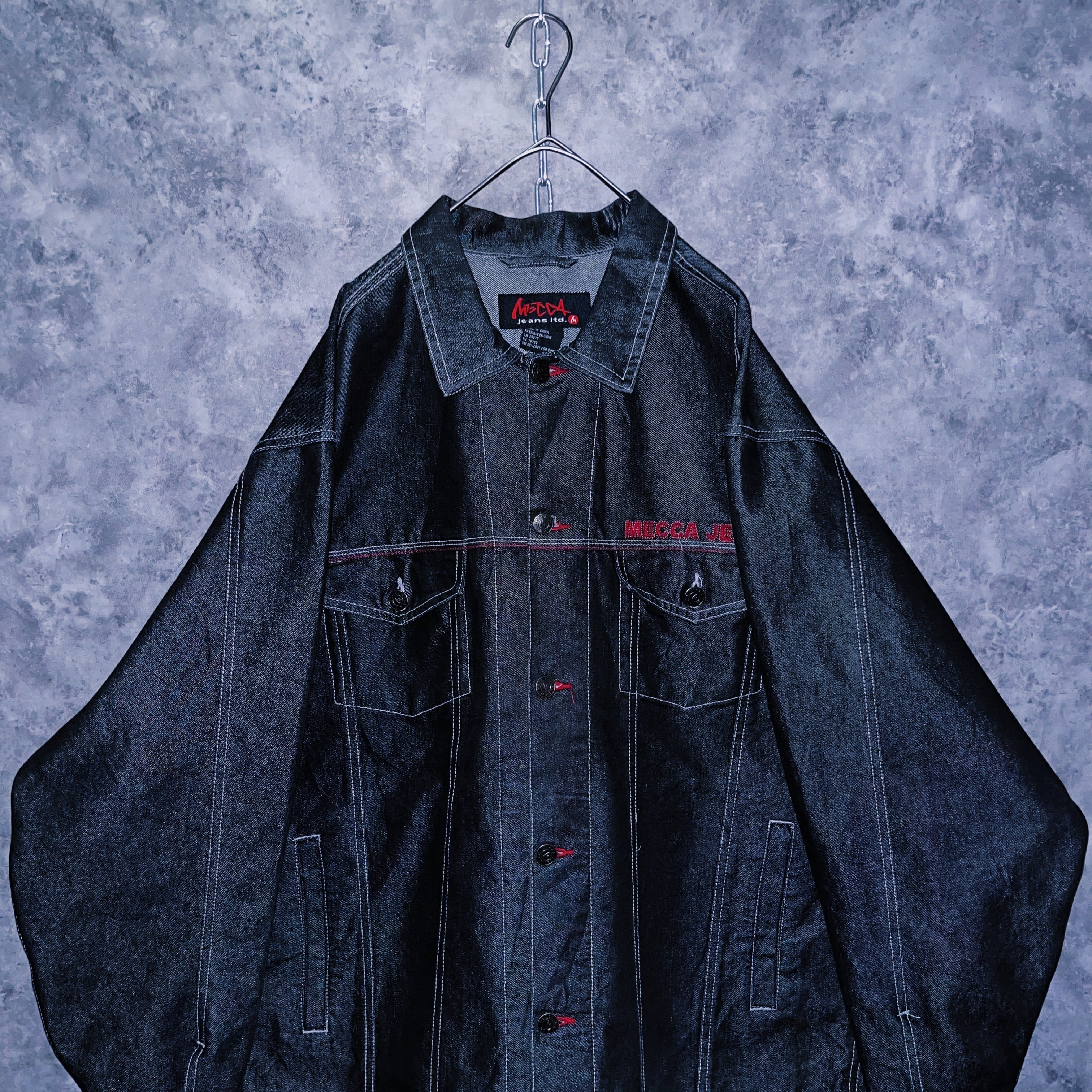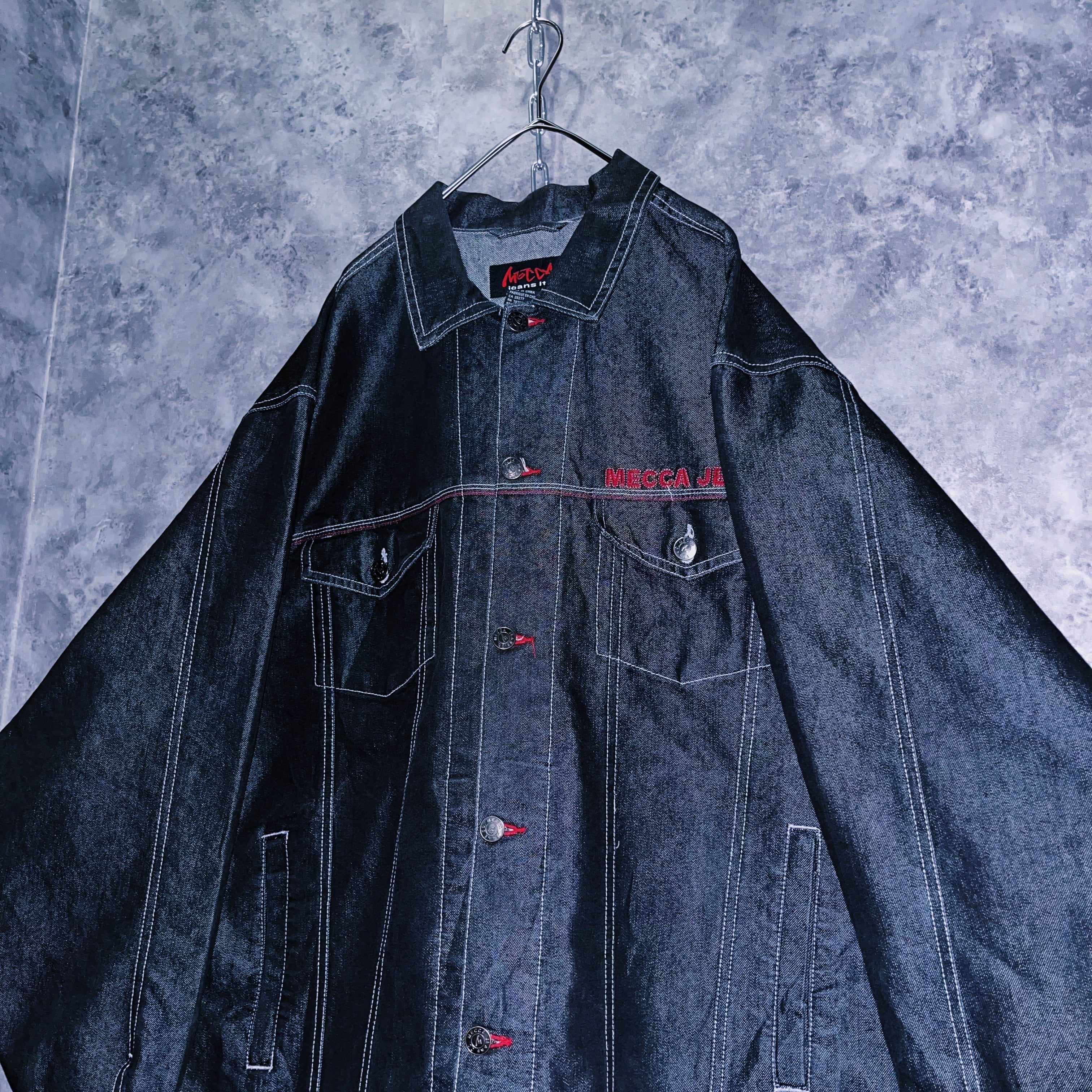 90‘sヴィンテージレッドカラーステッチデザインブラックデニムジャケット