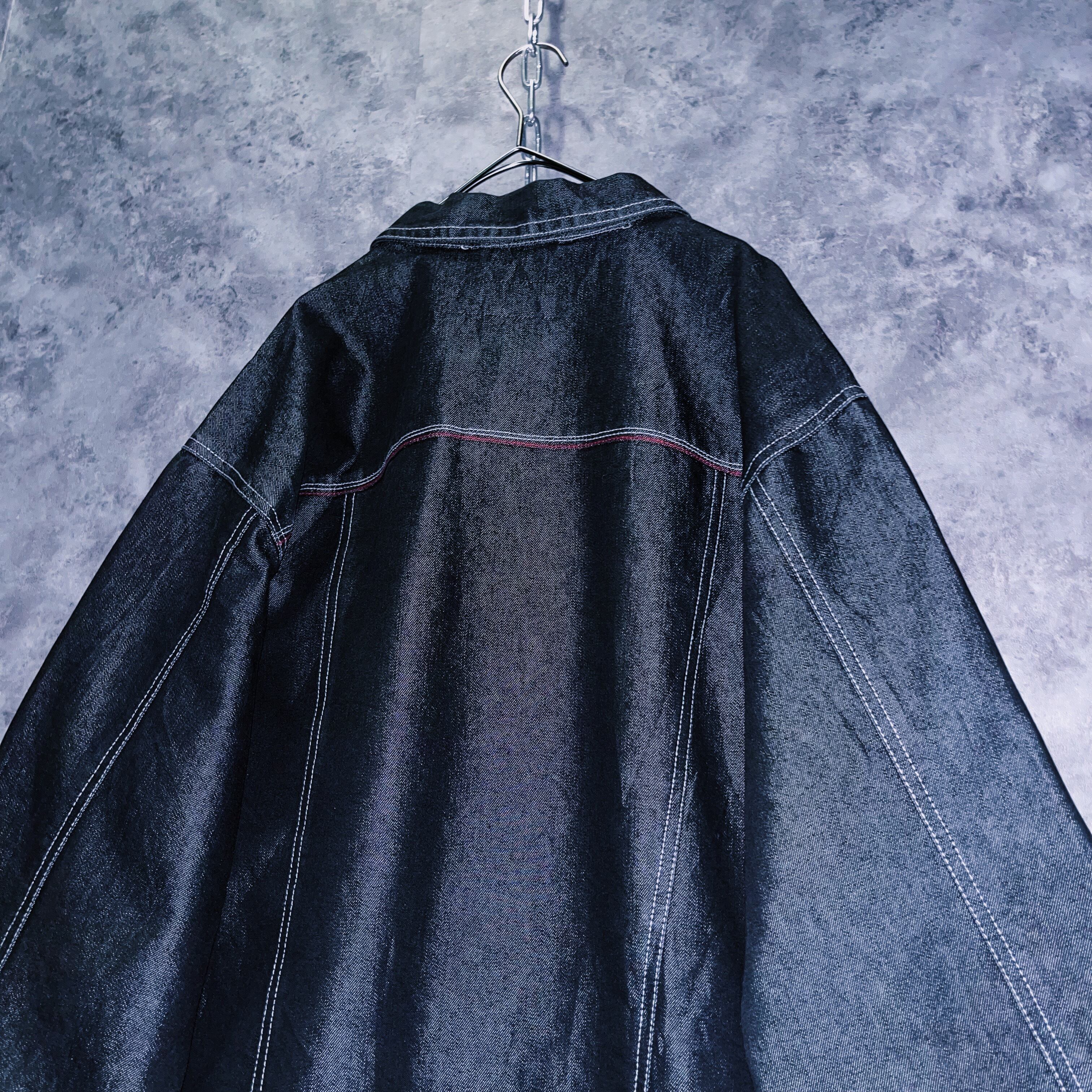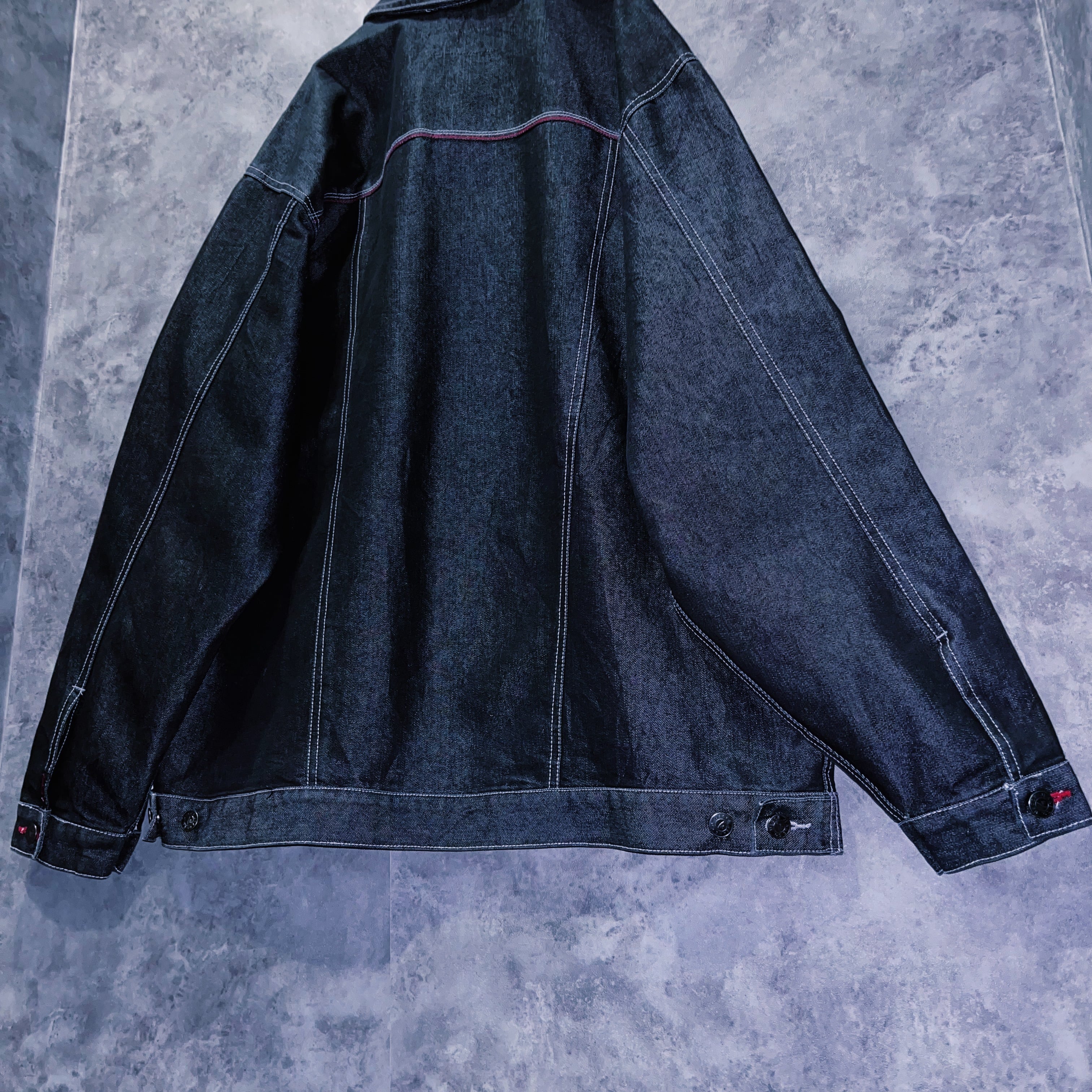【doppio】90’s Vintage red color stitch design black denim jacket
