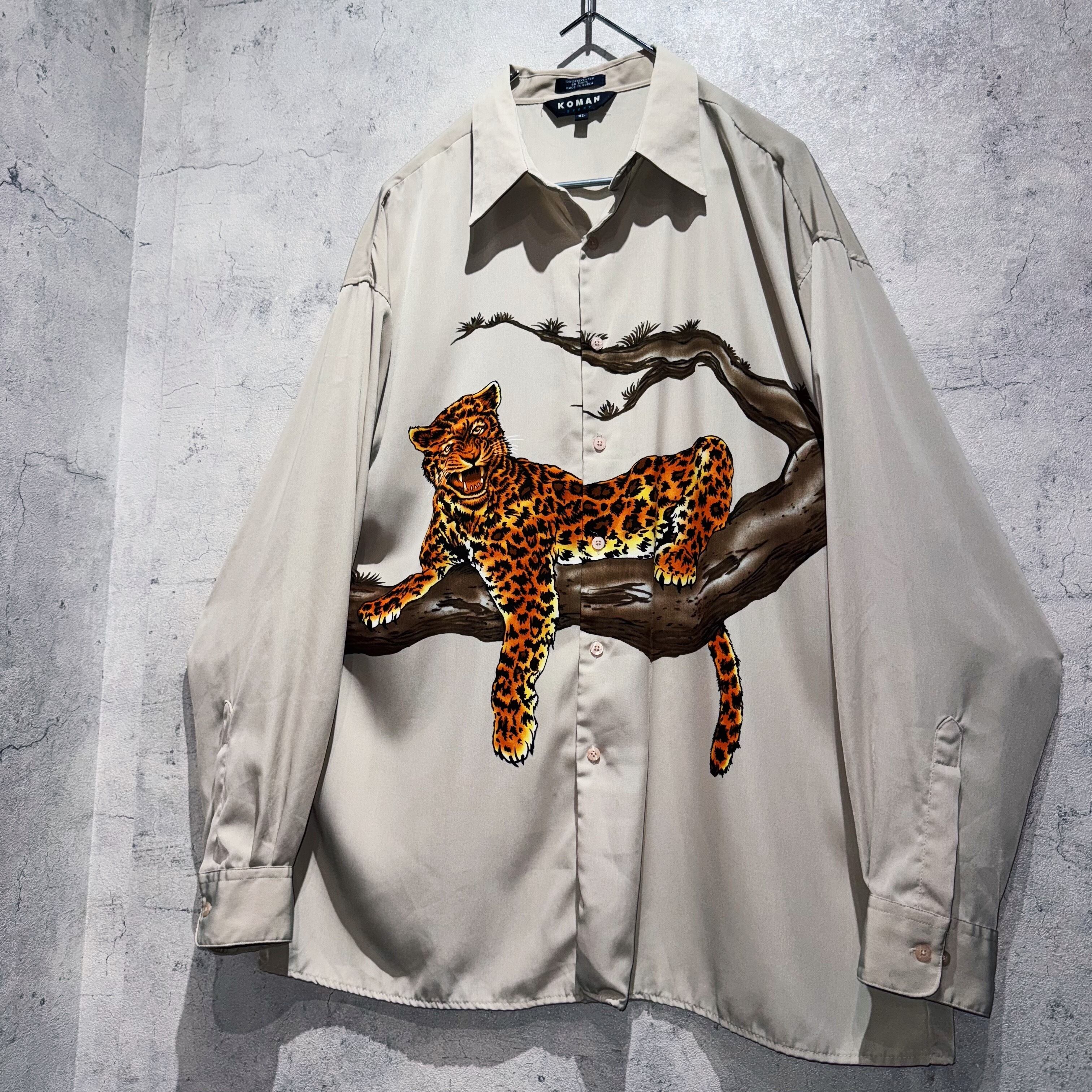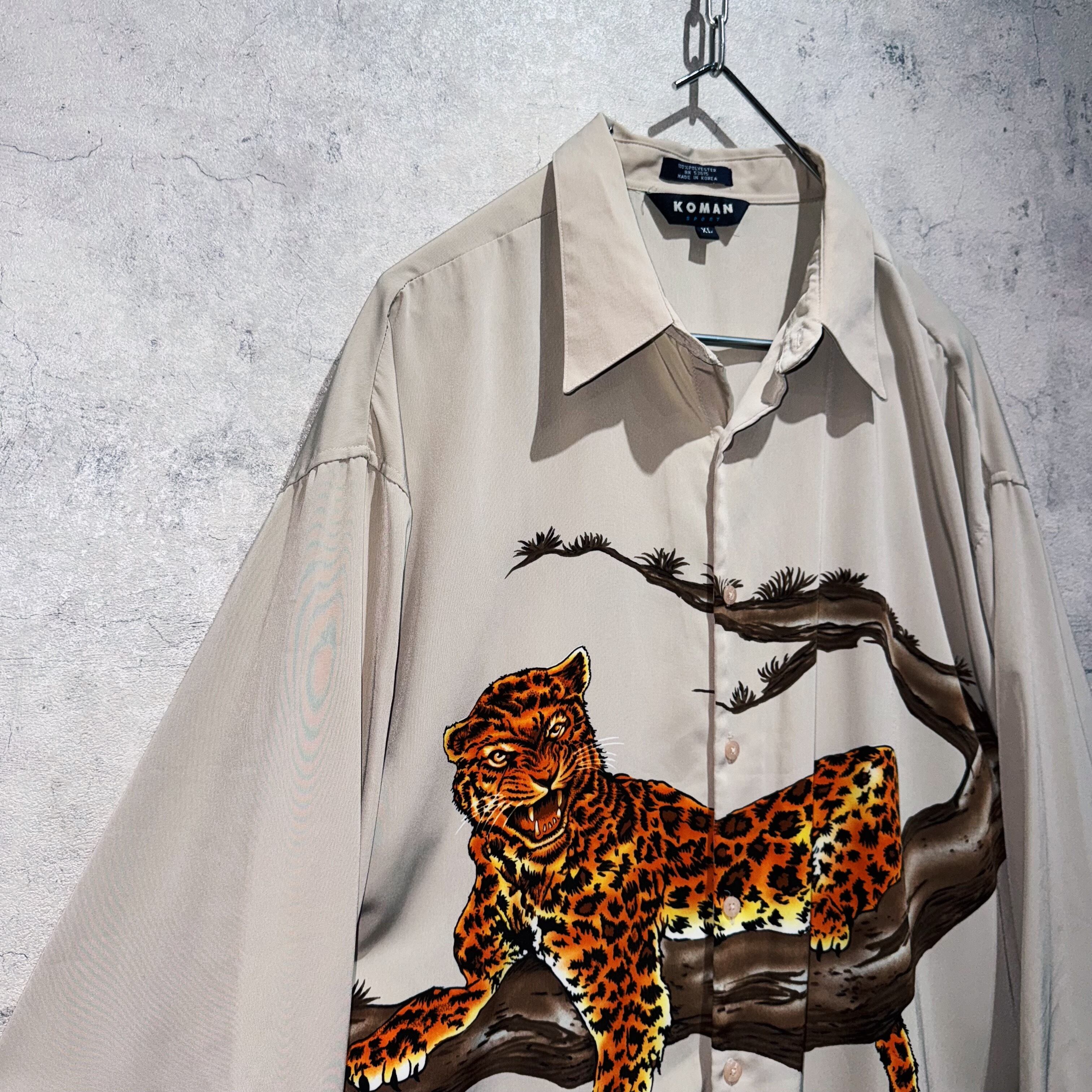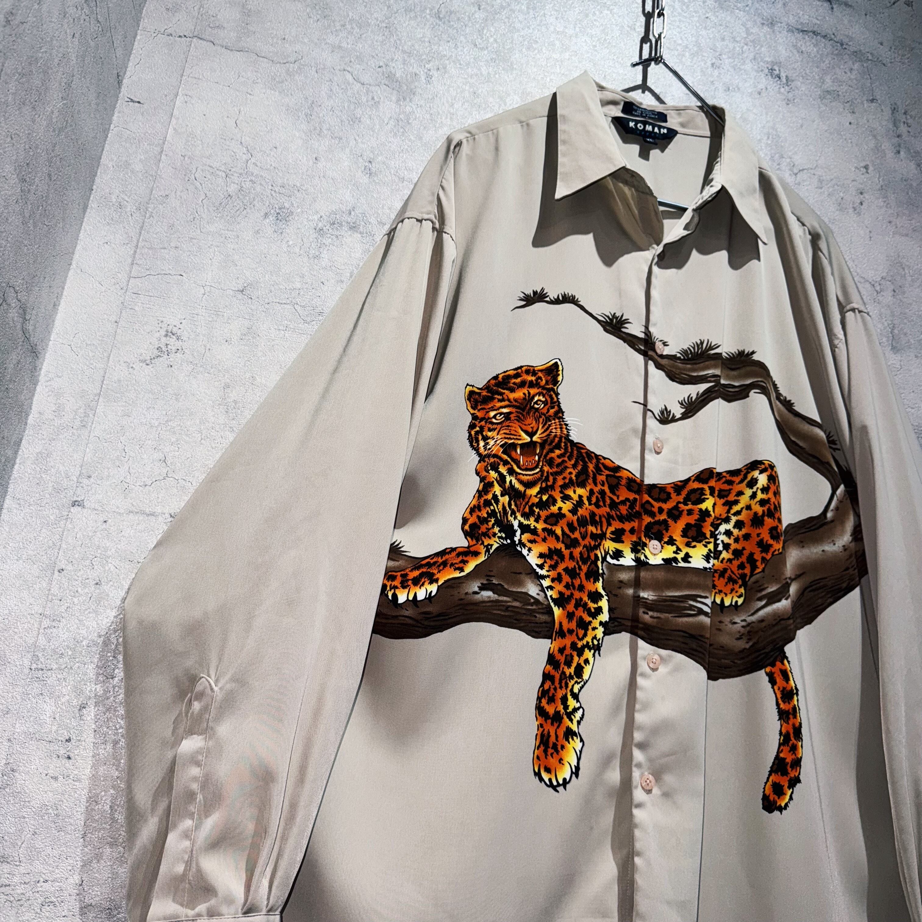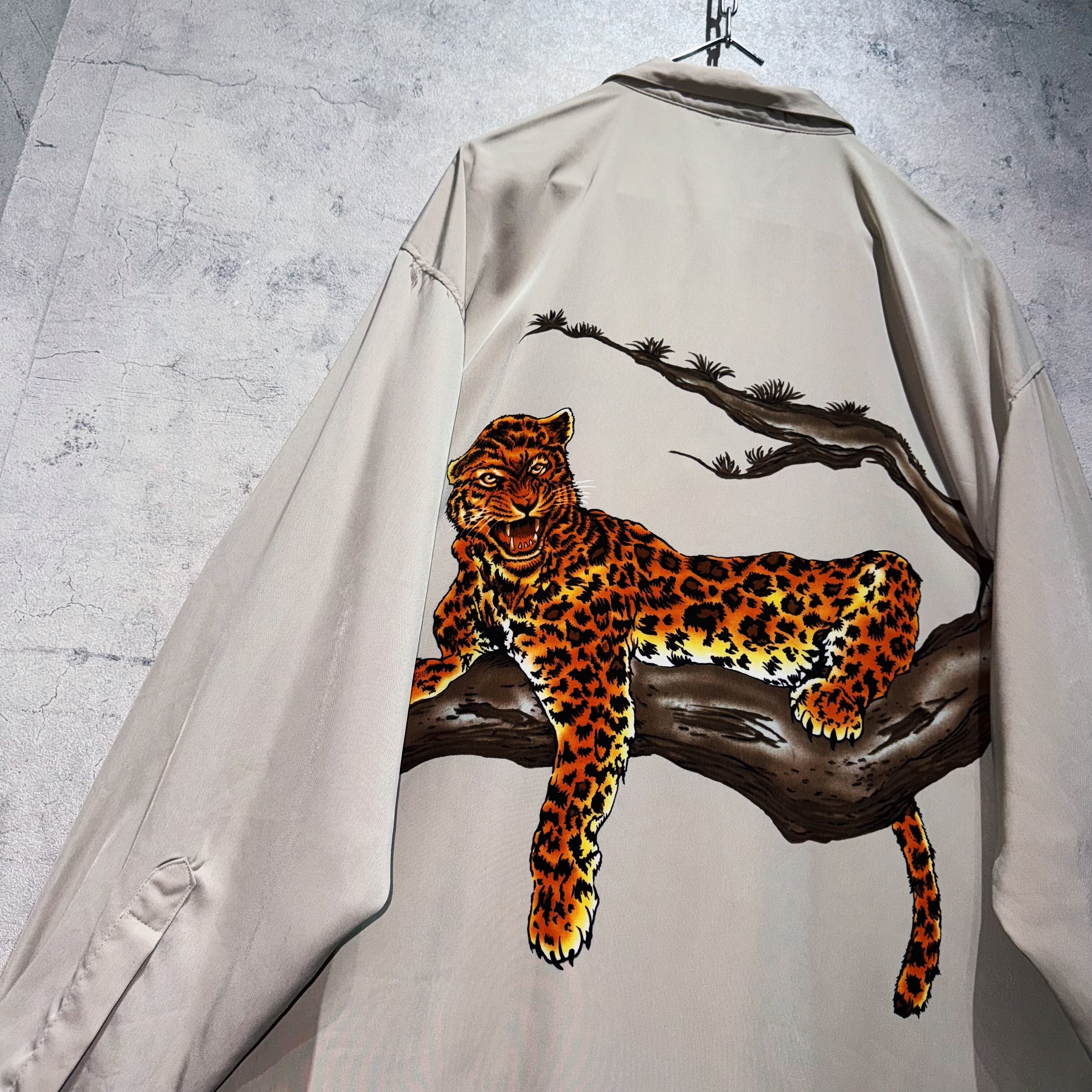 ベーシックなベージュカラーのボディに「和」のタッチで両面に、豹を描いた力強いデザインシャツ。豹柄のシャツはよく見ますが豹単体は中々見かけないですし、存在感があっていいですね。