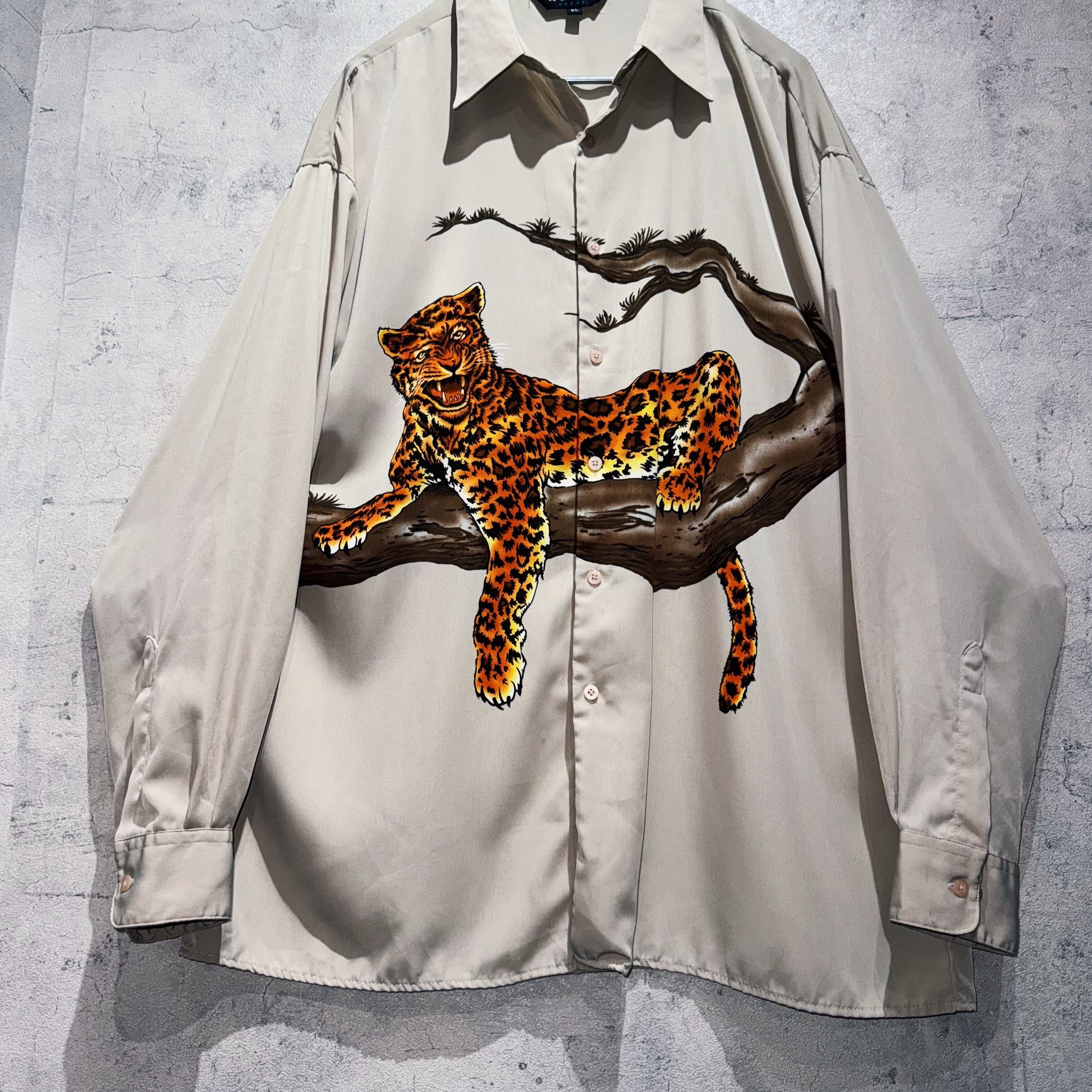 ヴィンテージレオパードグラフィックデザインルーズシャツ