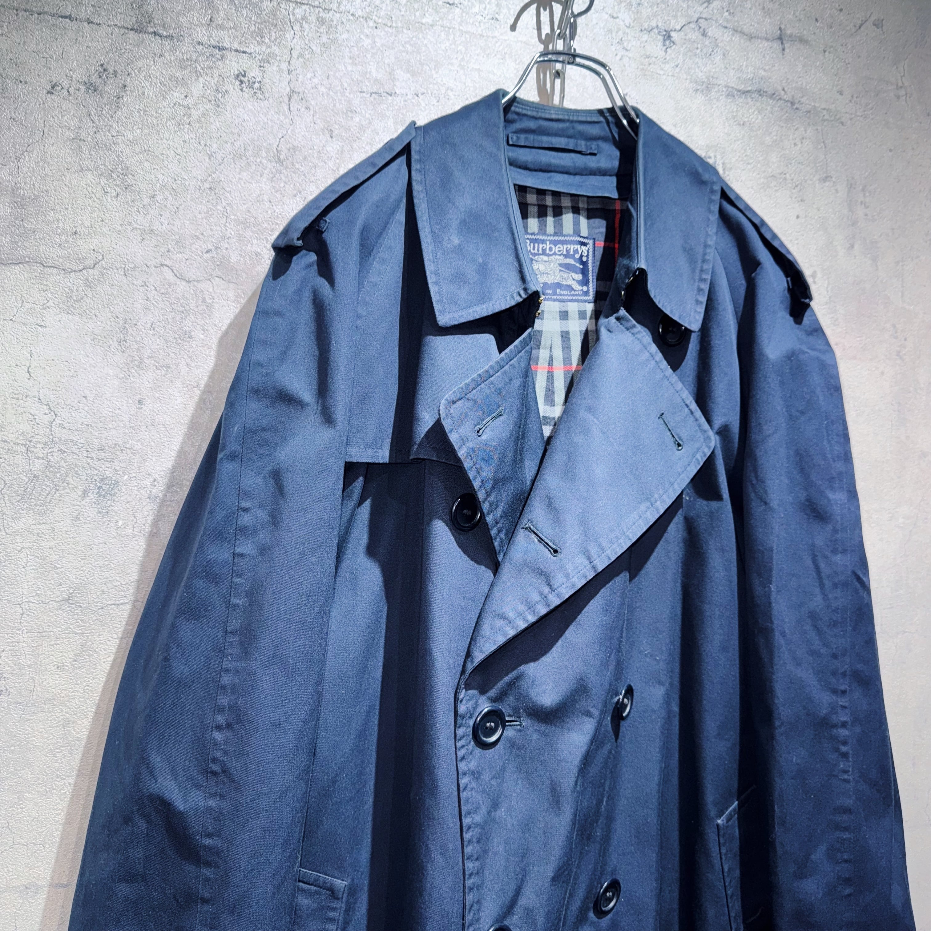 90年代”バーバリー”ギャバジンチェックパターンライニングデザインロングトレンチコート