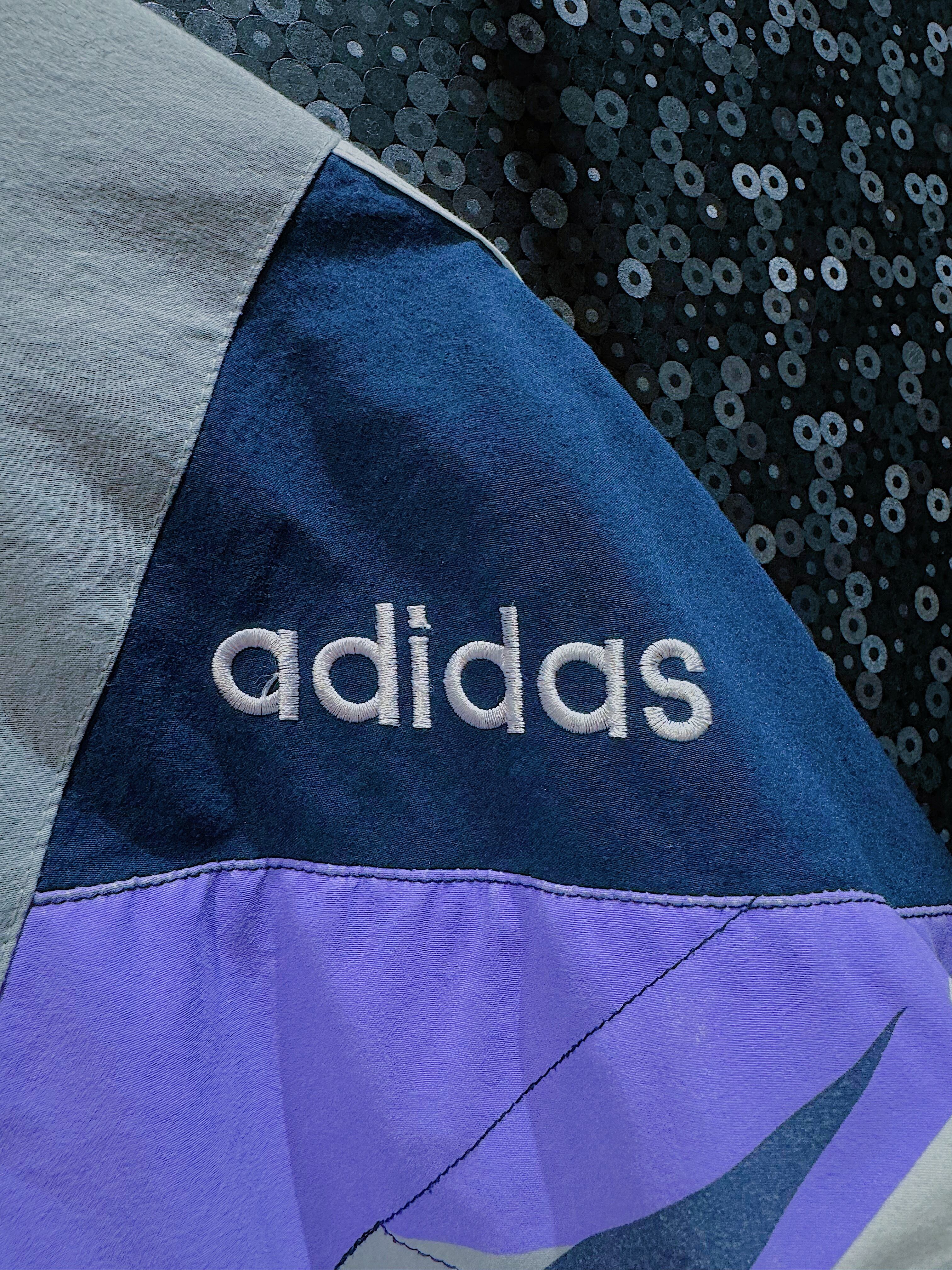 このadidasのジャケットは、90年代に見られるクラシックなスポーツウェアのデザインを特徴としています。