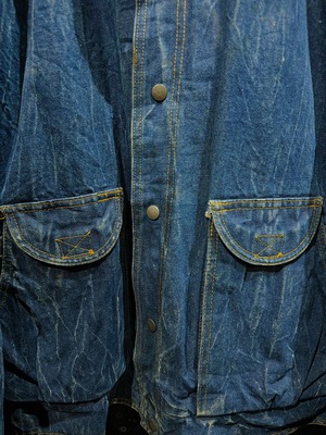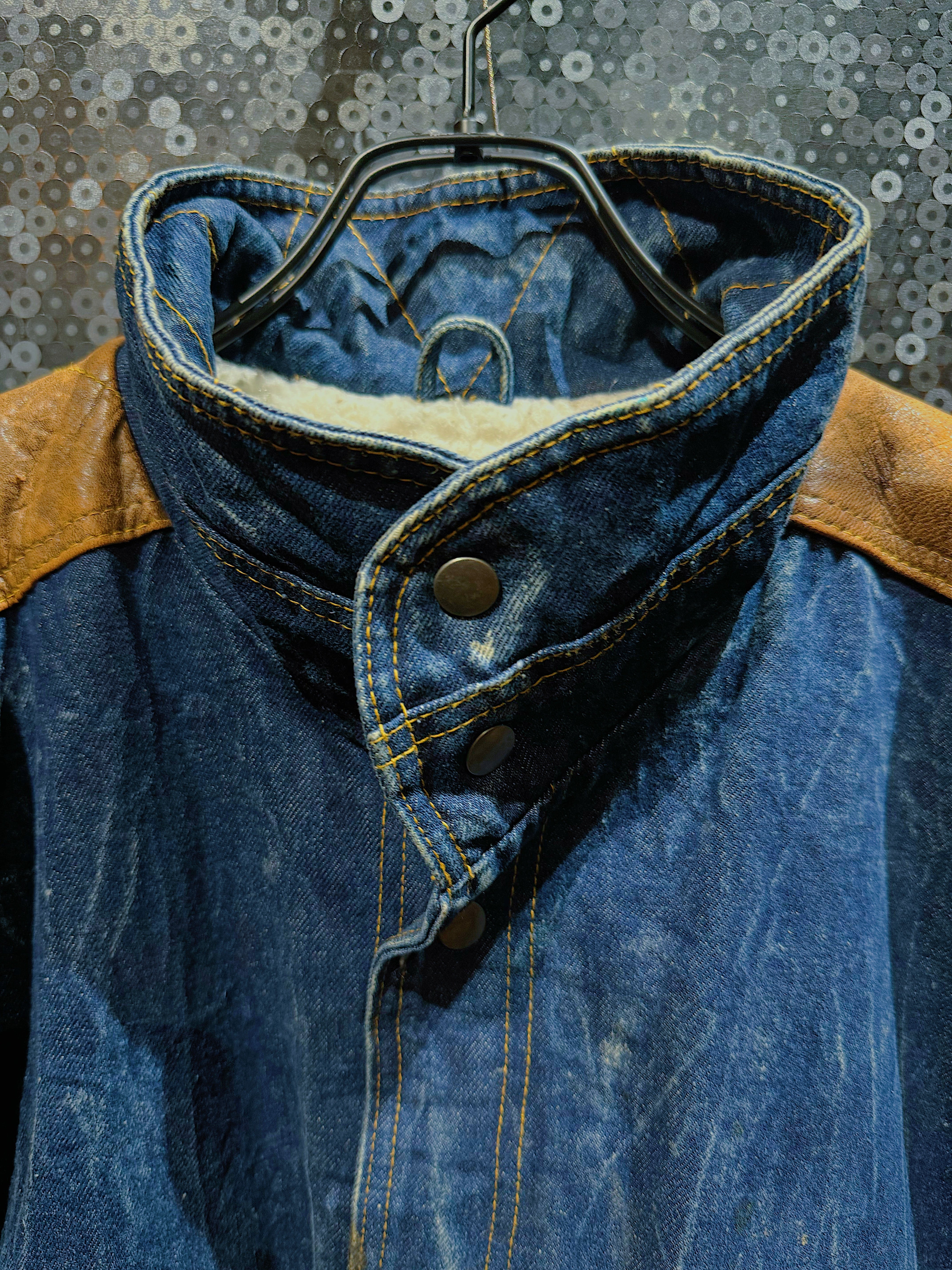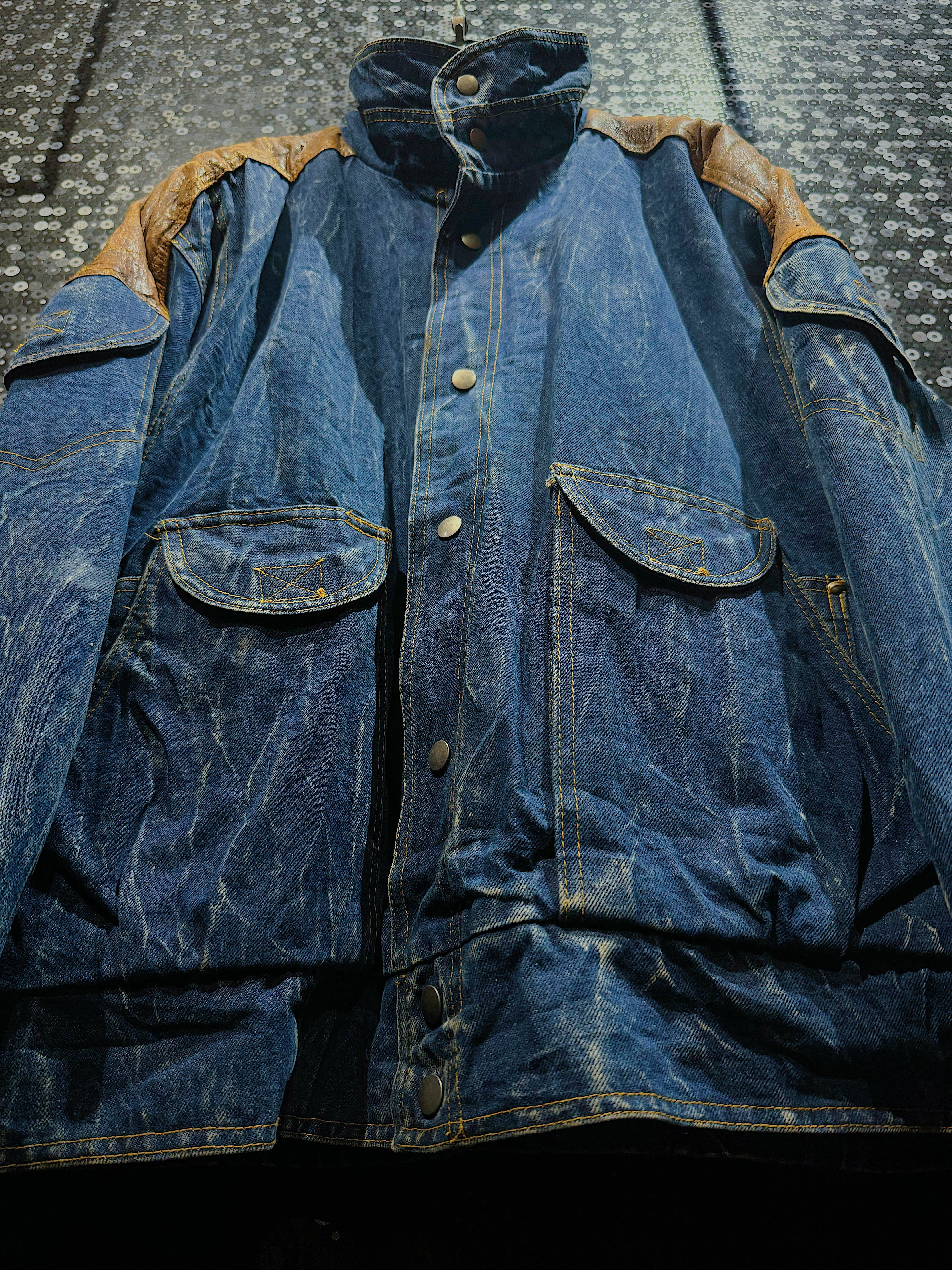 デニムとレザーを組み合わせたヘビーデューティなデザインが特徴的なヴィンテージアイテムです。