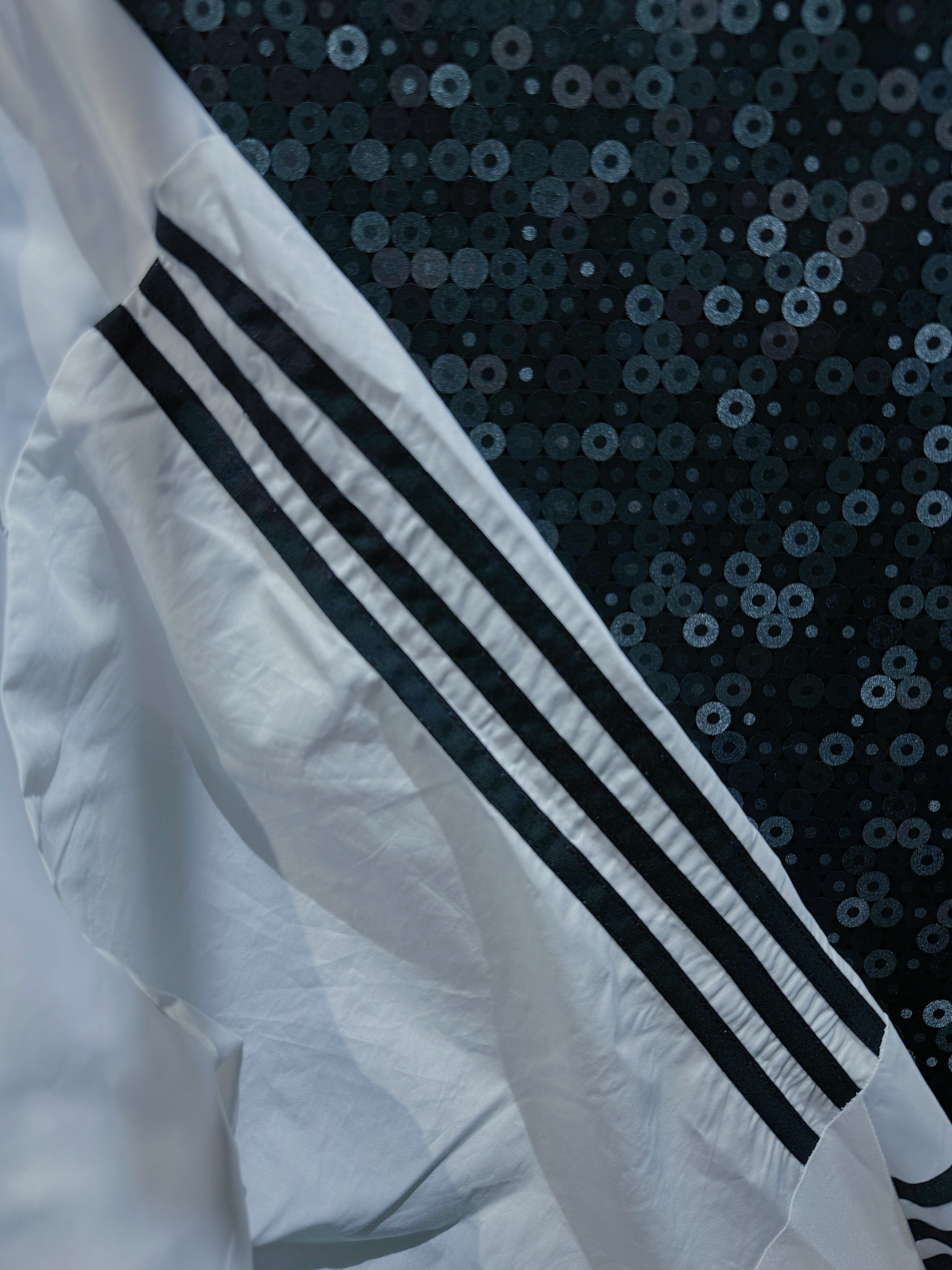 他数のトラックジャケットをパッチワークでデザインを施しており、全てバラバラで圧巻の存在感。無数のトラックジャケットで中には名チームや企業などのチームウェアも存在している個体もあります。