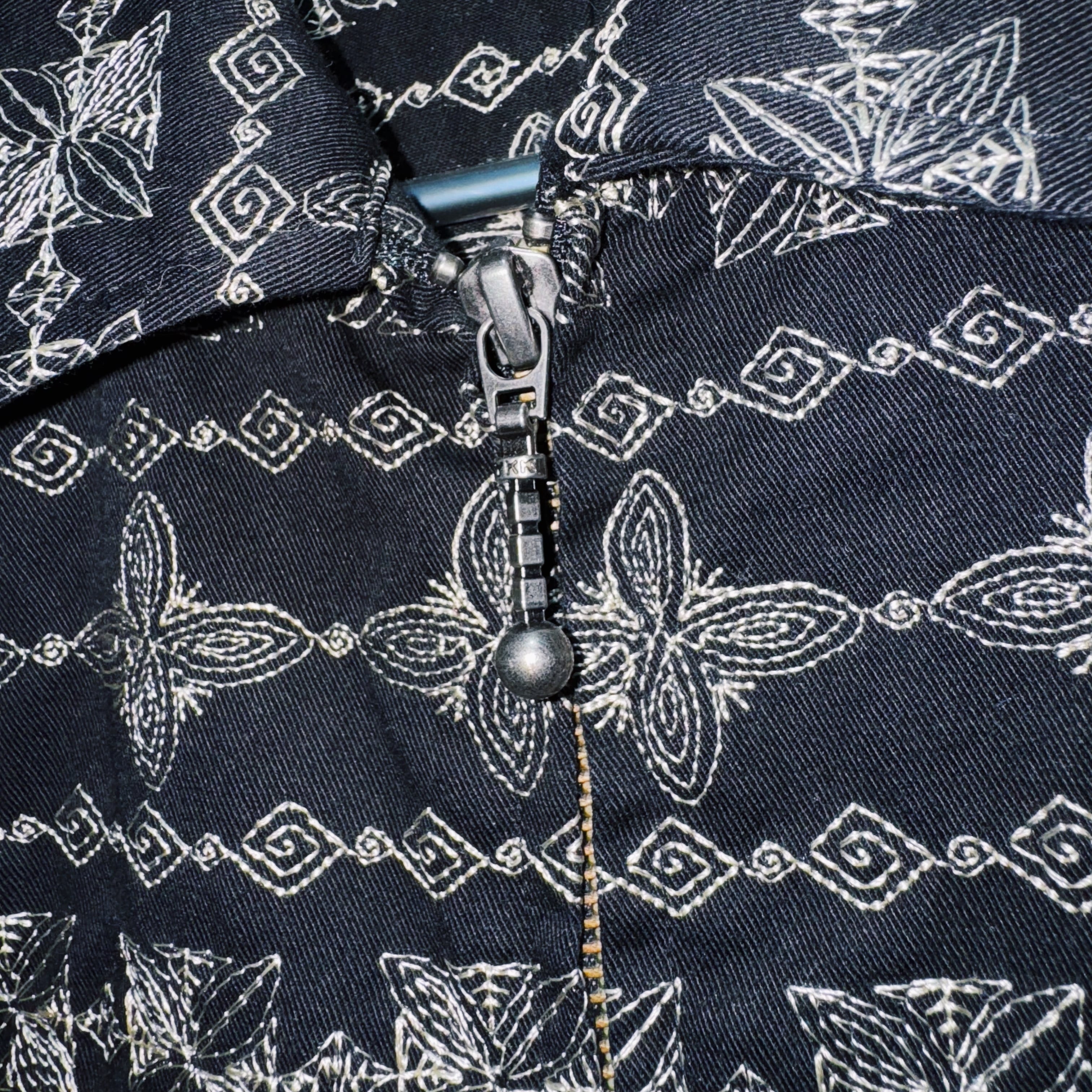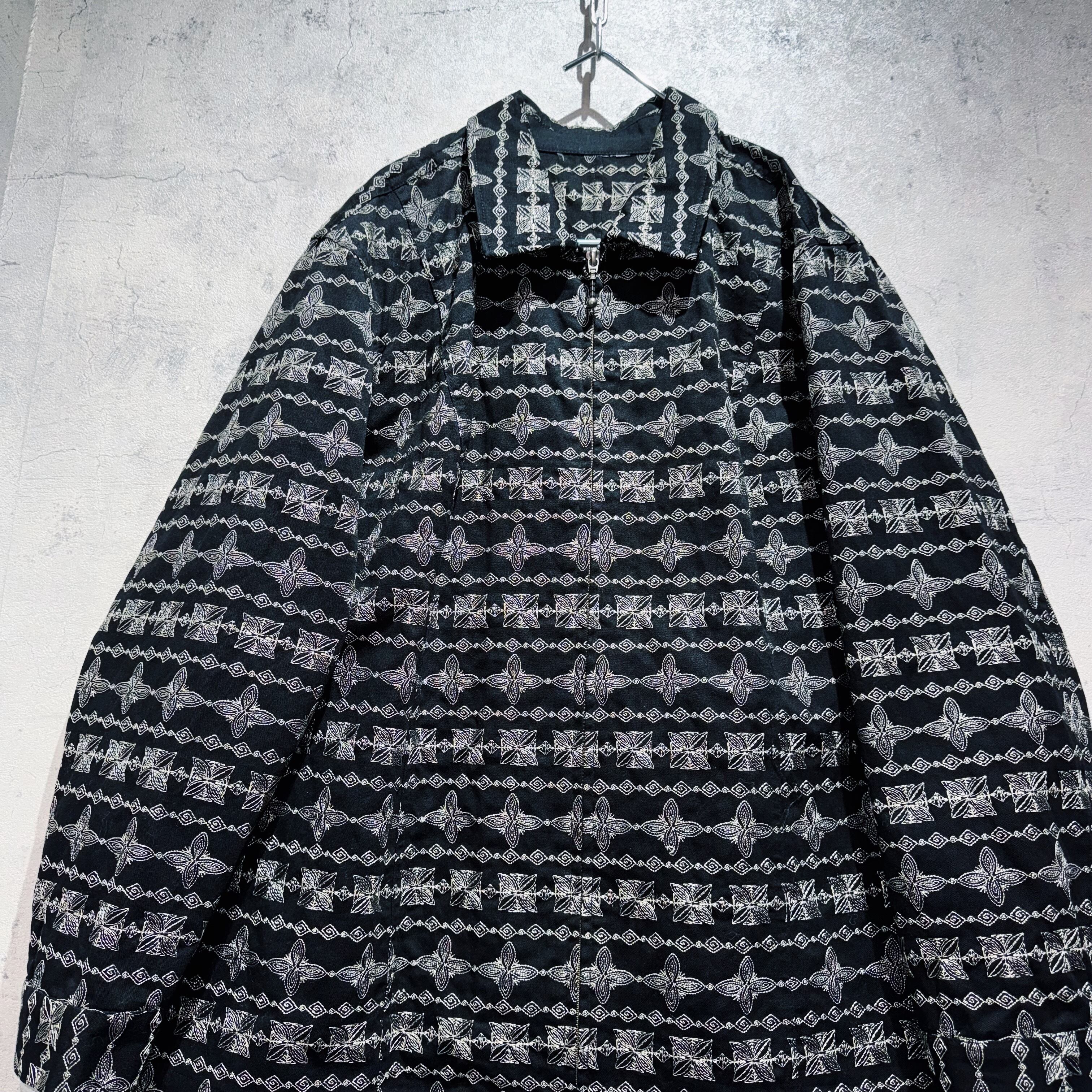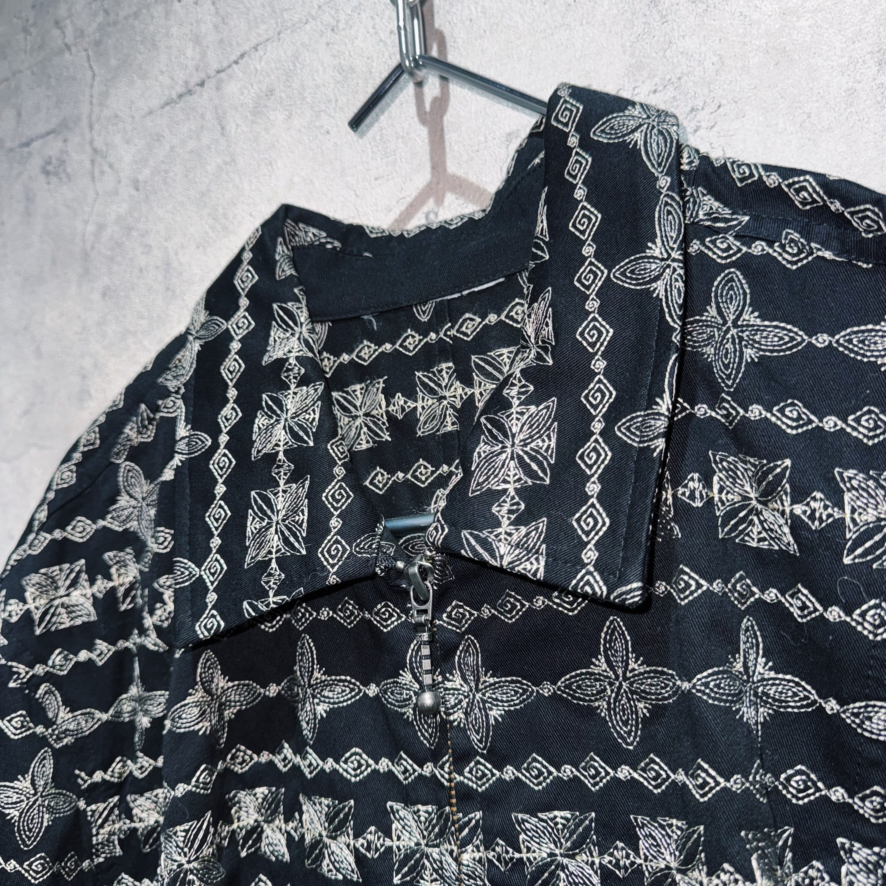 ヴィンテージエスニックパターンエンブロイダリーデザインボールジップアップジャケット