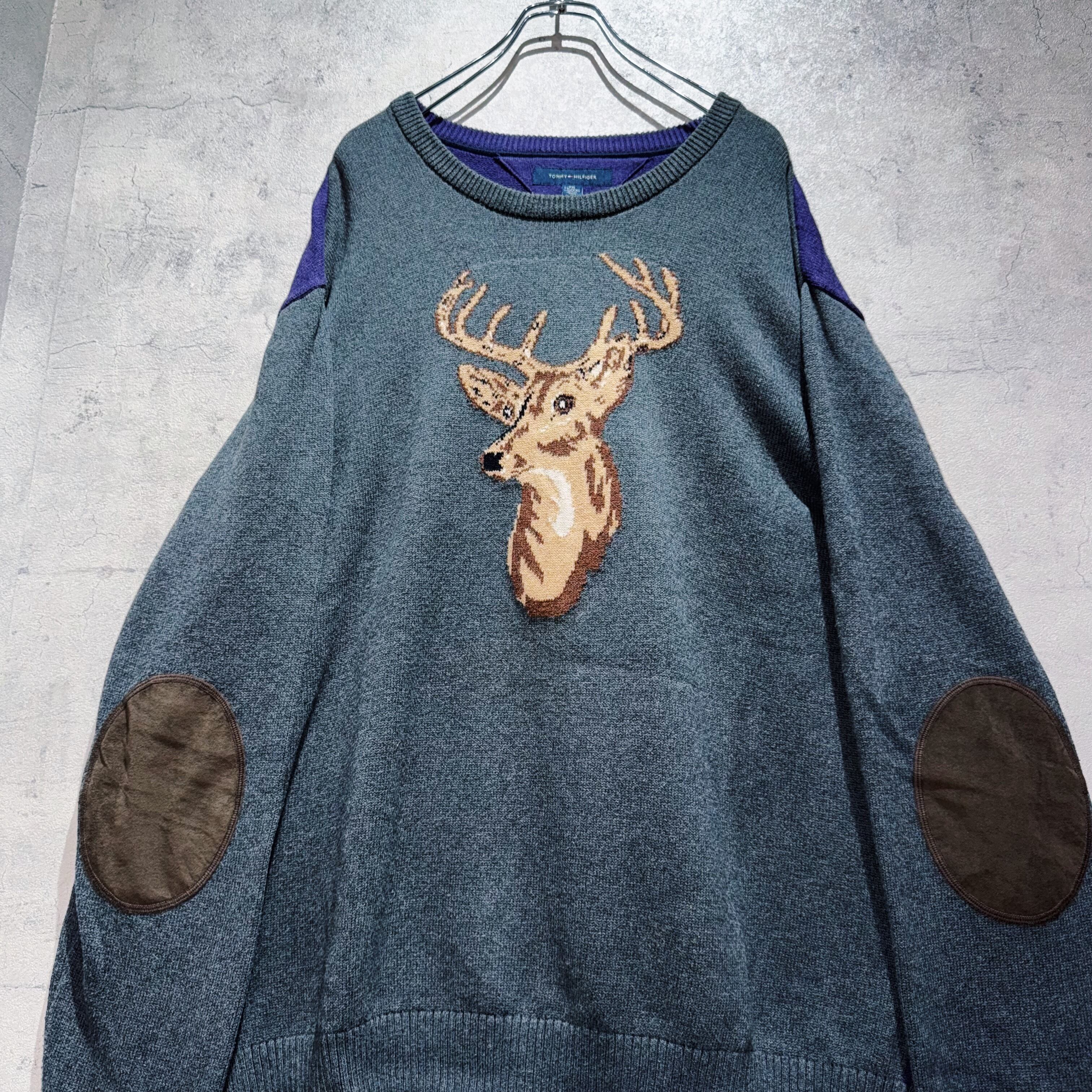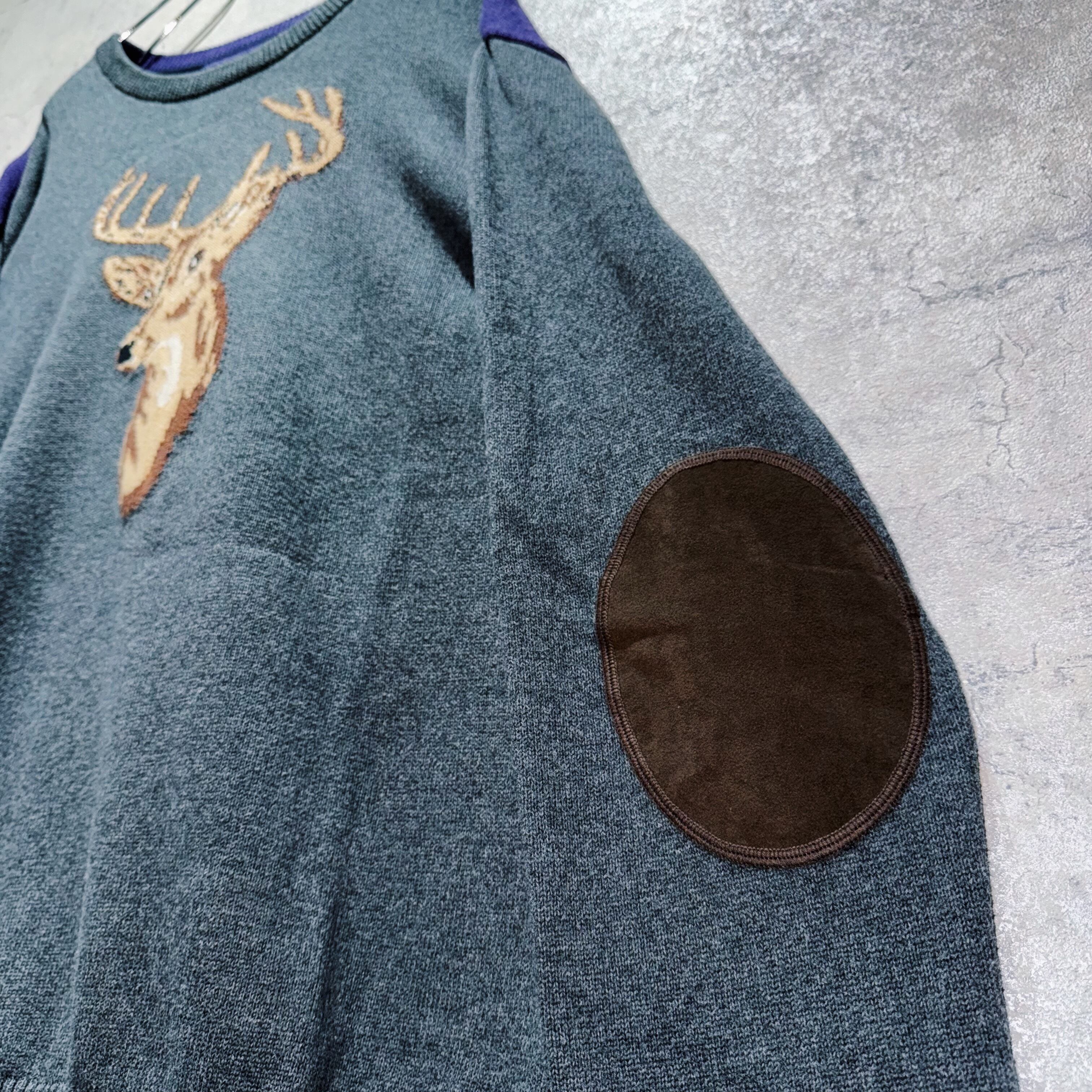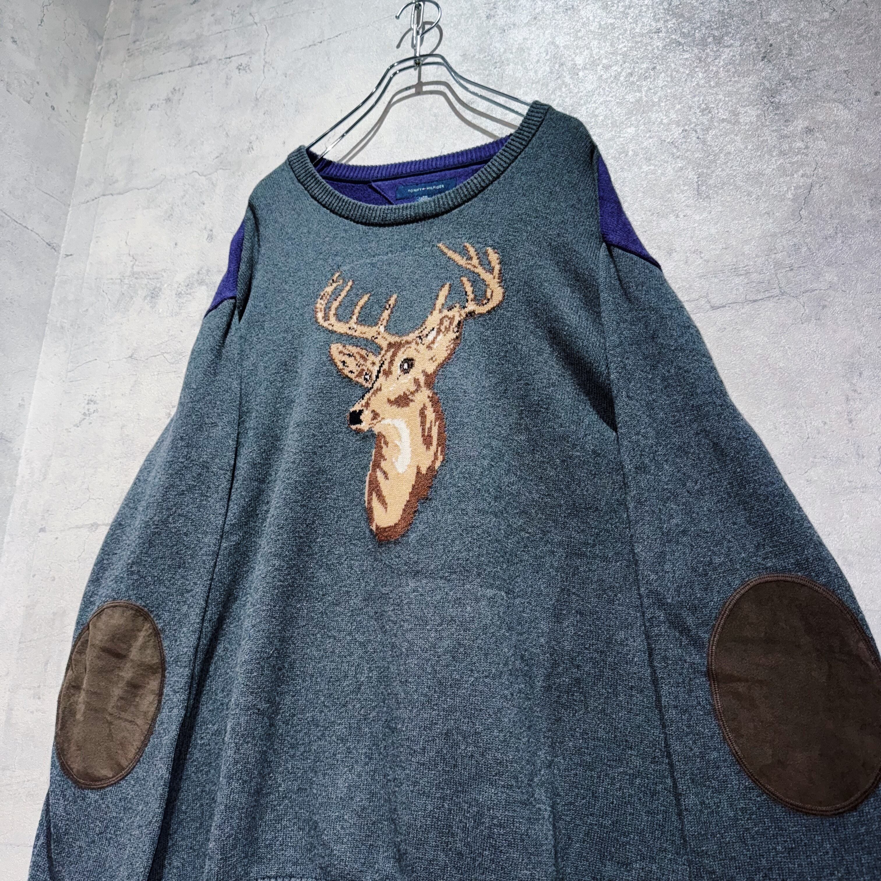 "TOMMY HILFIGER”deer design elbow patch pullover knit
