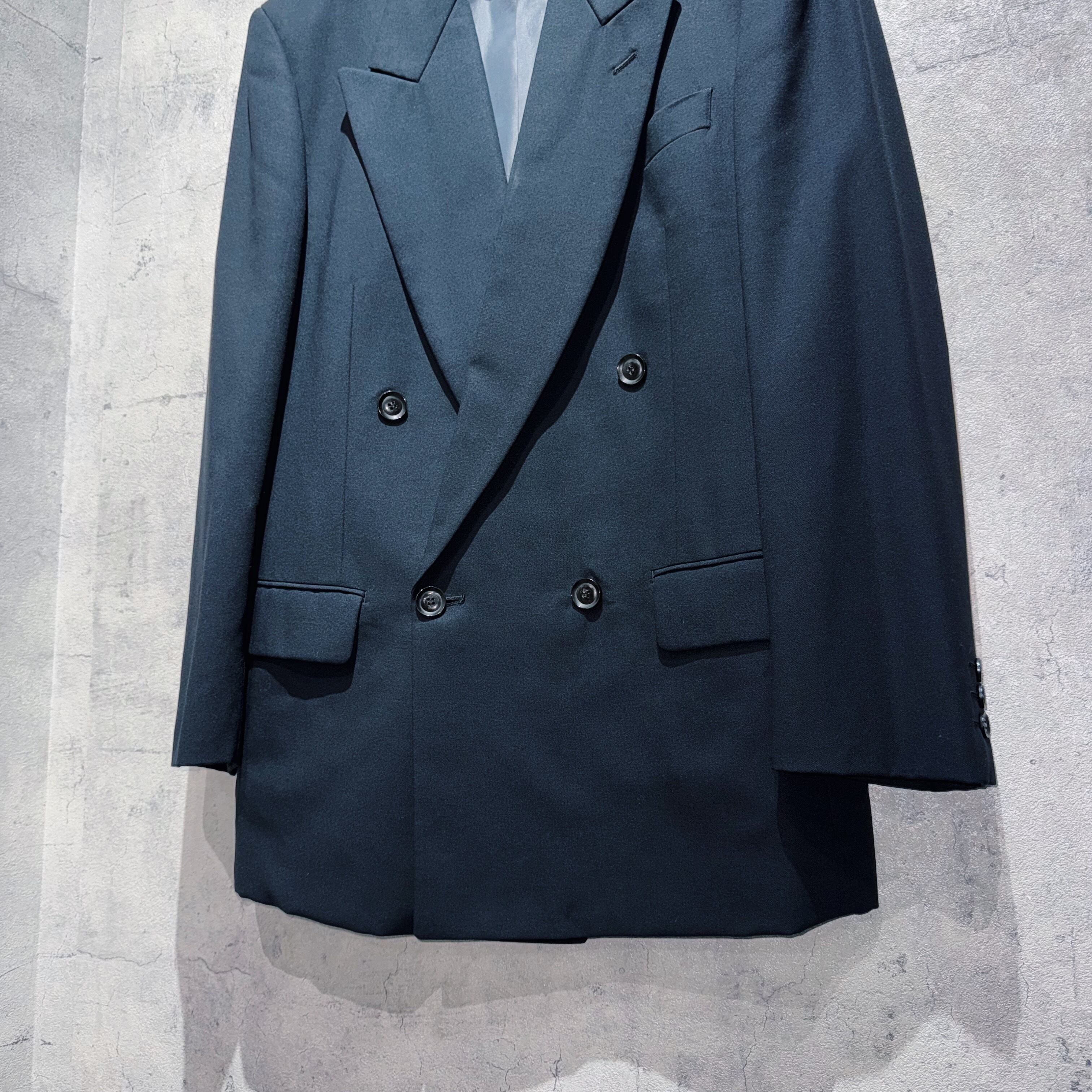 存在感のある丸みを帯びた幅の広いピークドラペル加えパワーショルダーは90年代らしいクラシックスタイルを演出してくれます。