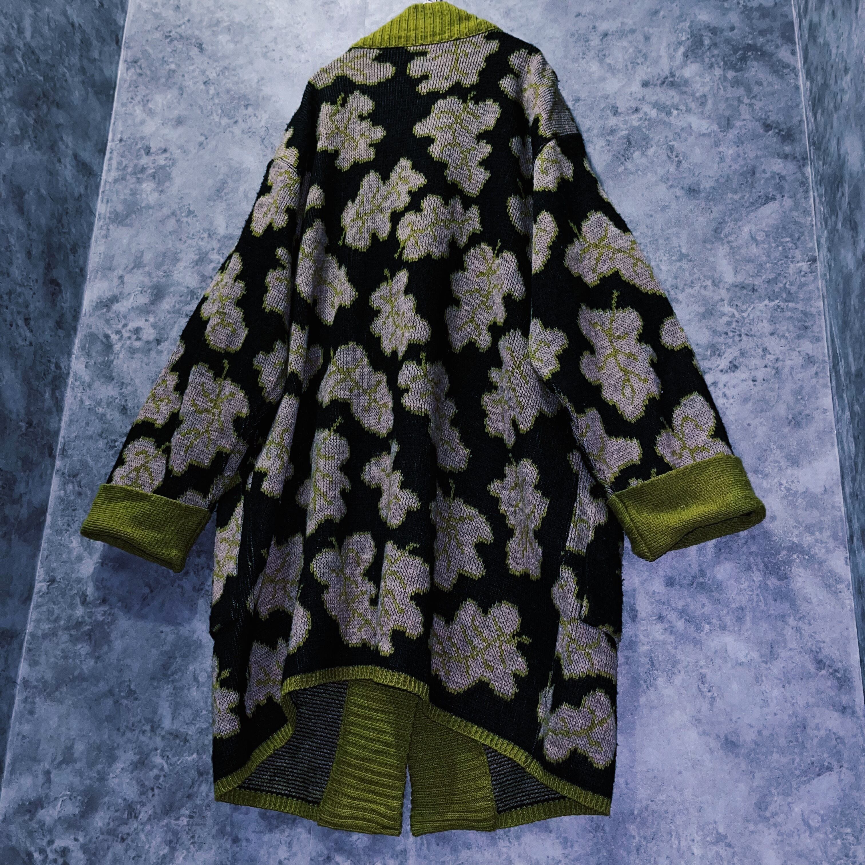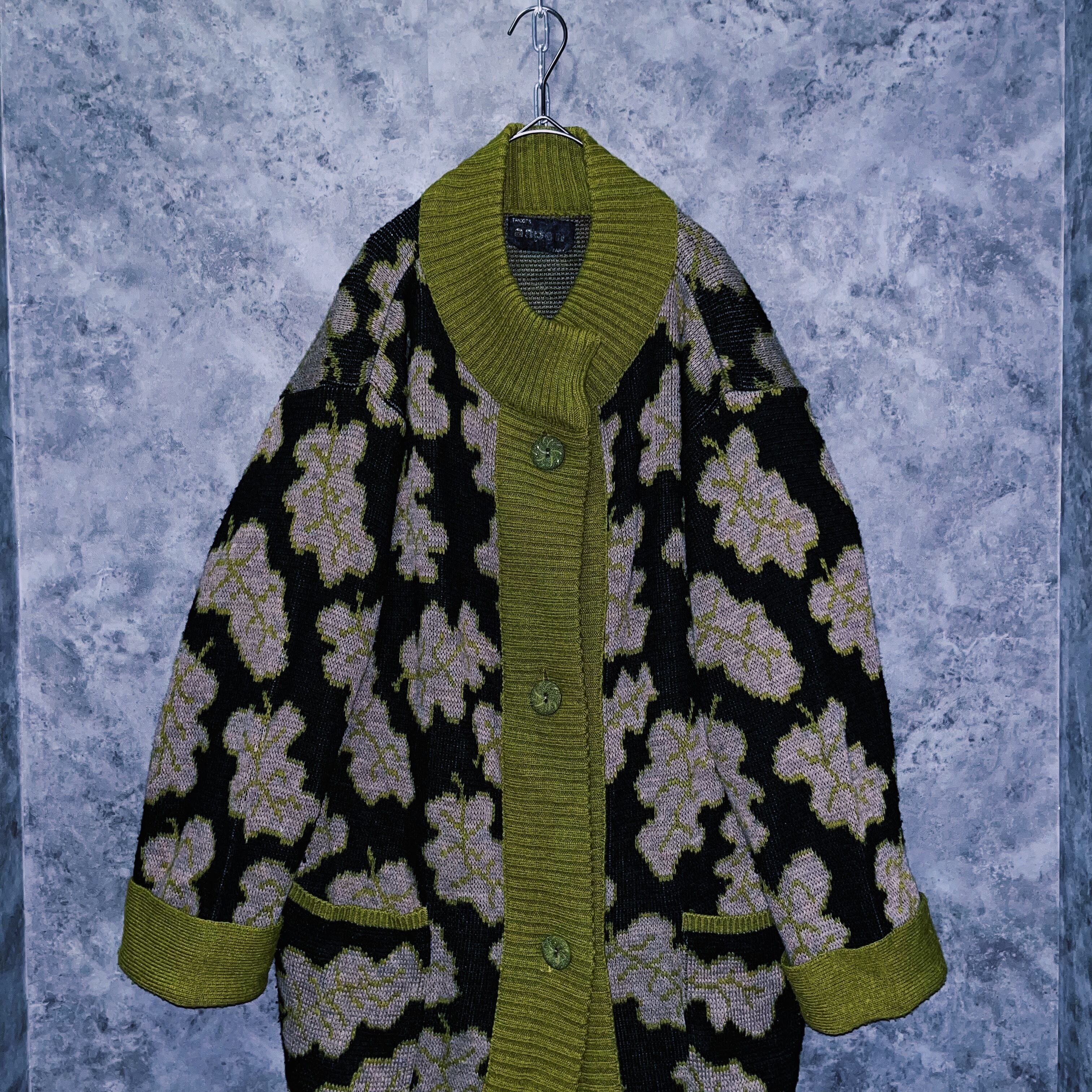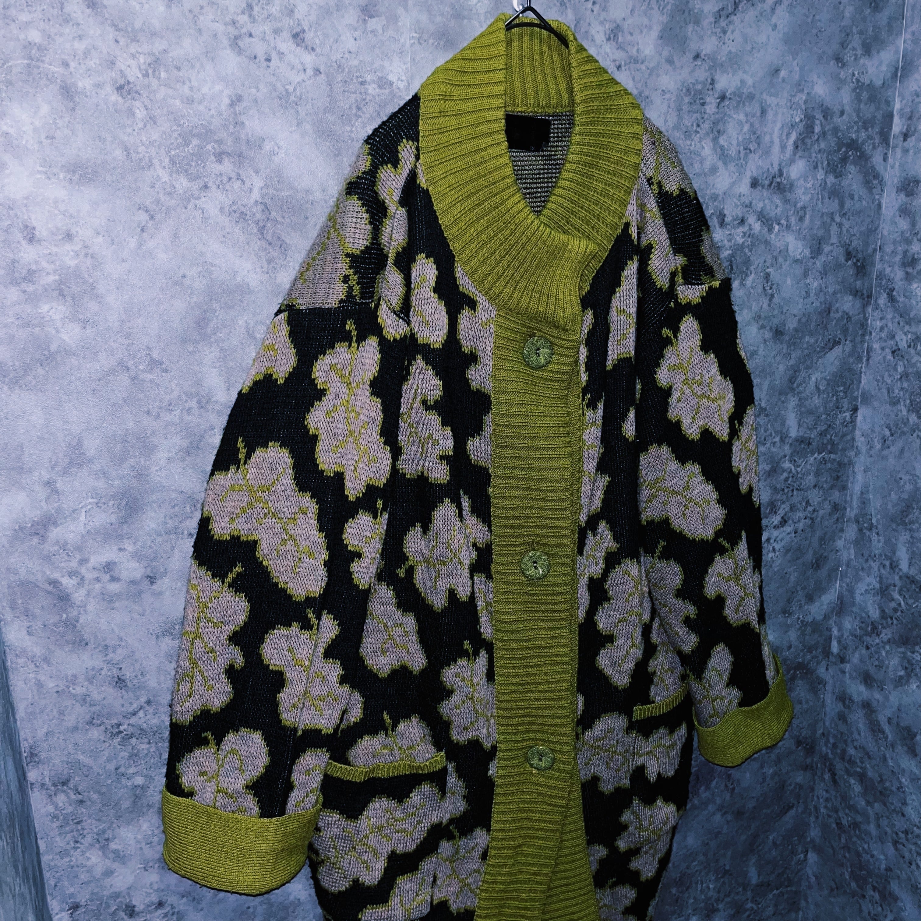 【doppio】Special EURO VINTAGE leaves pattern design long knit cardigan