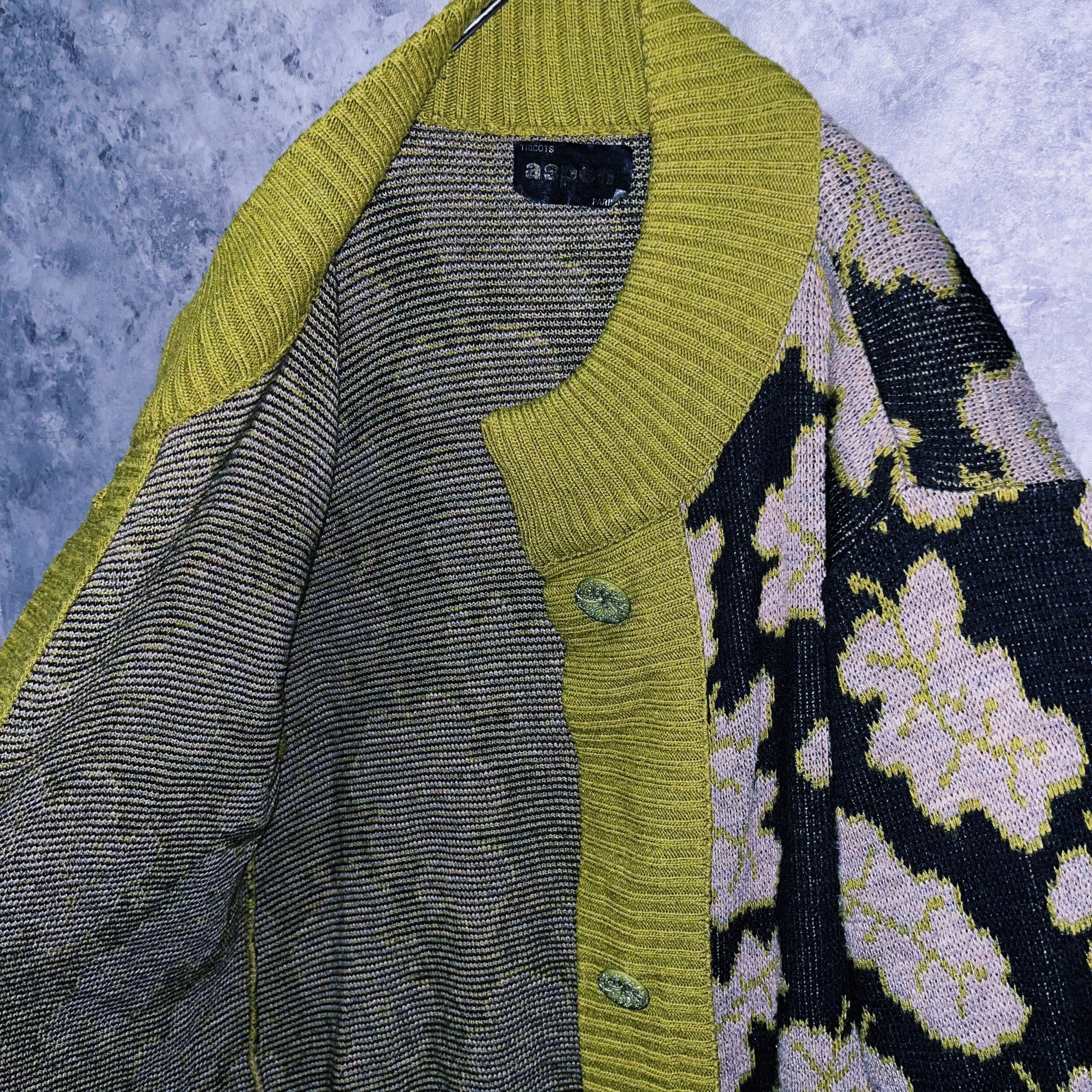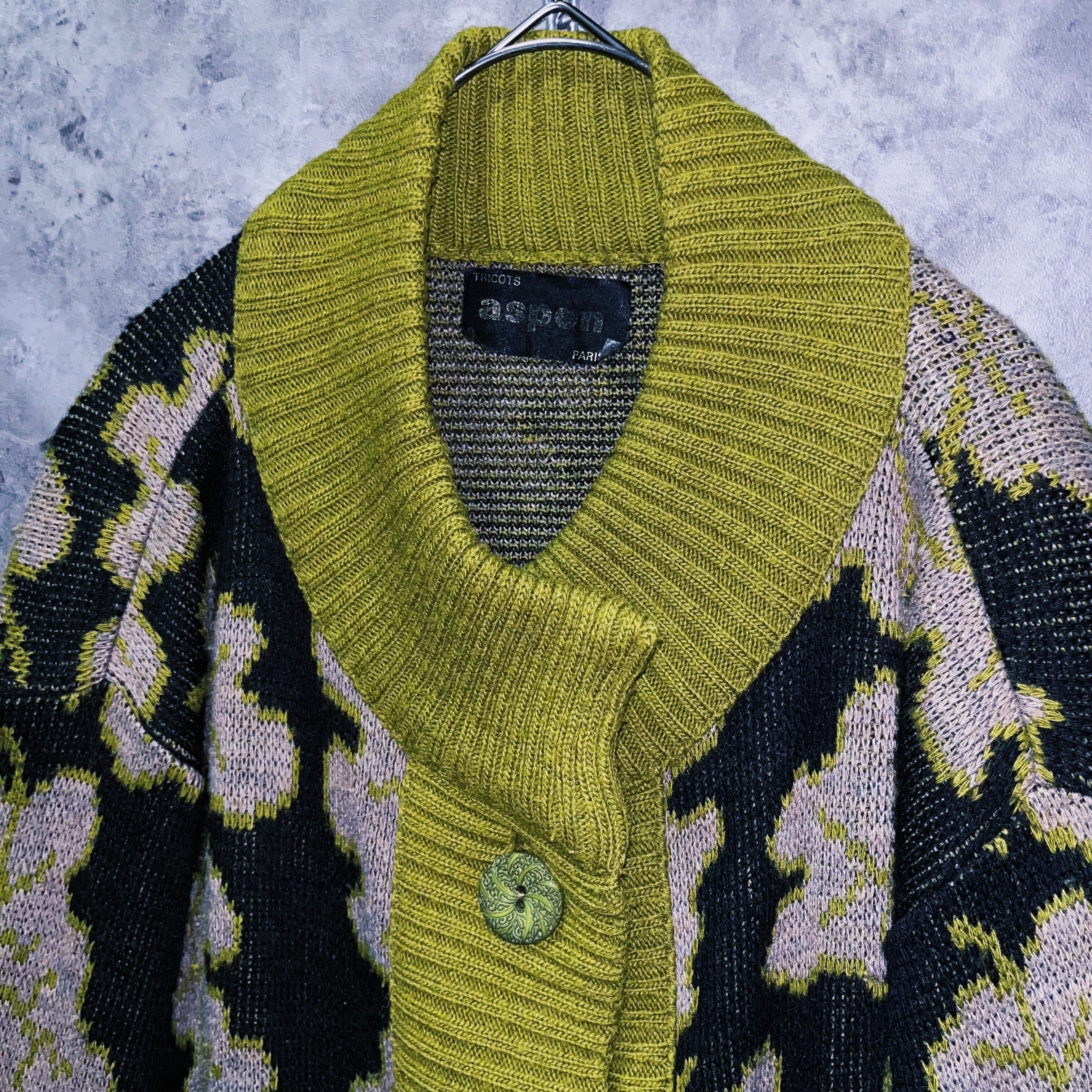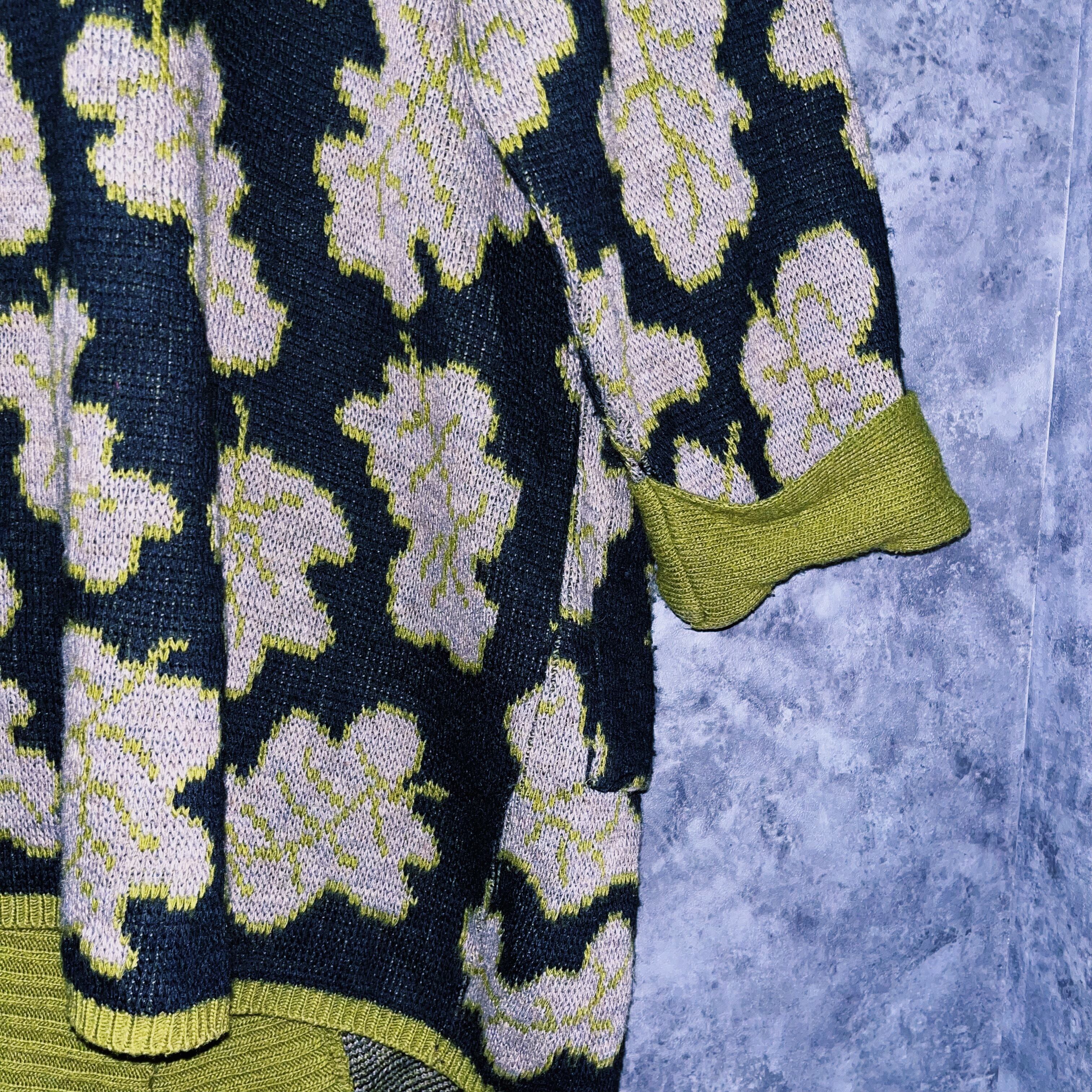 【doppio】Special EURO VINTAGE leaves pattern design long knit cardigan