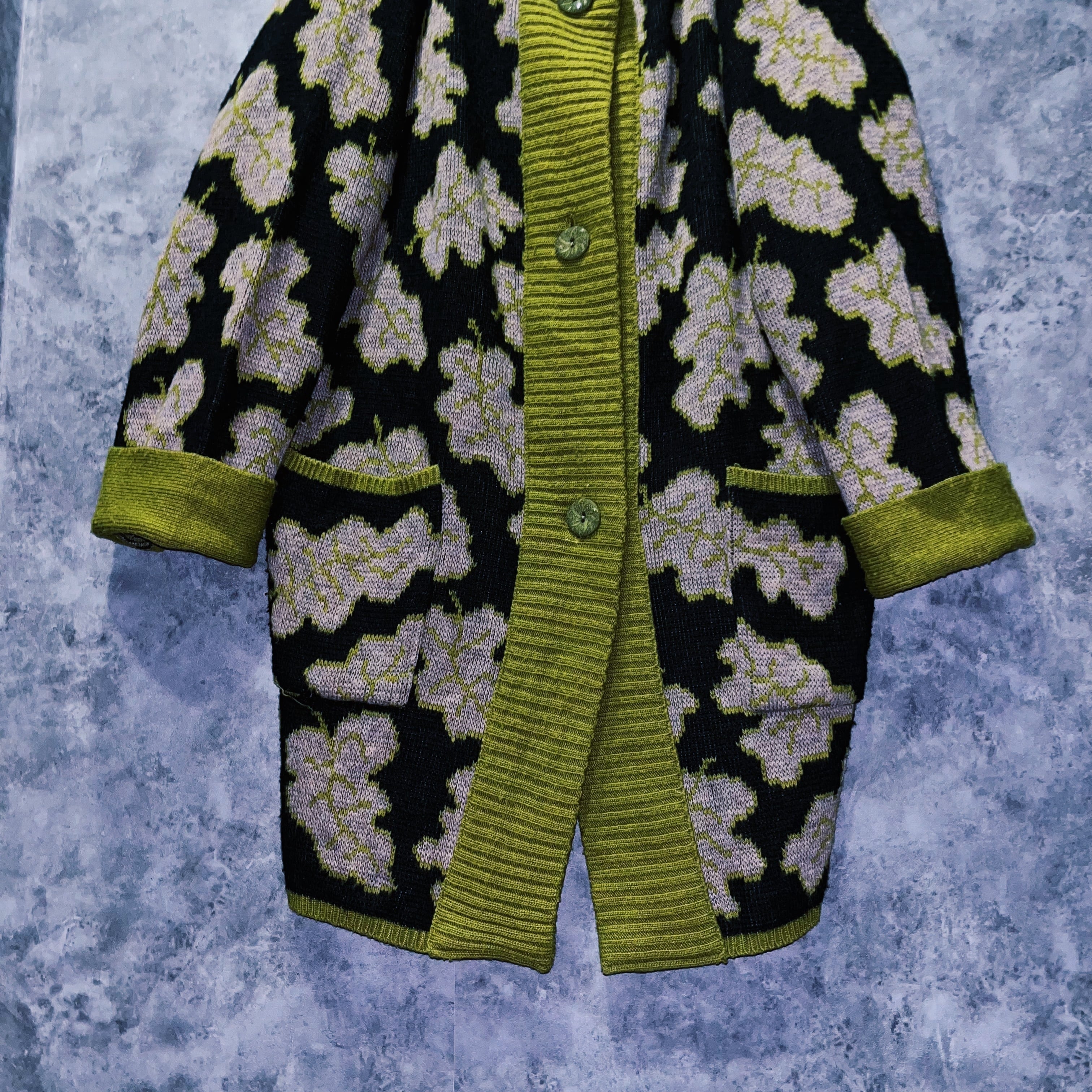 Special EURO VINTAGE leaves pattern design long knit cardigan
