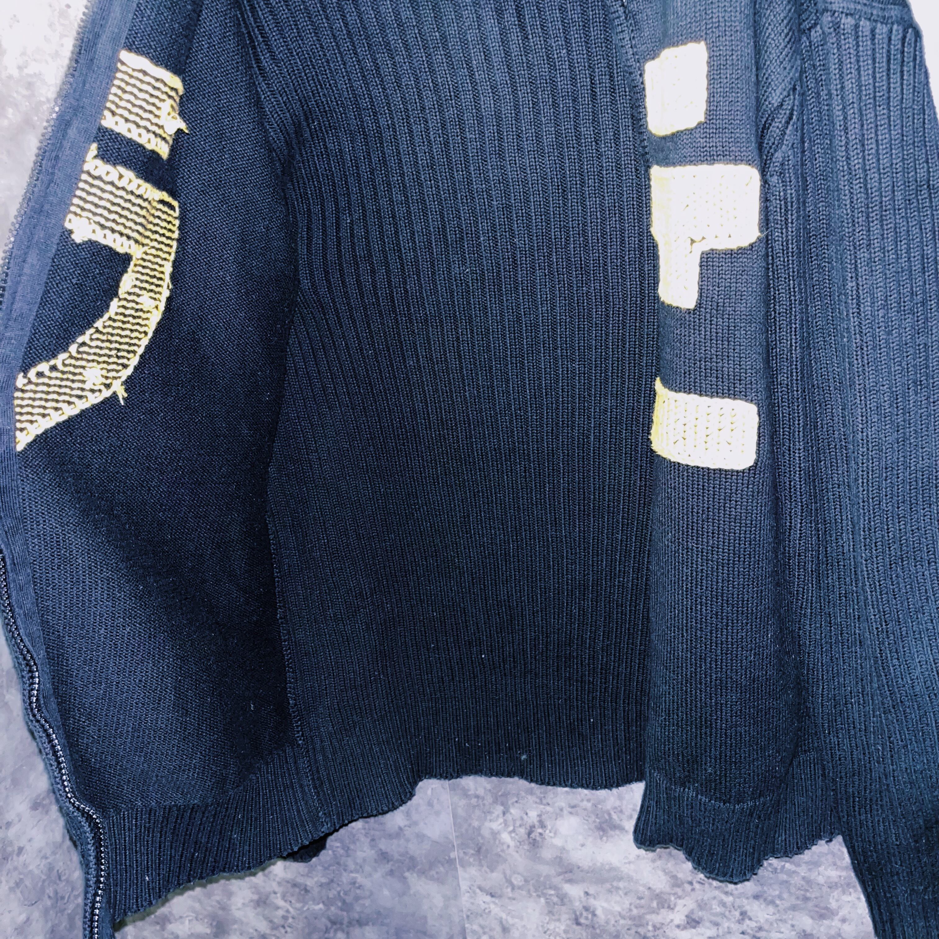 “Special Vintage” yellow color letter-like design zip knit