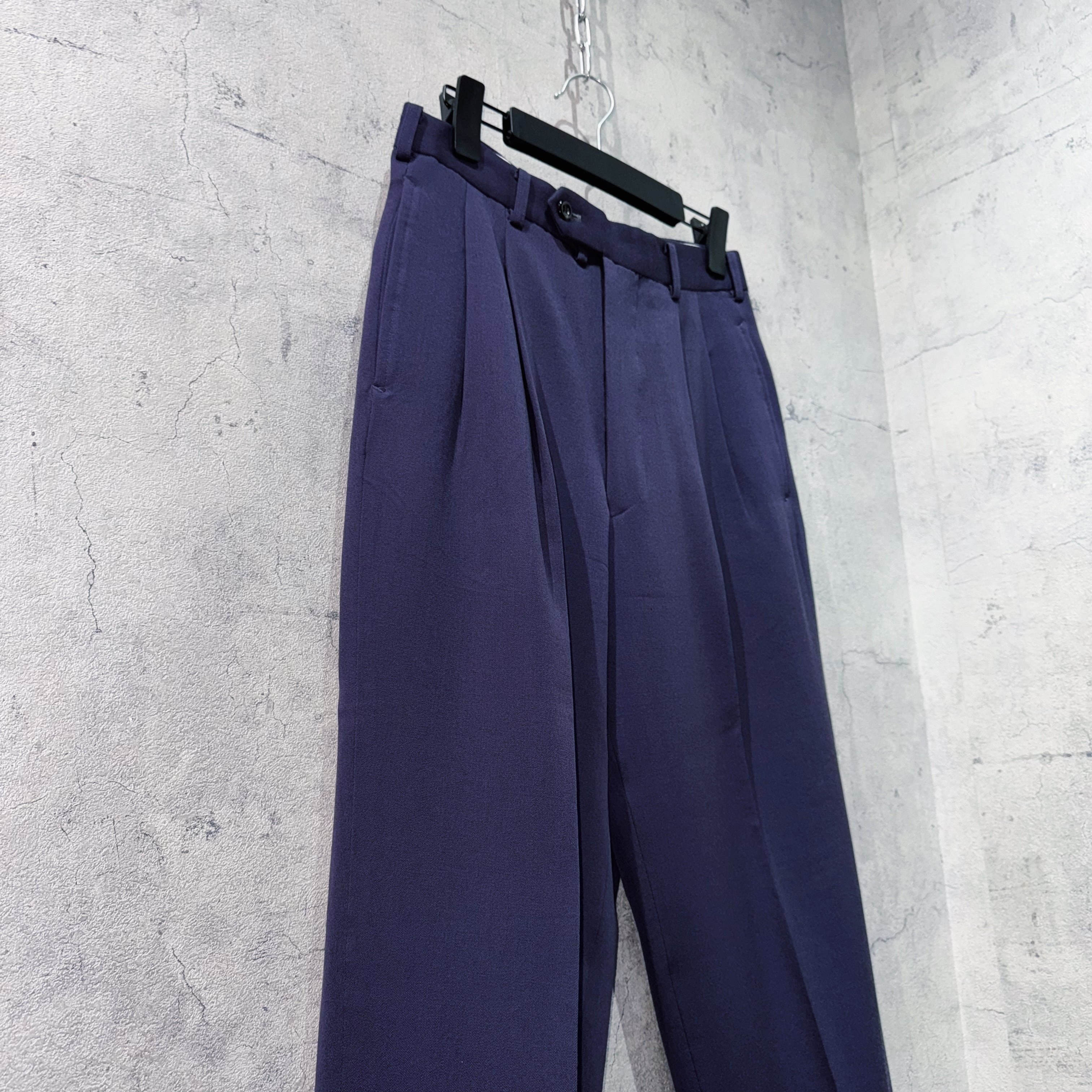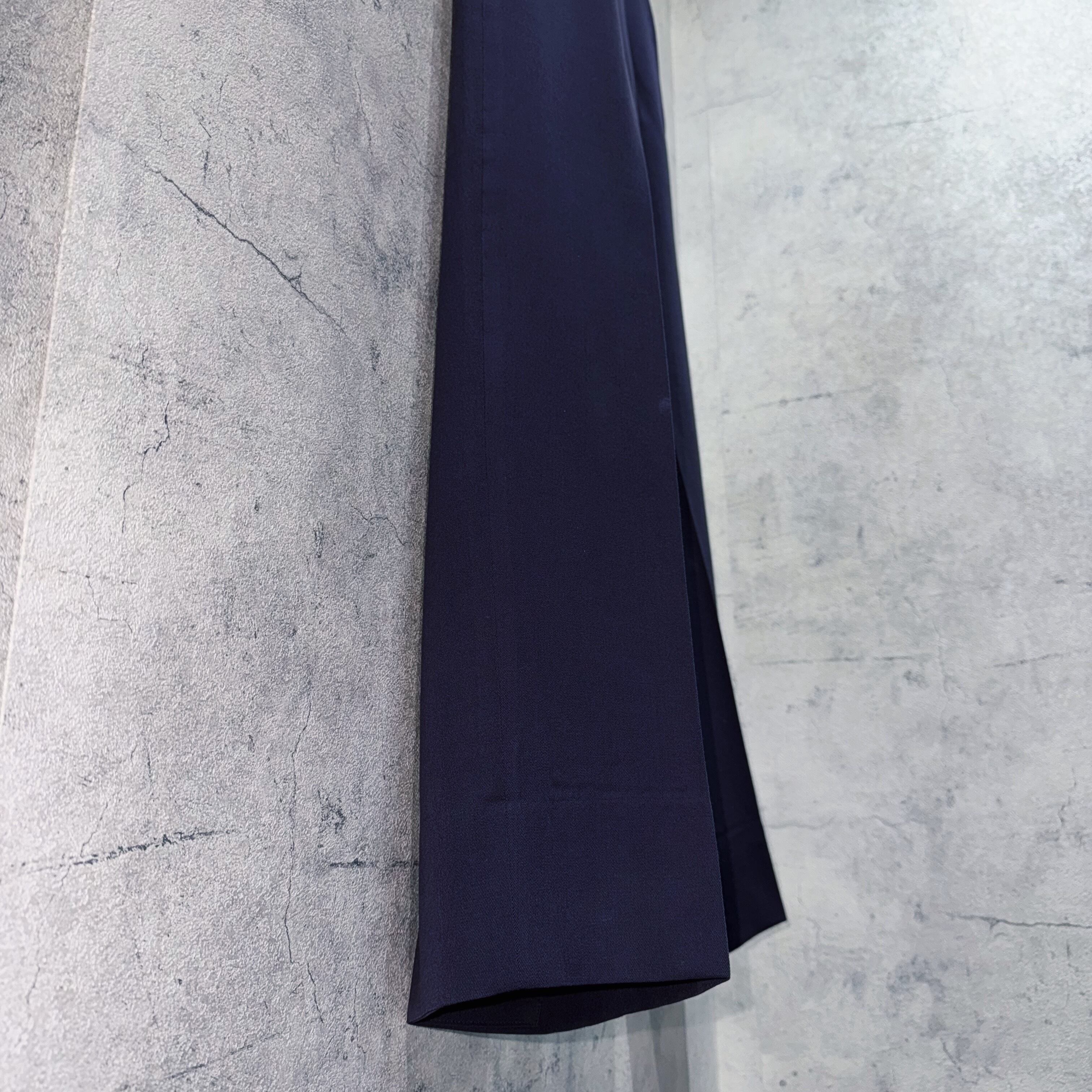 6Bに加え、広めで存在感のあるピークドラペル。パワーショルダーから生まれる立体的なシルエットは力強さを表現してくれます。ンツもセンタープレスをあしらった筒状の美シルエットで単体でも活躍してくれるかと。