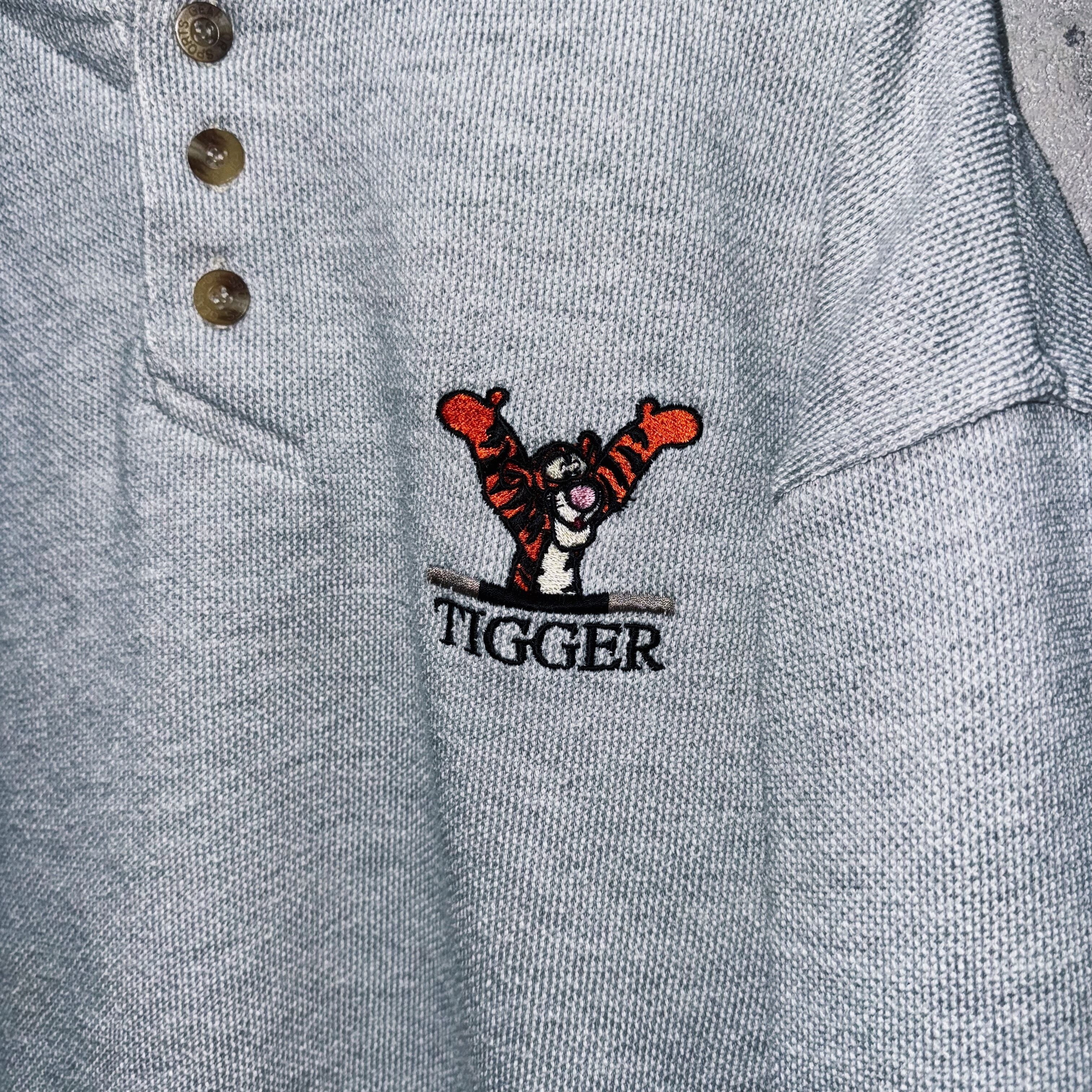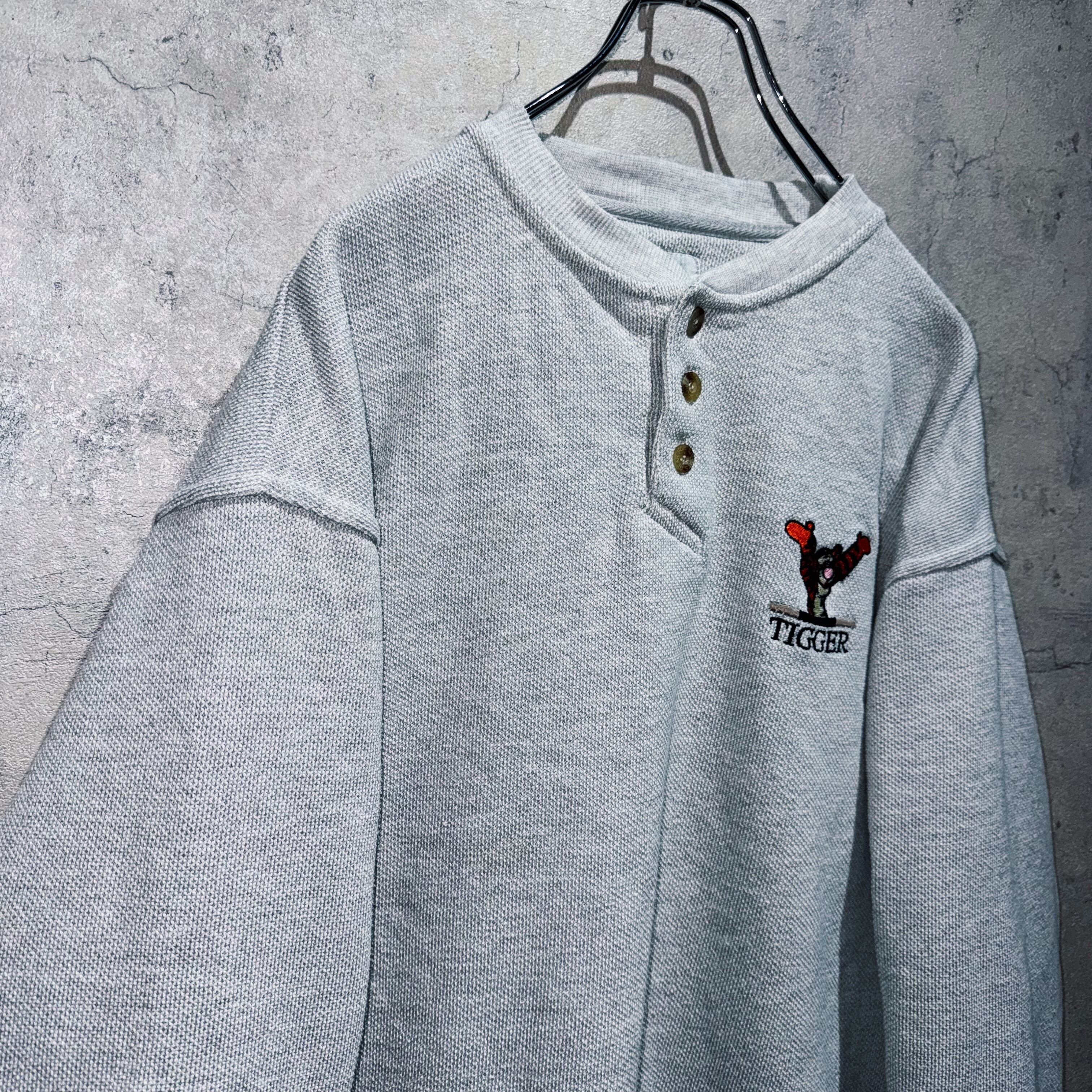 90's"Disney"TIGGER embroidery henry neck thermal sweat set up