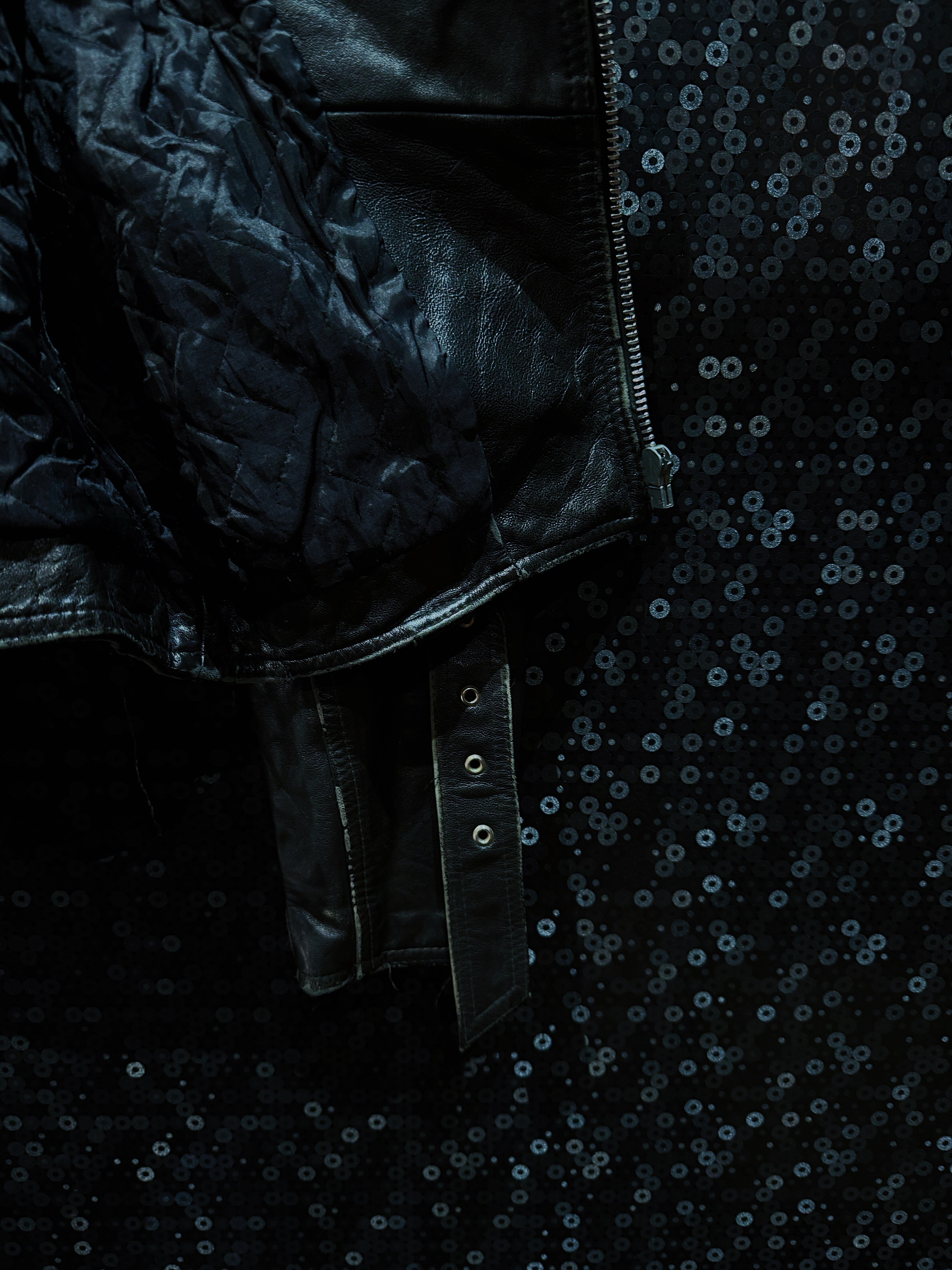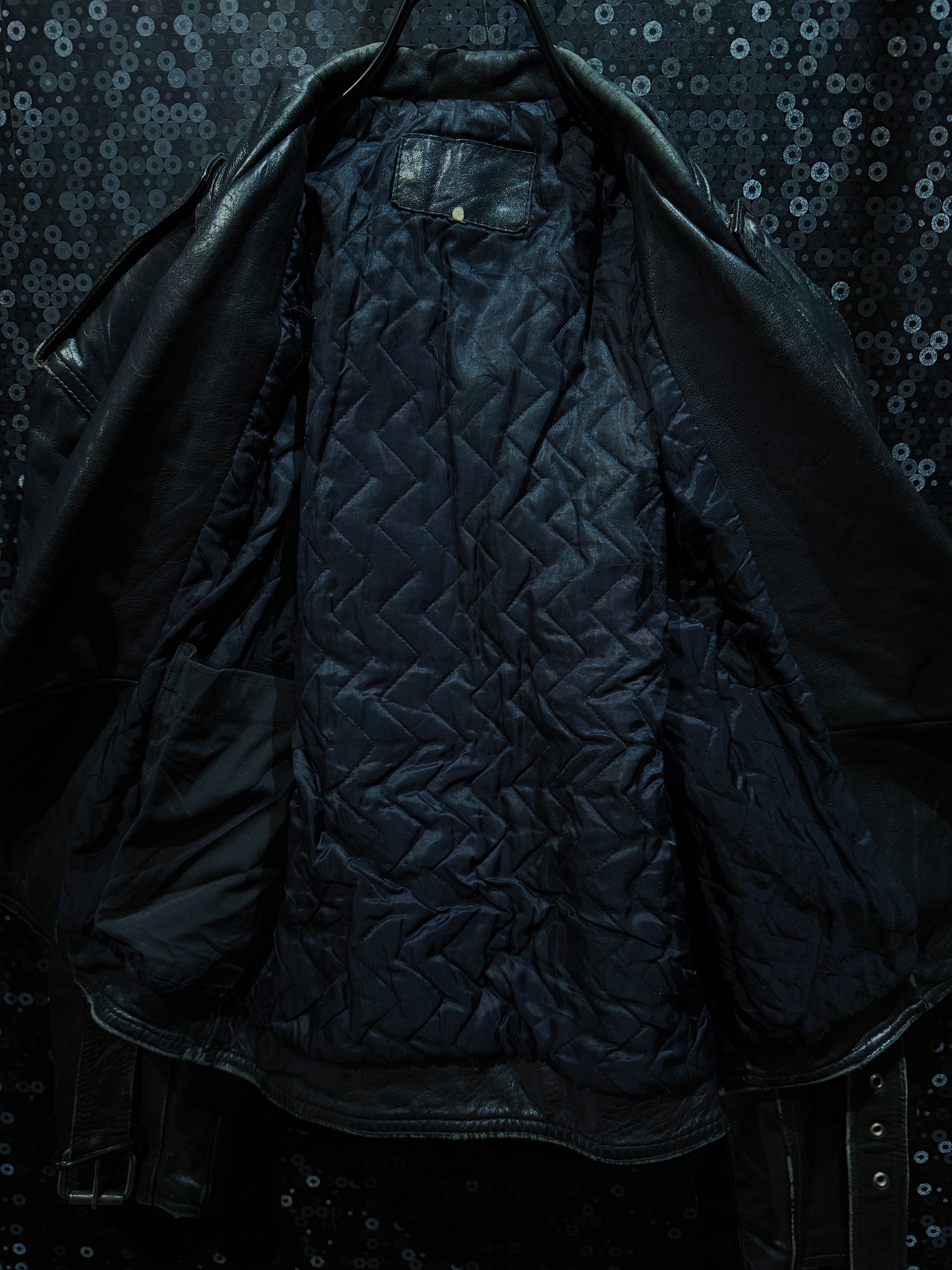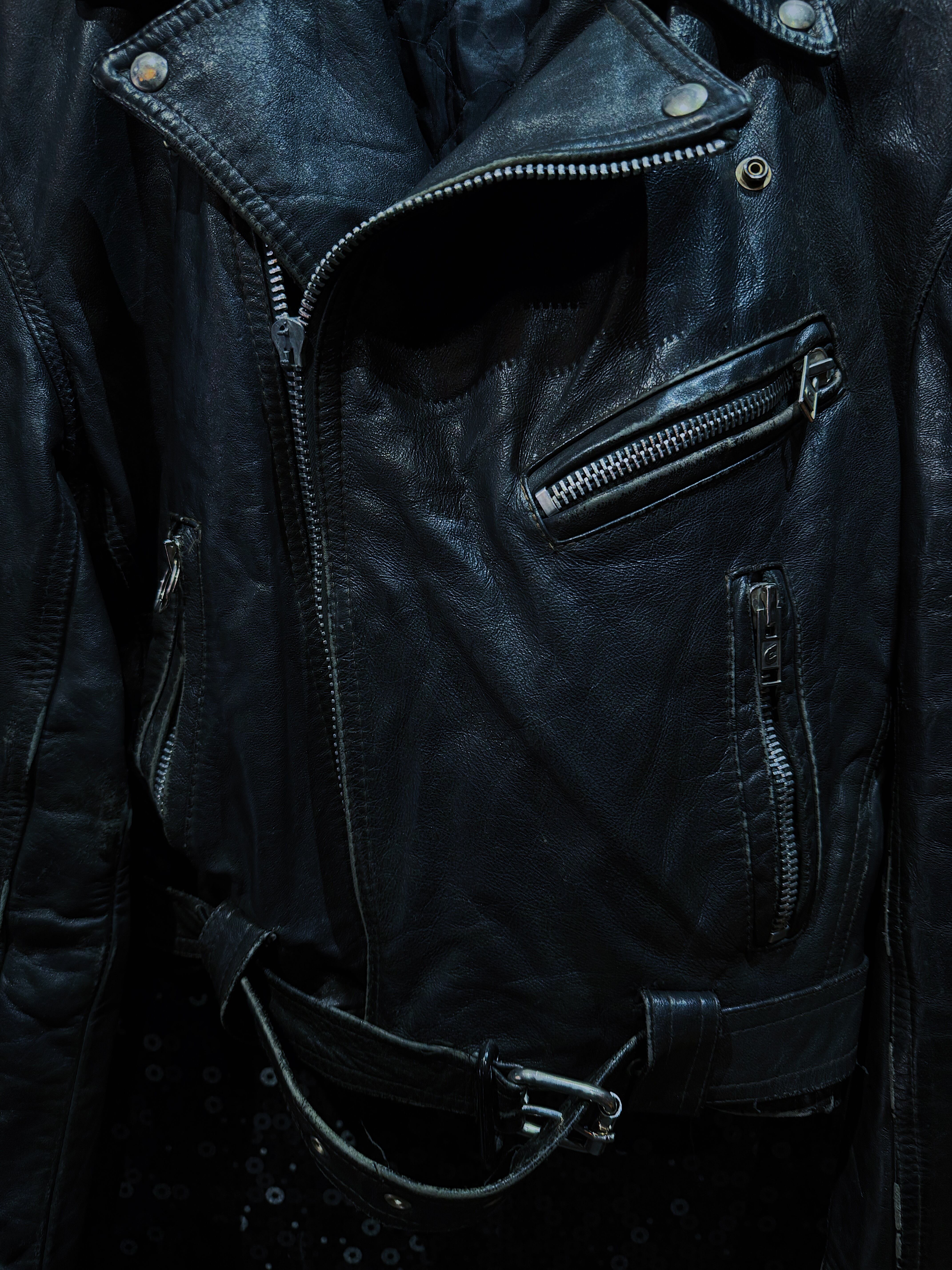 ブラックのレザーが持つ無骨な雰囲気と、クラシックなダブルライダースのシルエットが相まって、ヴィンテージの魅力を存分に感じさせます。