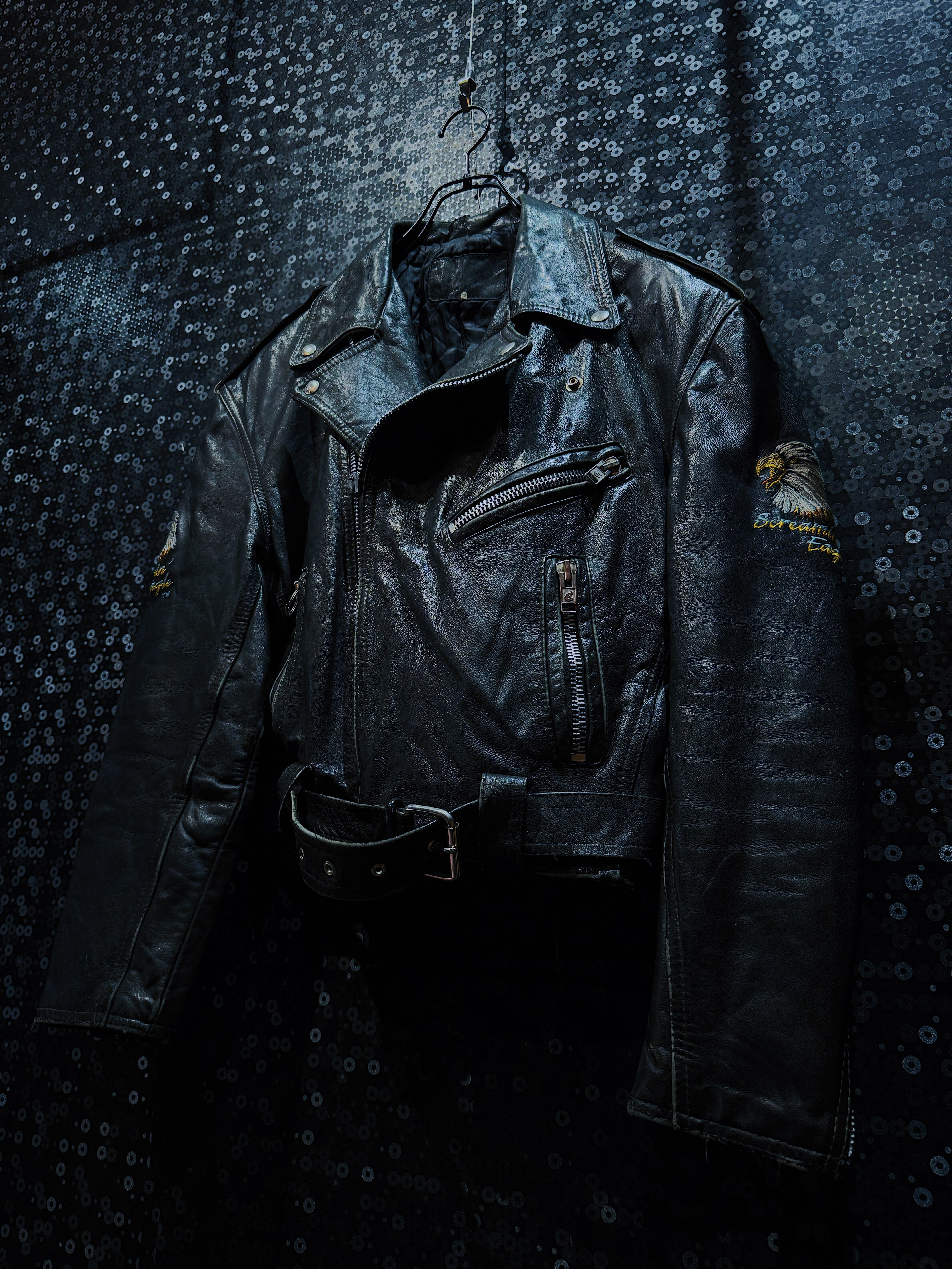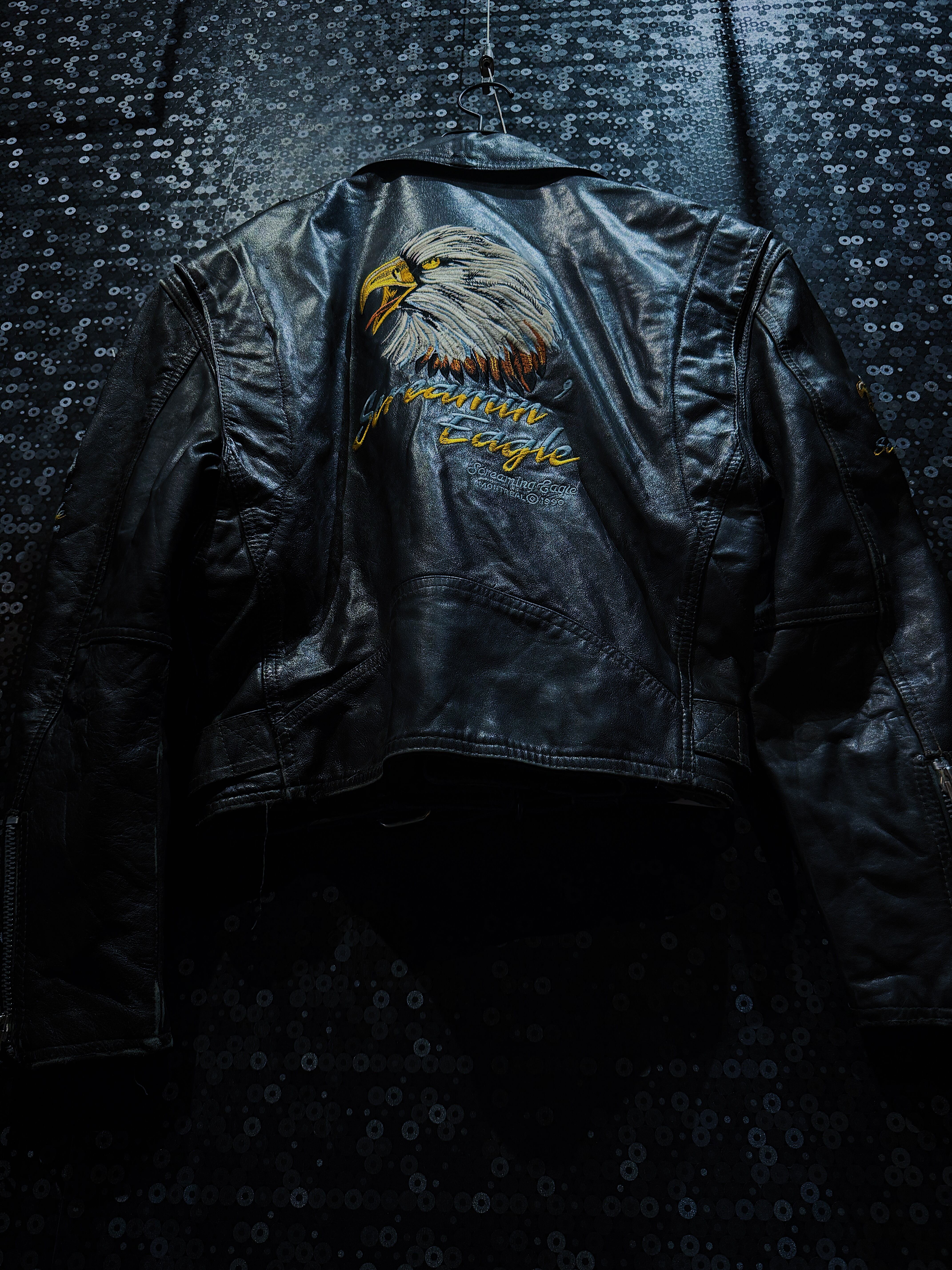 【ÆIEM】"Screamin’ Eagle"vintage eagle embroidery double riders leather jacket