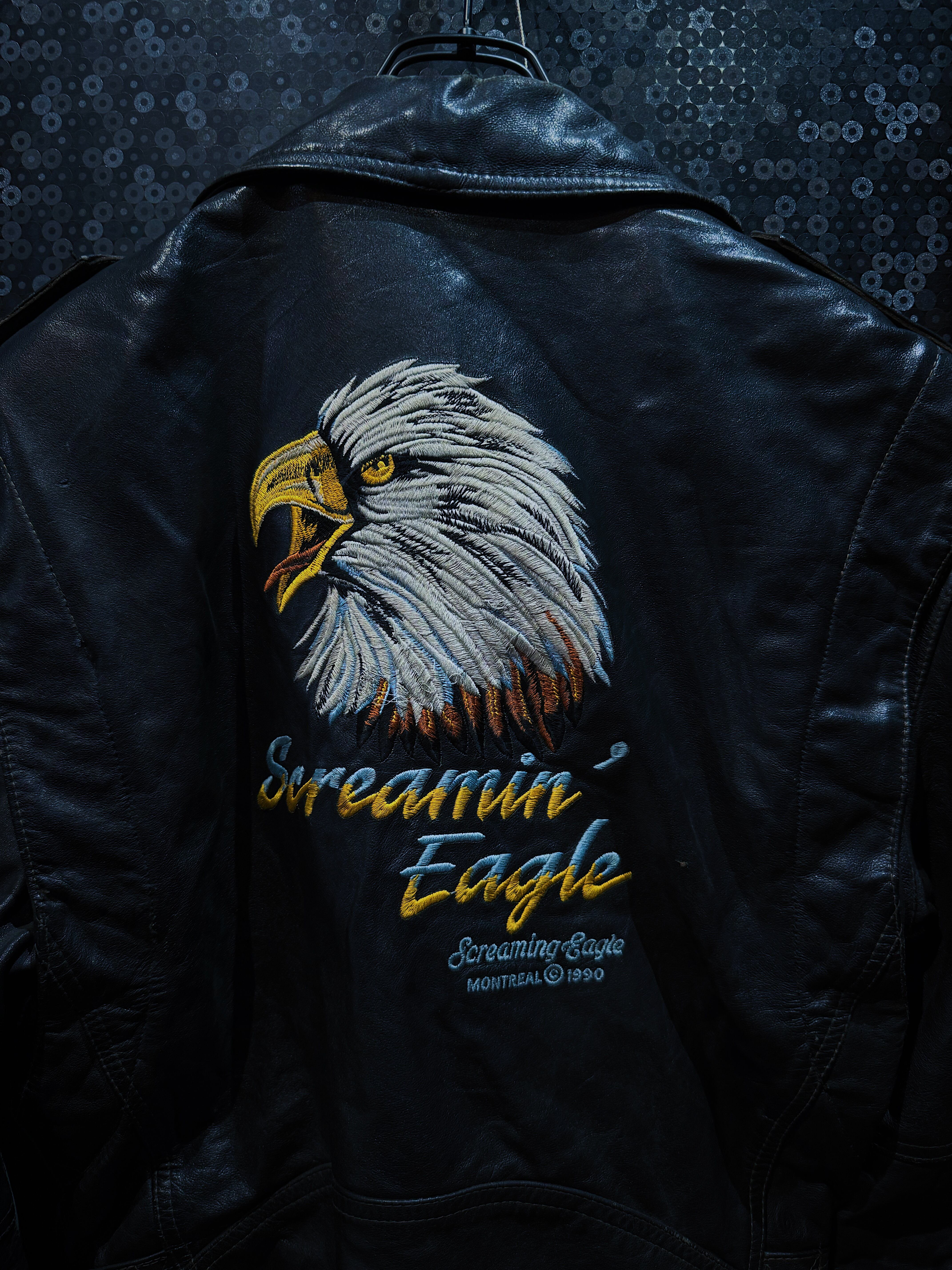 迫力ある「Screamin’ Eagle」の刺繍が施された、存在感抜群の一着です。