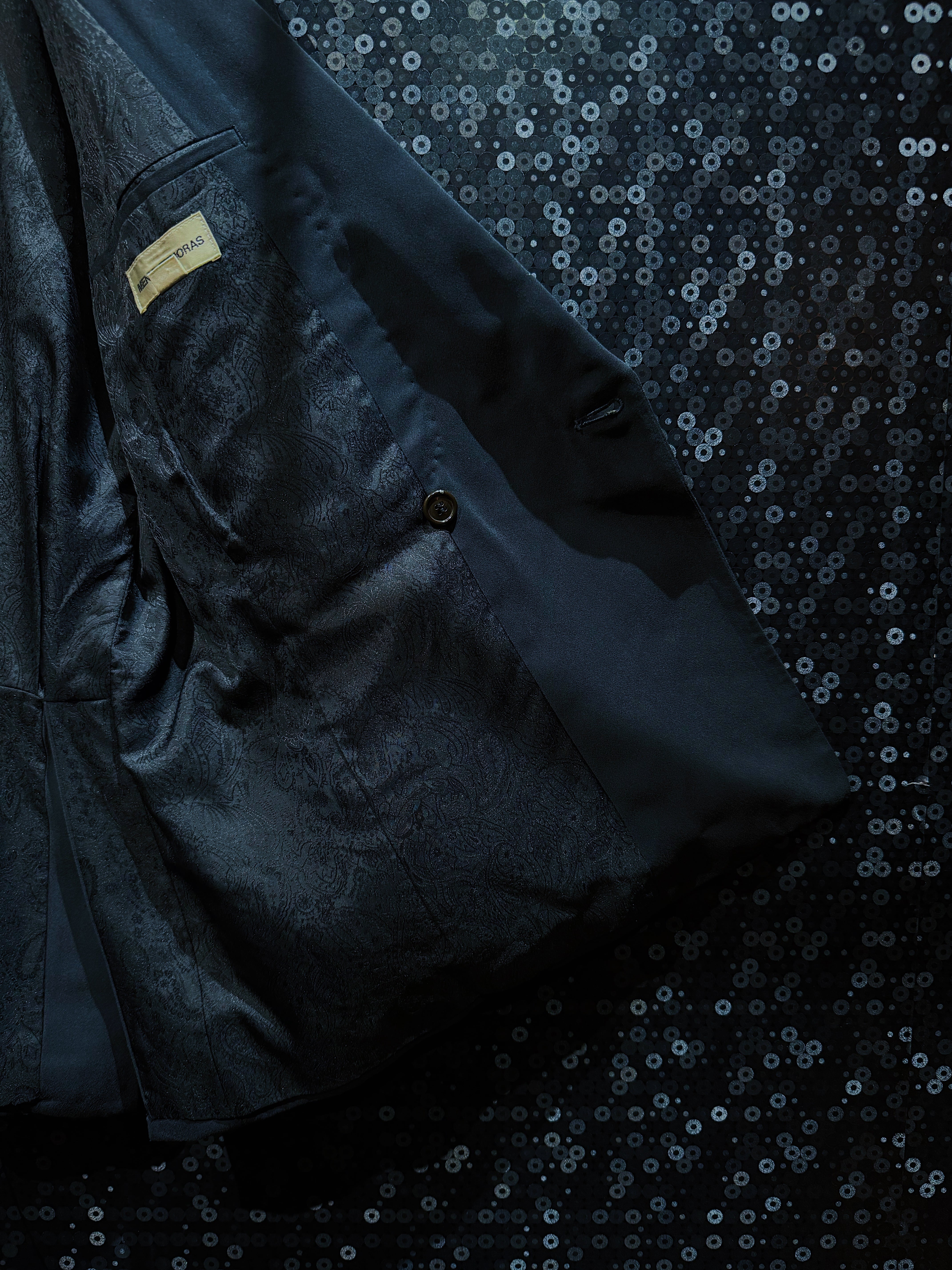 内側にはジャカード織のライニングが施され、細部までこだわったディテールが魅力的。フォーマルな場面はもちろん、ドレスダウンしてもスタイリッシュに決まるアイテムです。