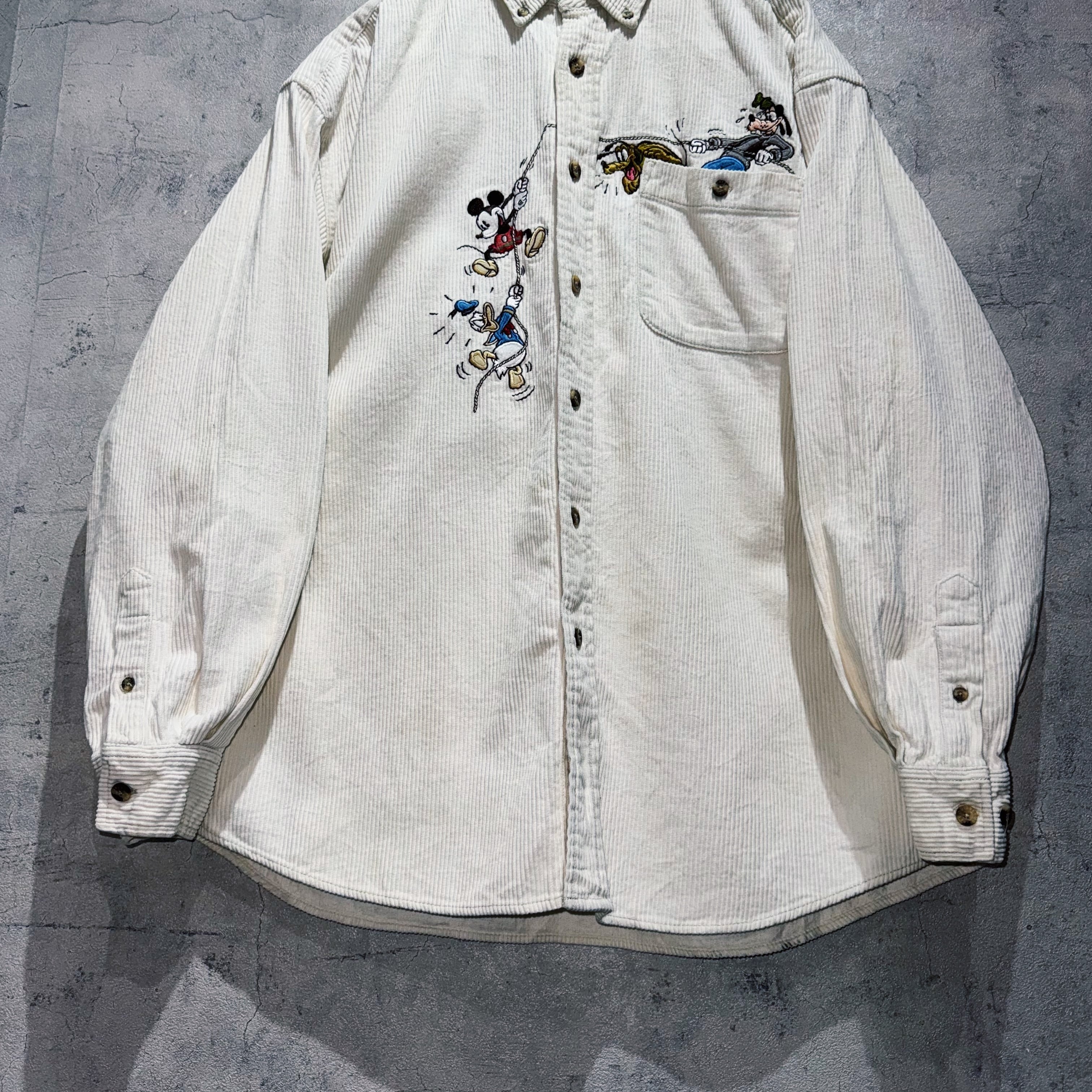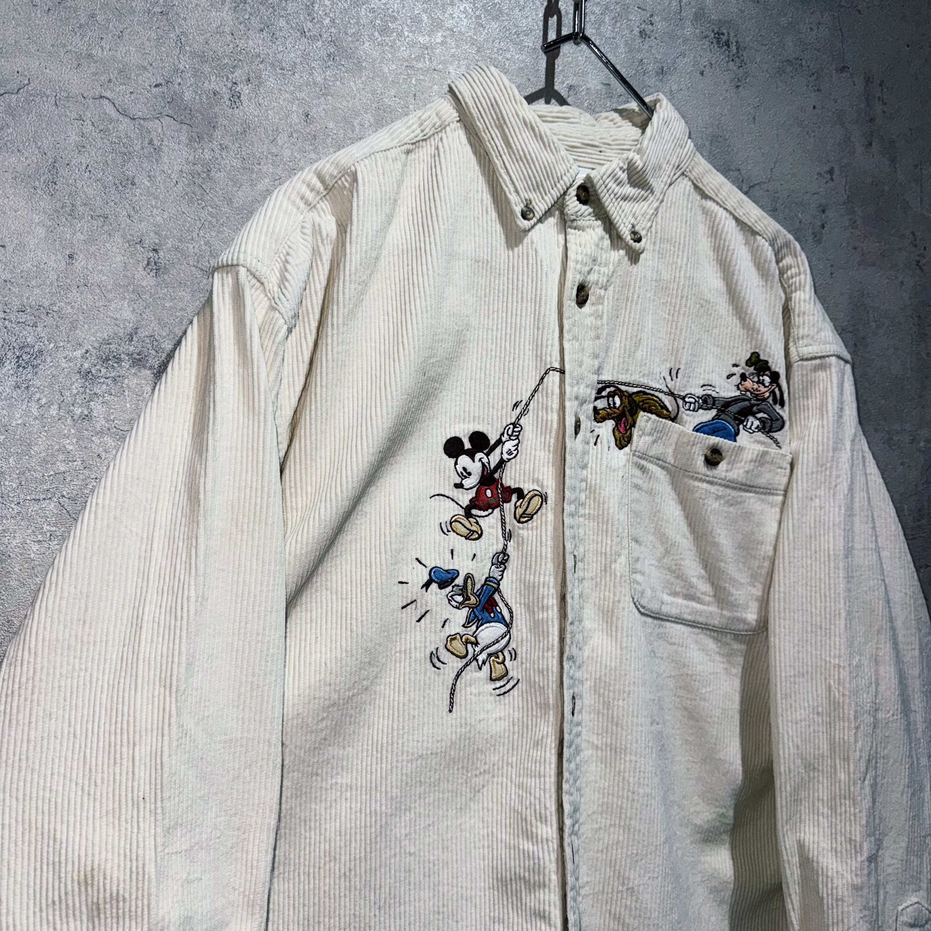 "ディズニー"ミッキーアンドフレンズエンブロイダリーデザインコーデュロイシャツ