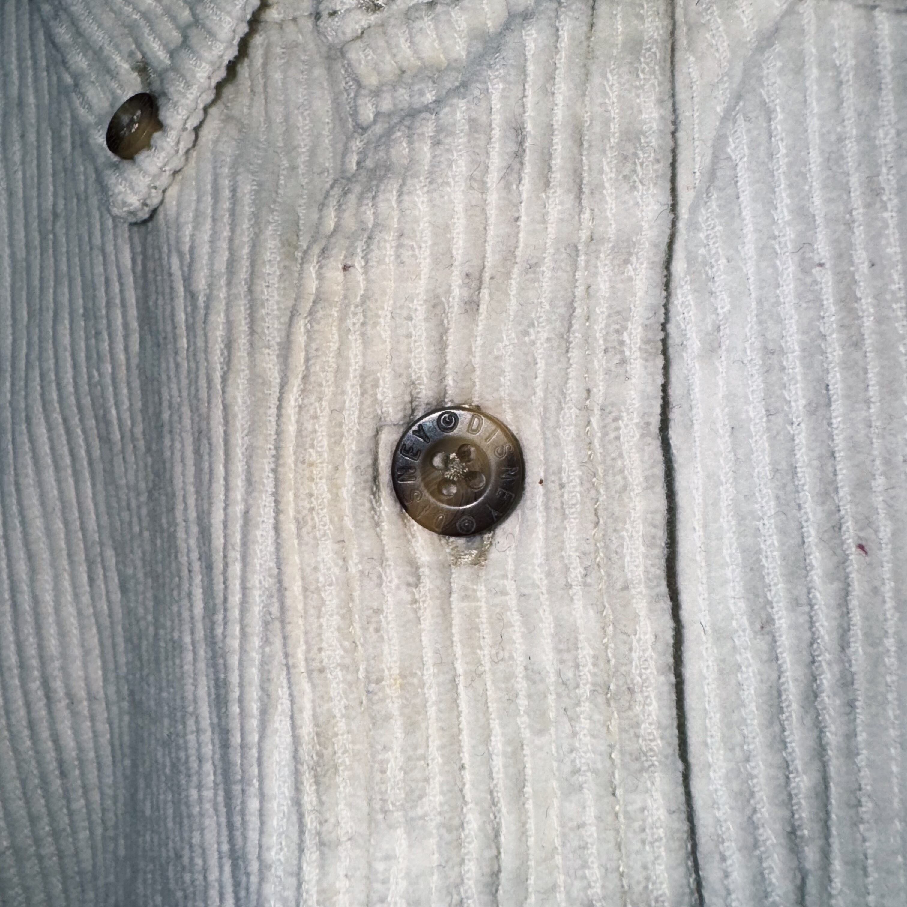 今回はストアから販売されていたコーデュロイシャツ。ミッキー、ドナルド、グーフィー、プルートのミキフレが刺繍されたデザインです。