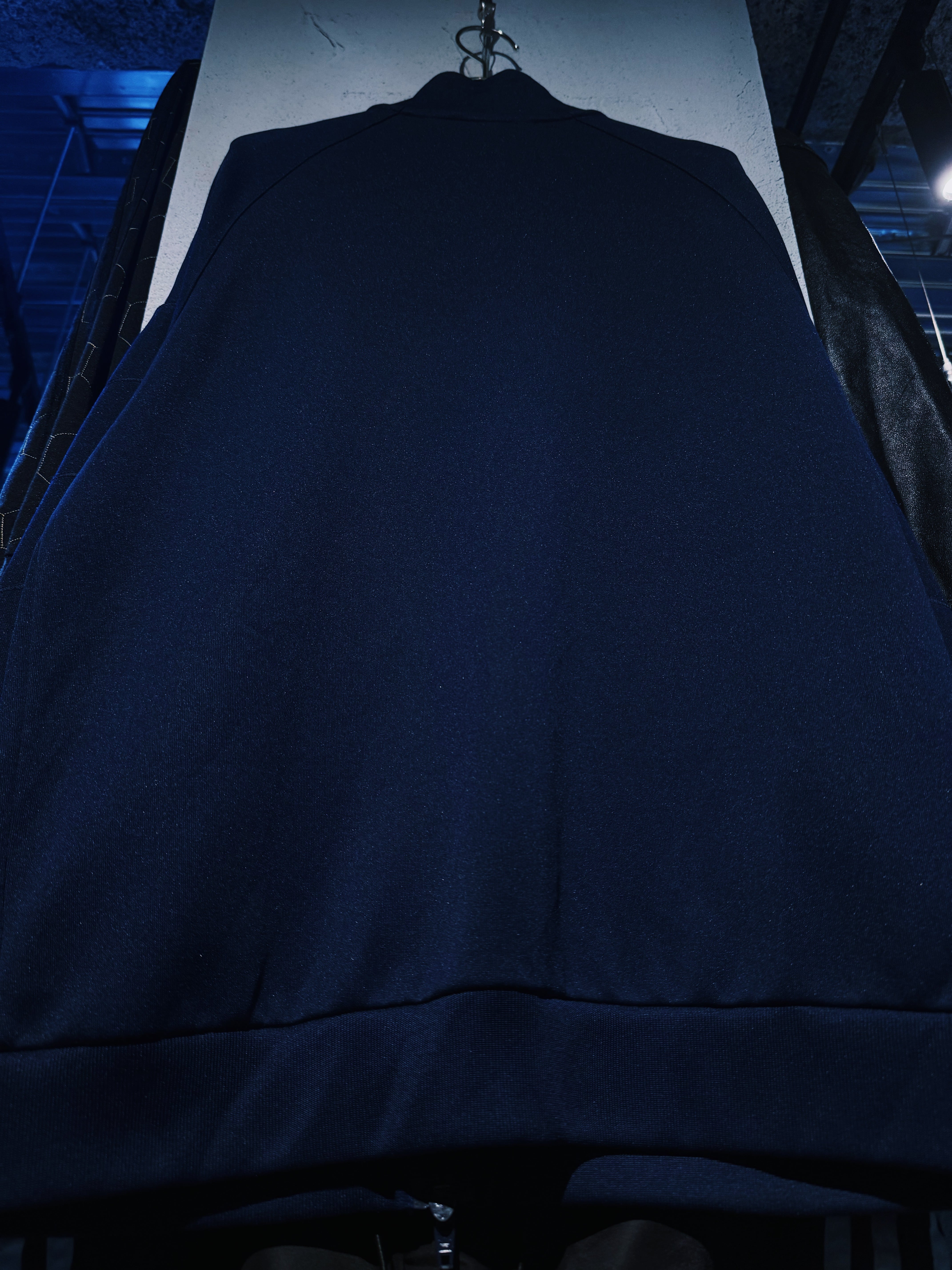 落ち着いた品のあるネイビーカラーに身に纏ったグッドレギュラーのトラックジャケット。襟が高めのスタンドネックとダブルジップでコーデの幅が広がるいうのも魅力的ですね。