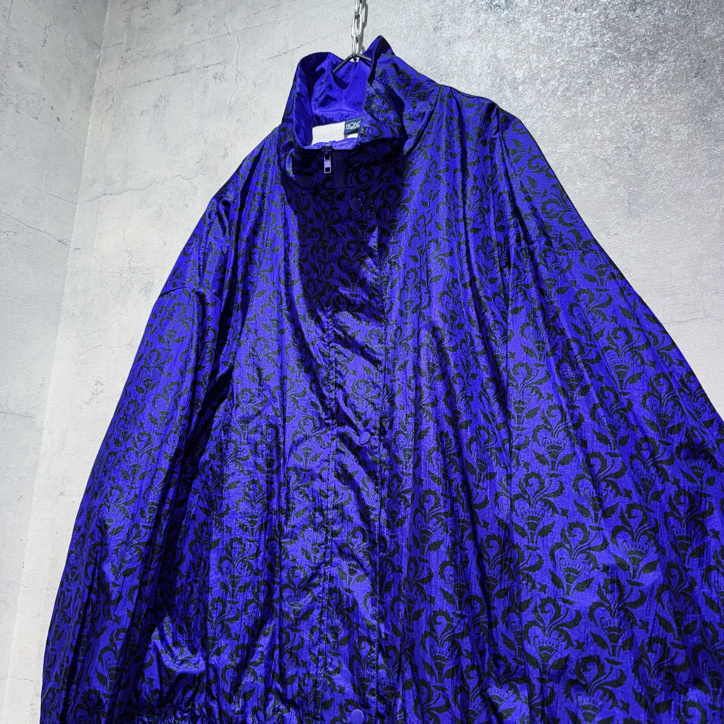 ヴィンテージオーナメントパターンロイヤルパープルナイロンジャケット