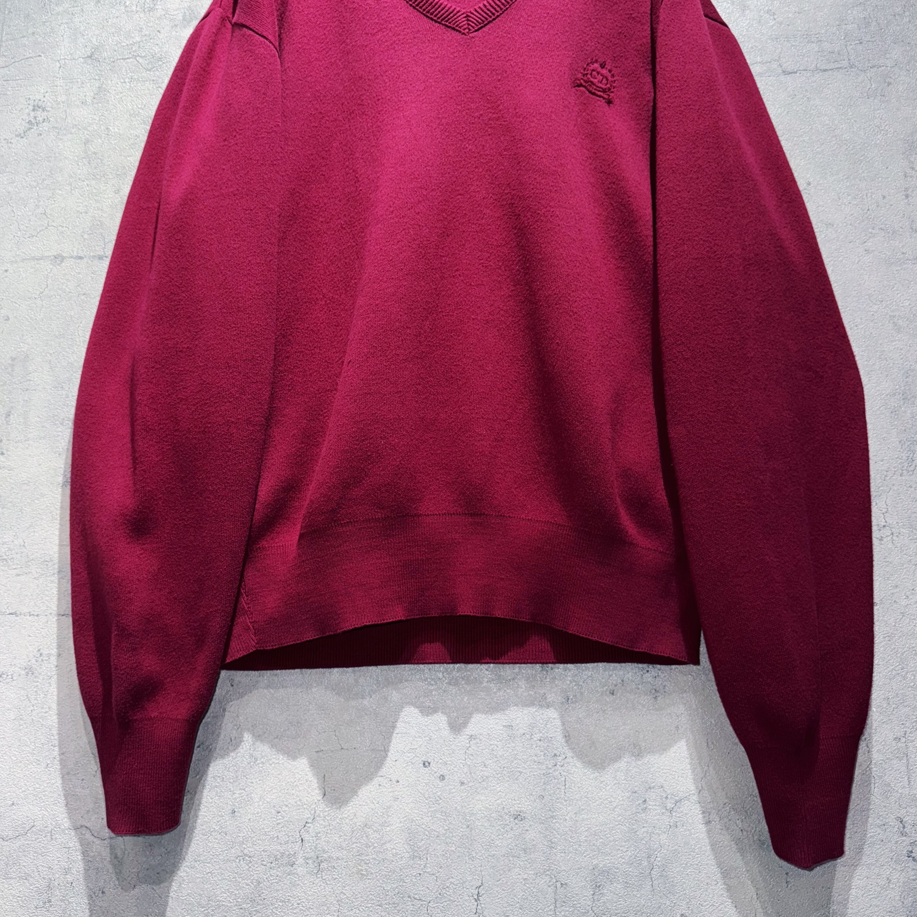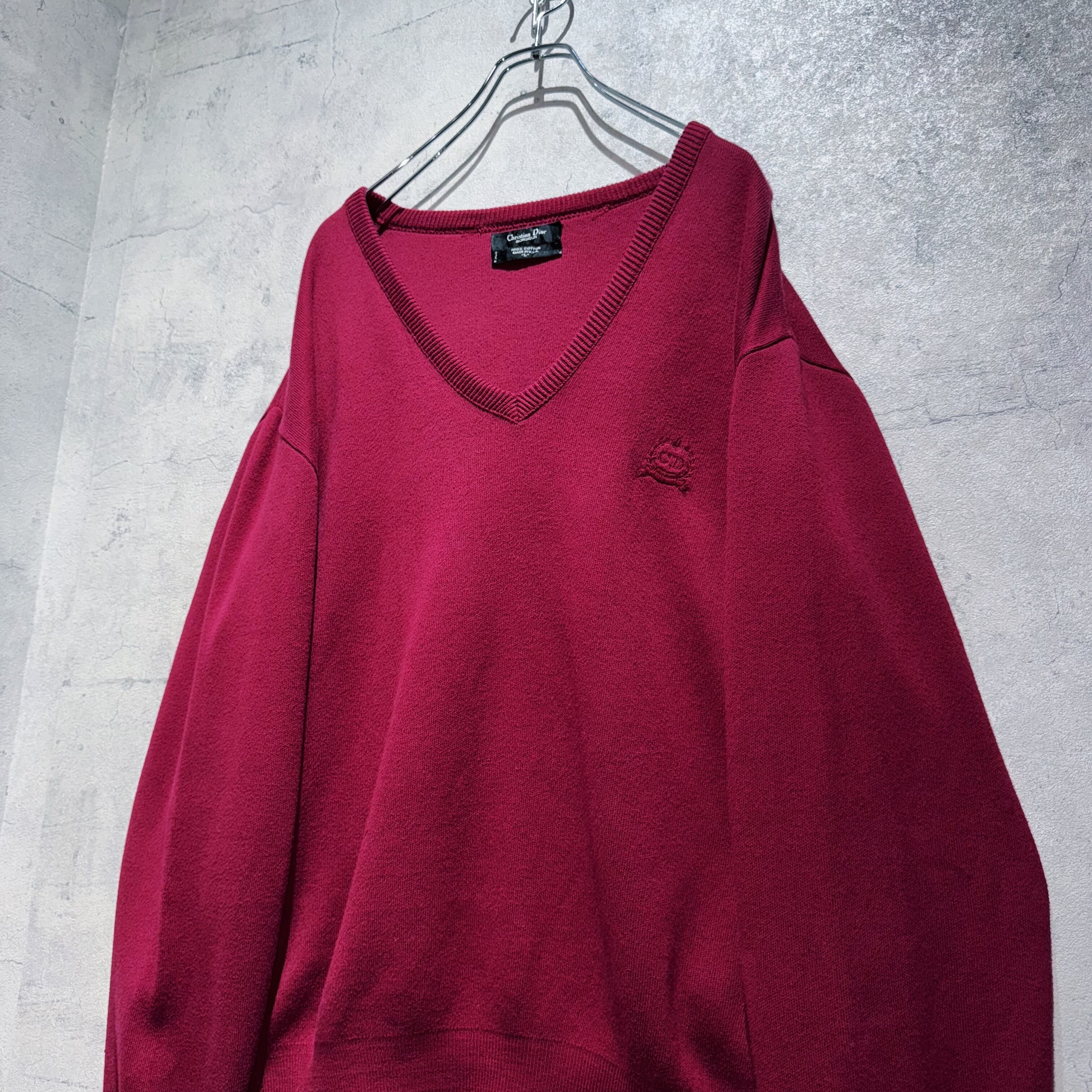 "クリスチャンディオール"ワインレッドカラーVネックセーター